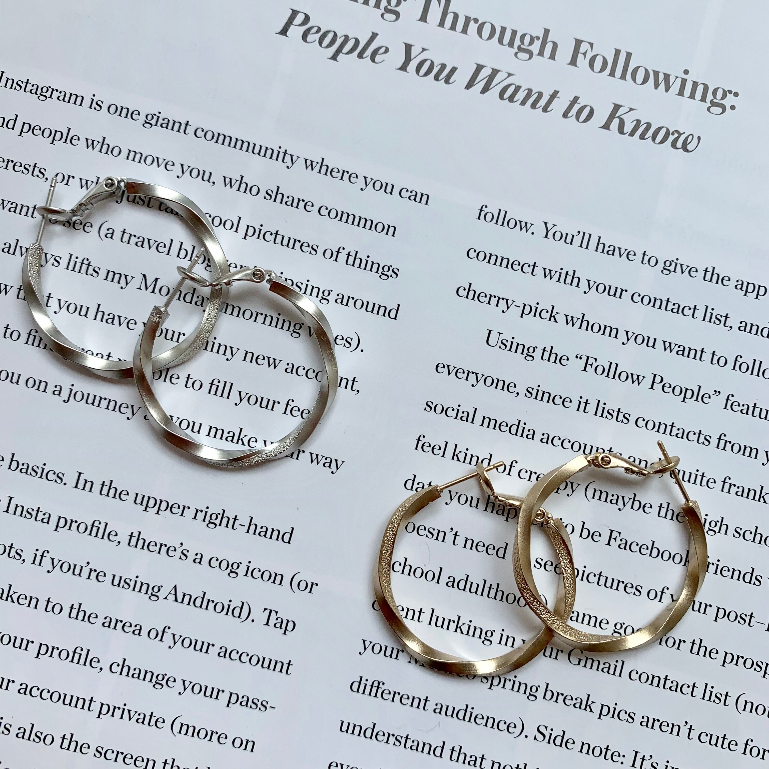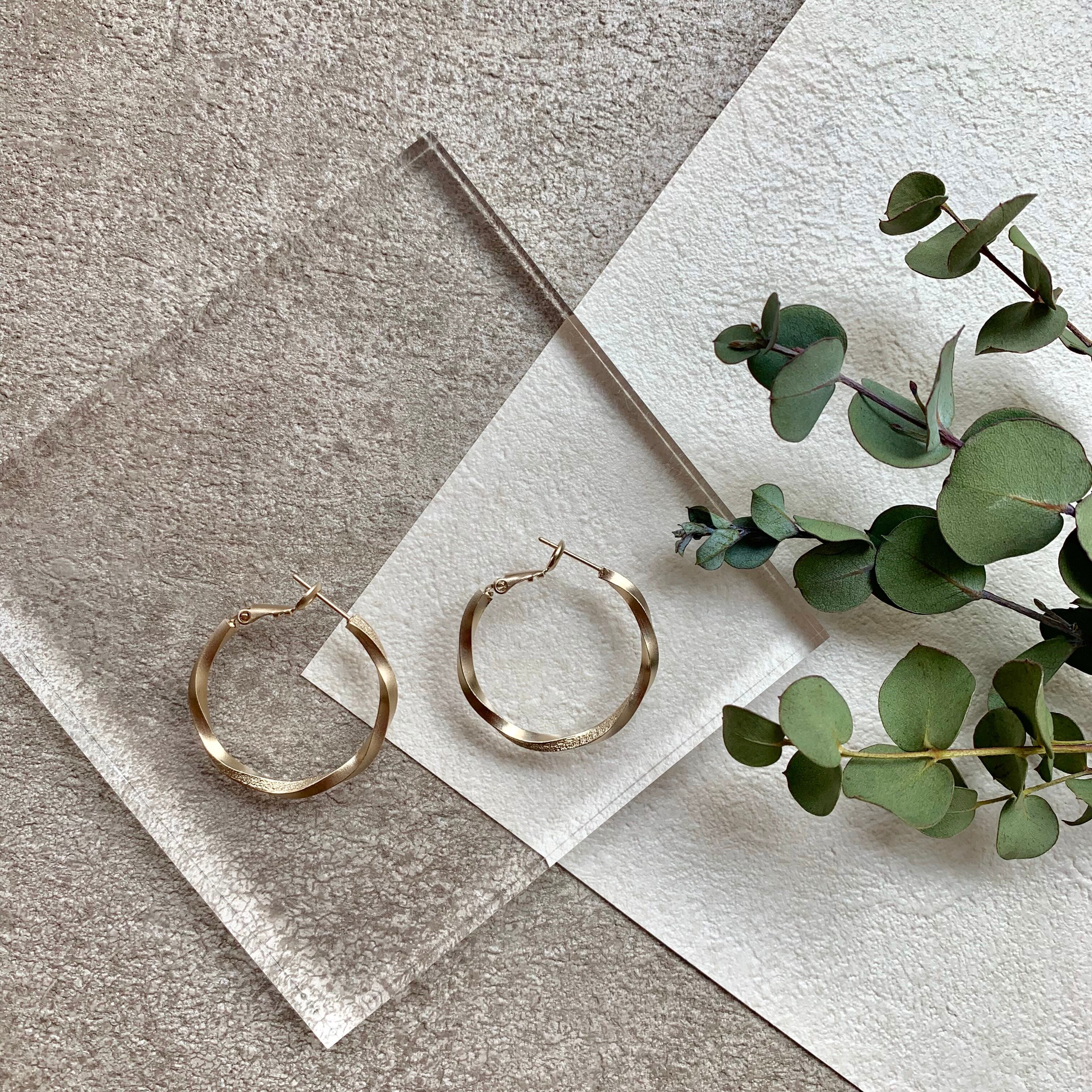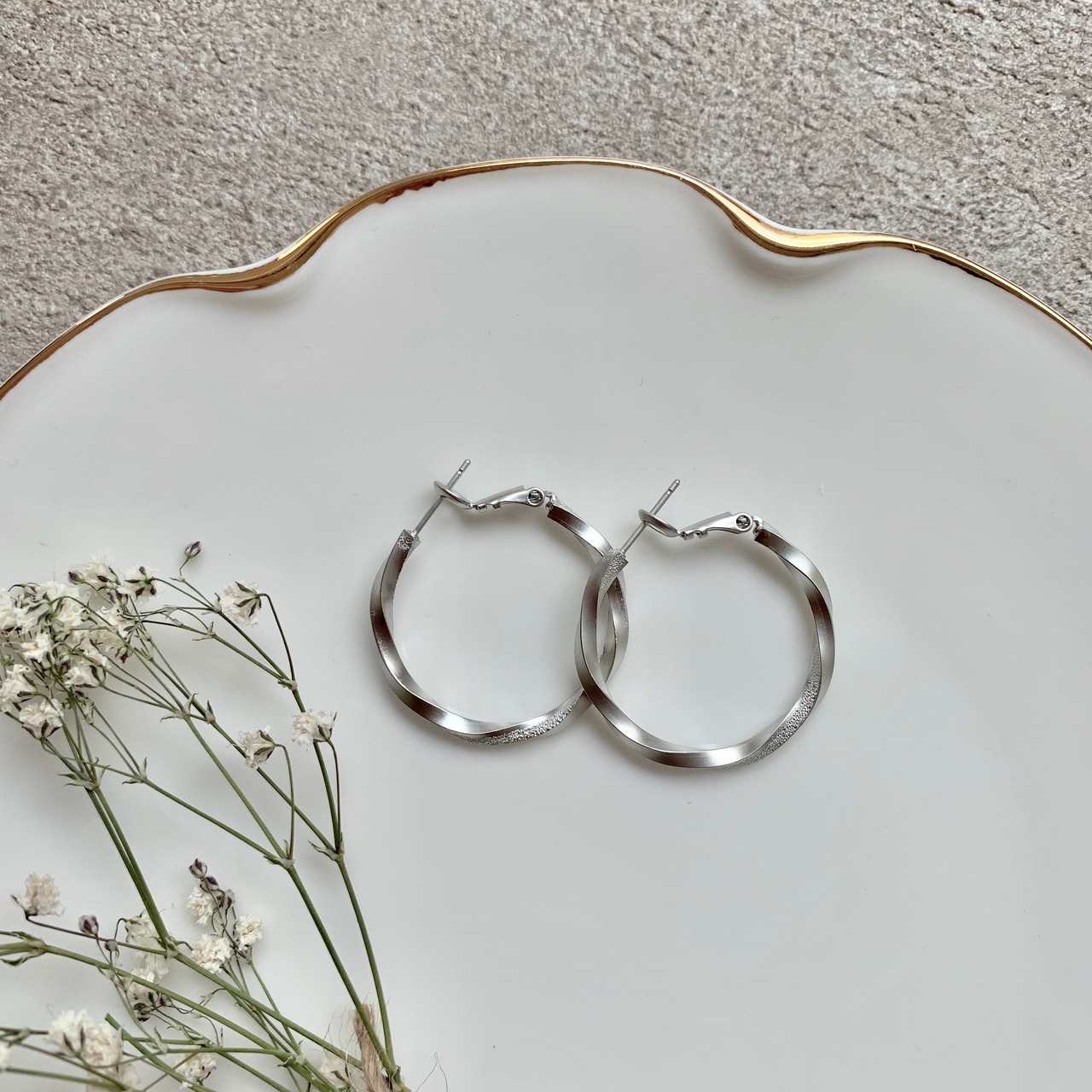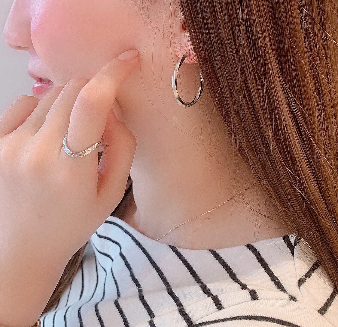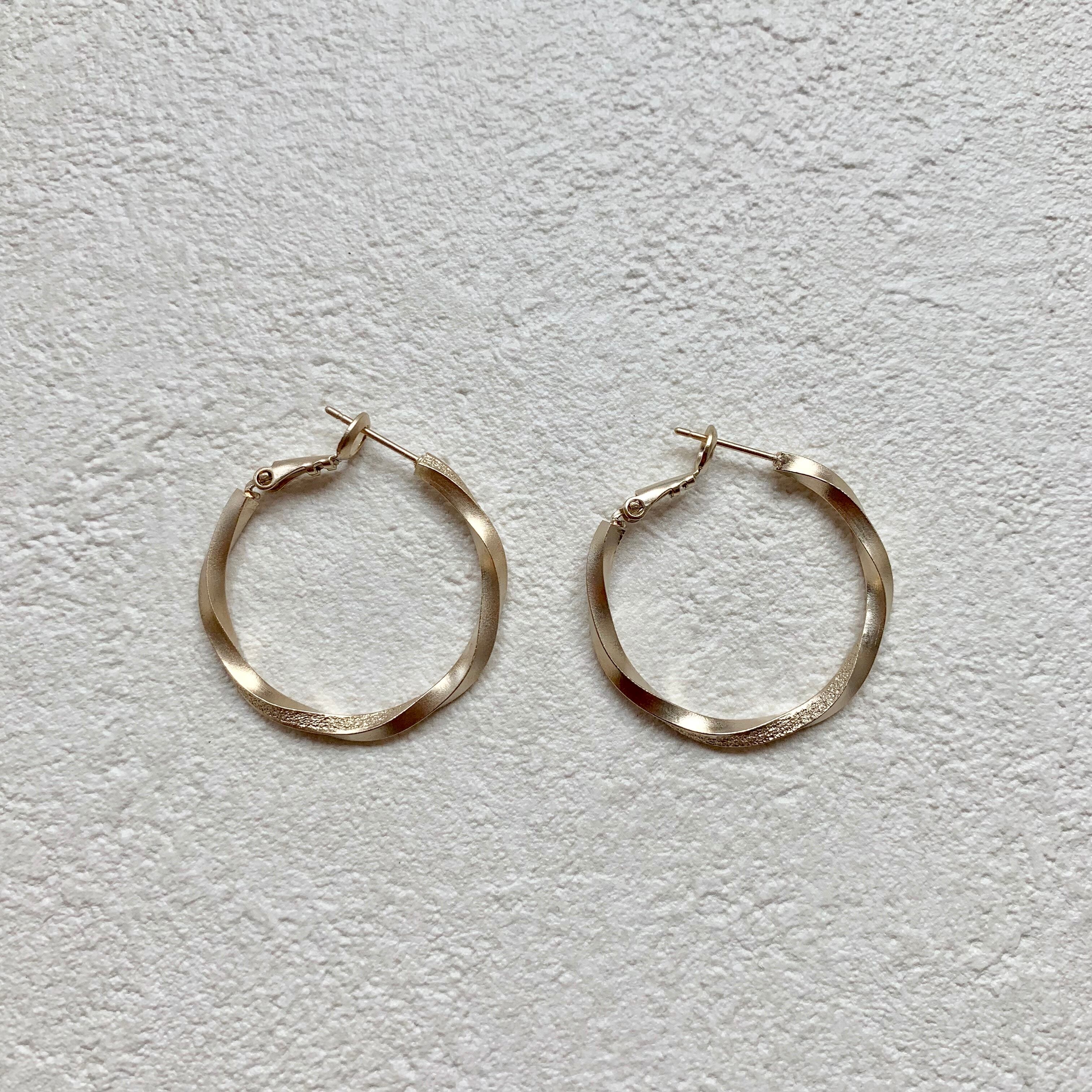 大ぶりすぎないフープピアスは、緩やかなひねりが施されておりシンプルながら個性のあるデザイン。