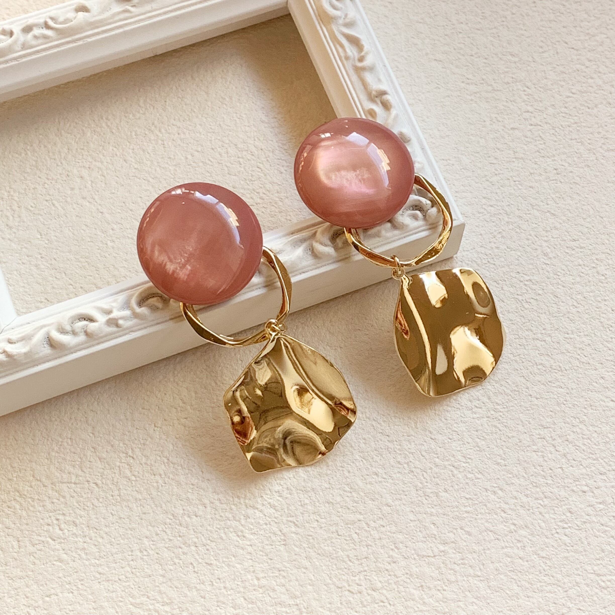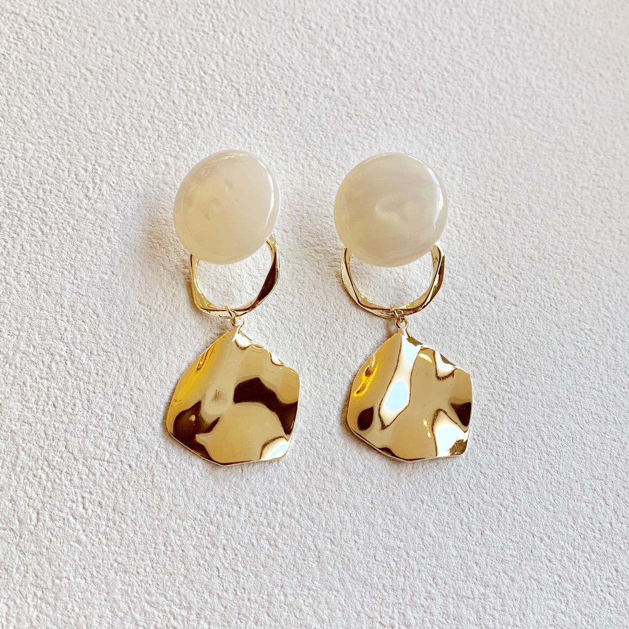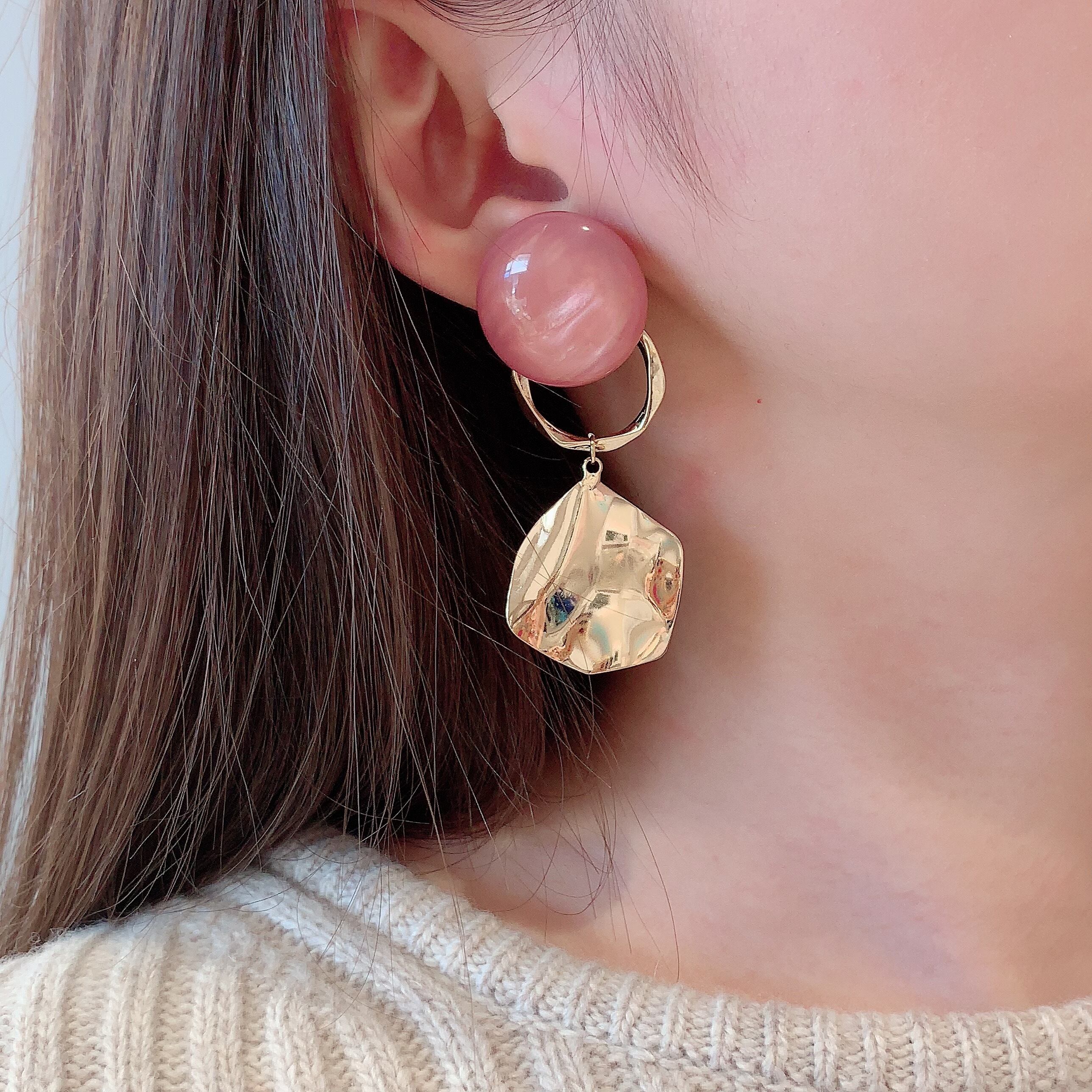 淡くオーロラのように煌めく大ぶり揺れピアス。