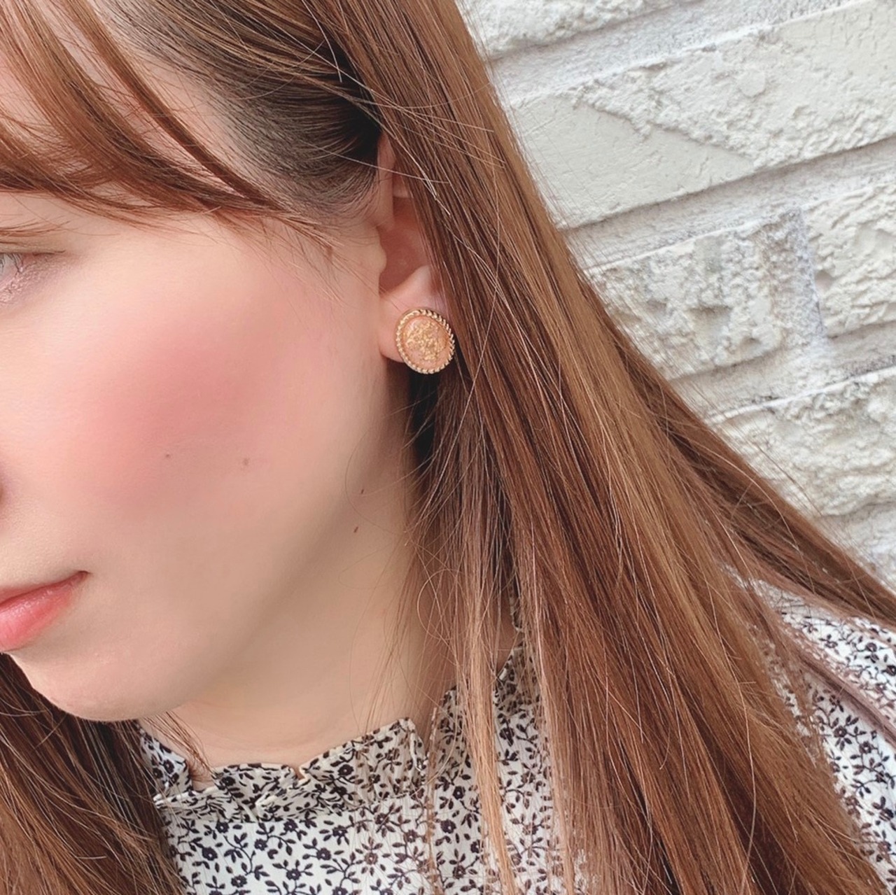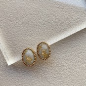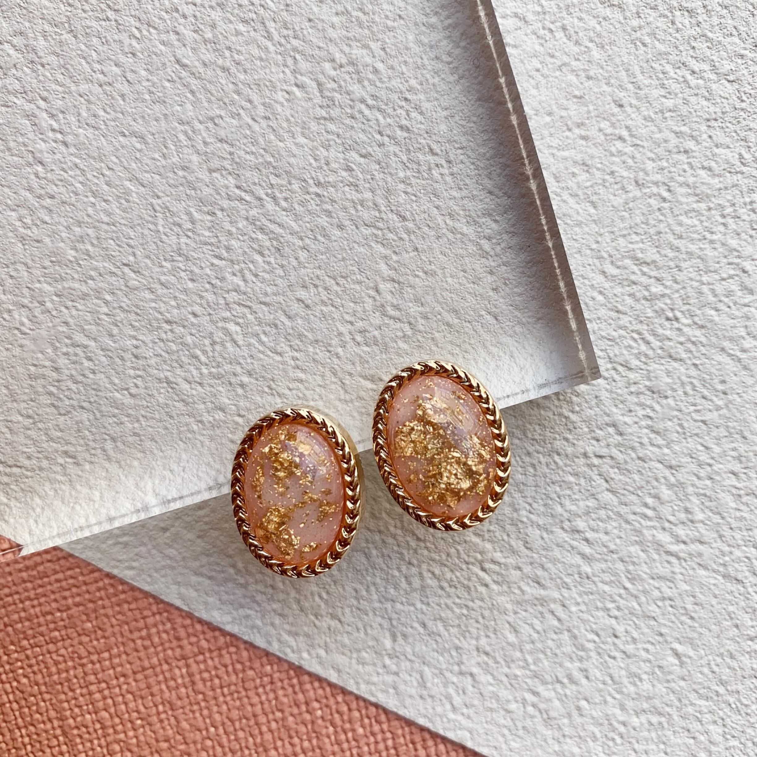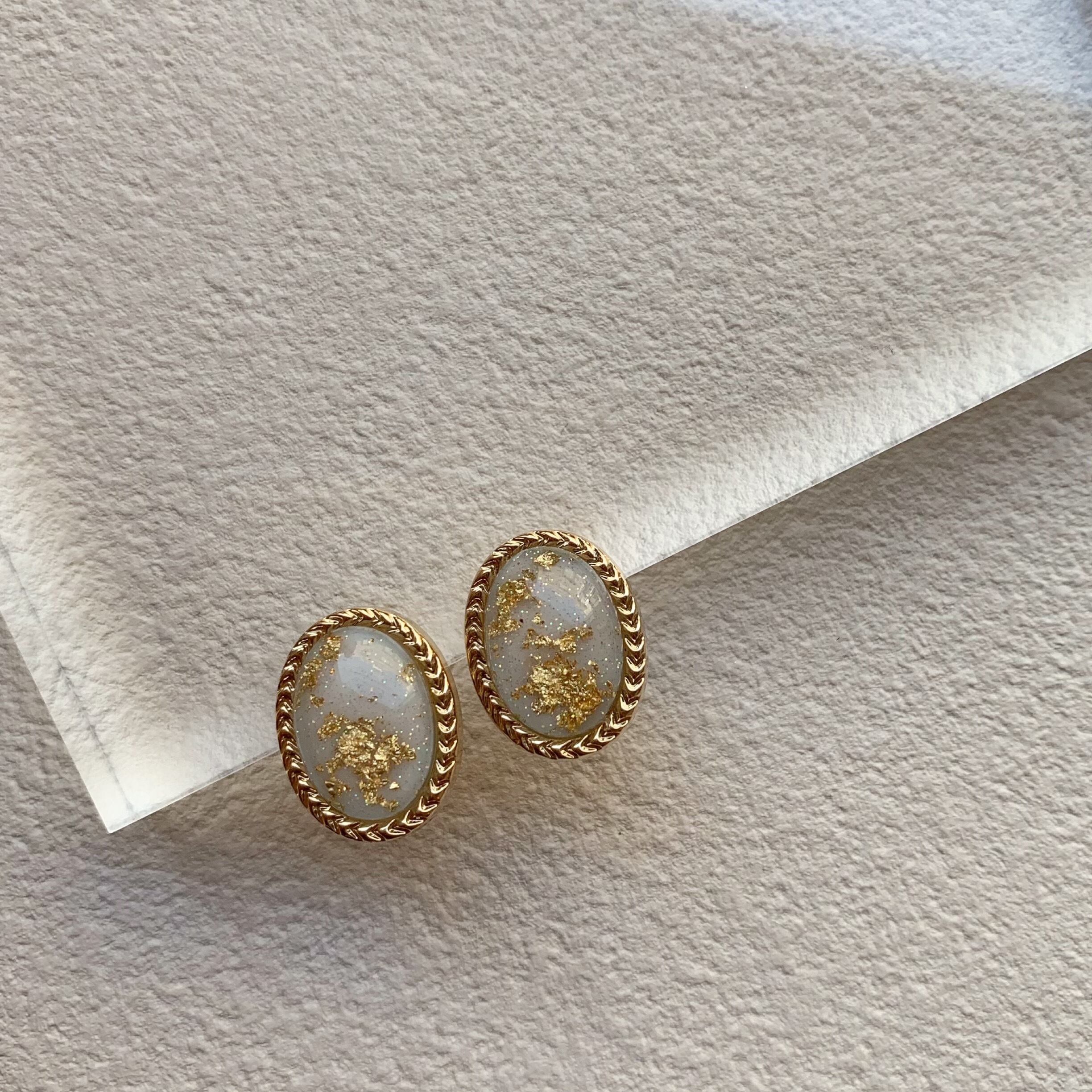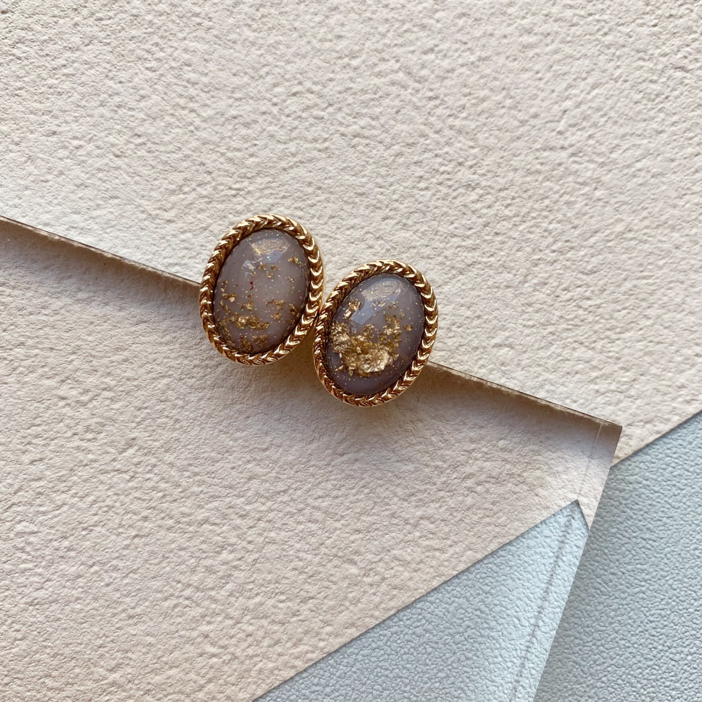 透明感ある丸みなフォルムに、金箔を散りばめたアンティーク調な表情が魅力的なピアス。