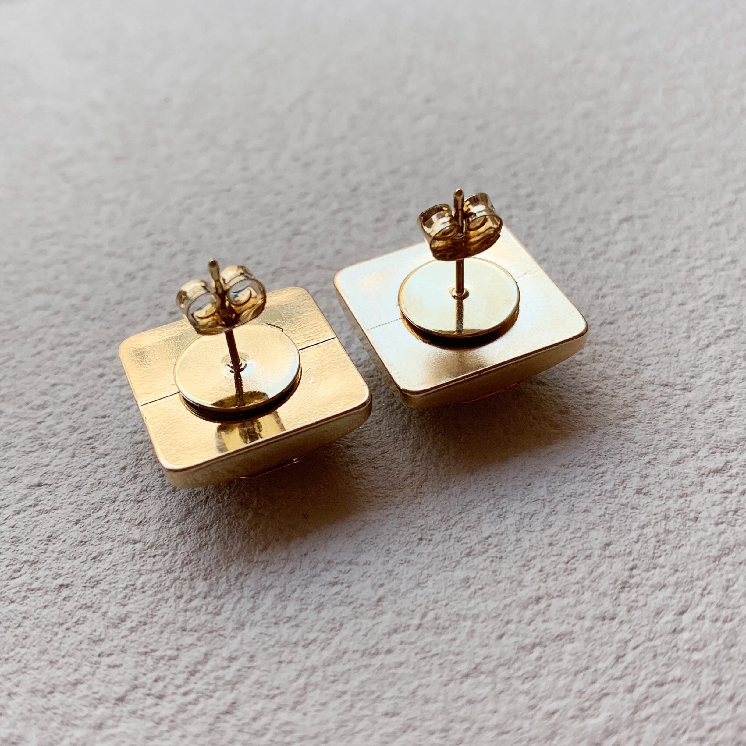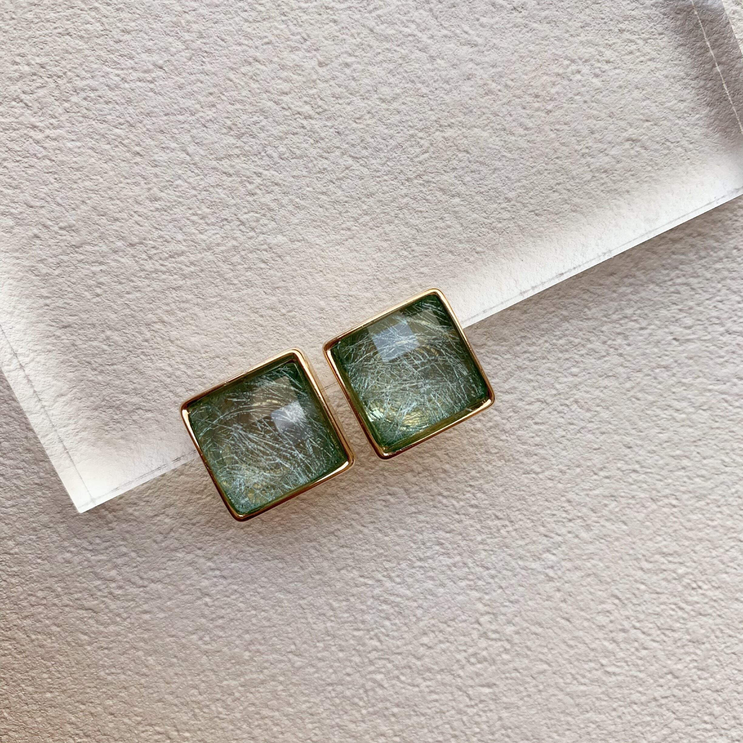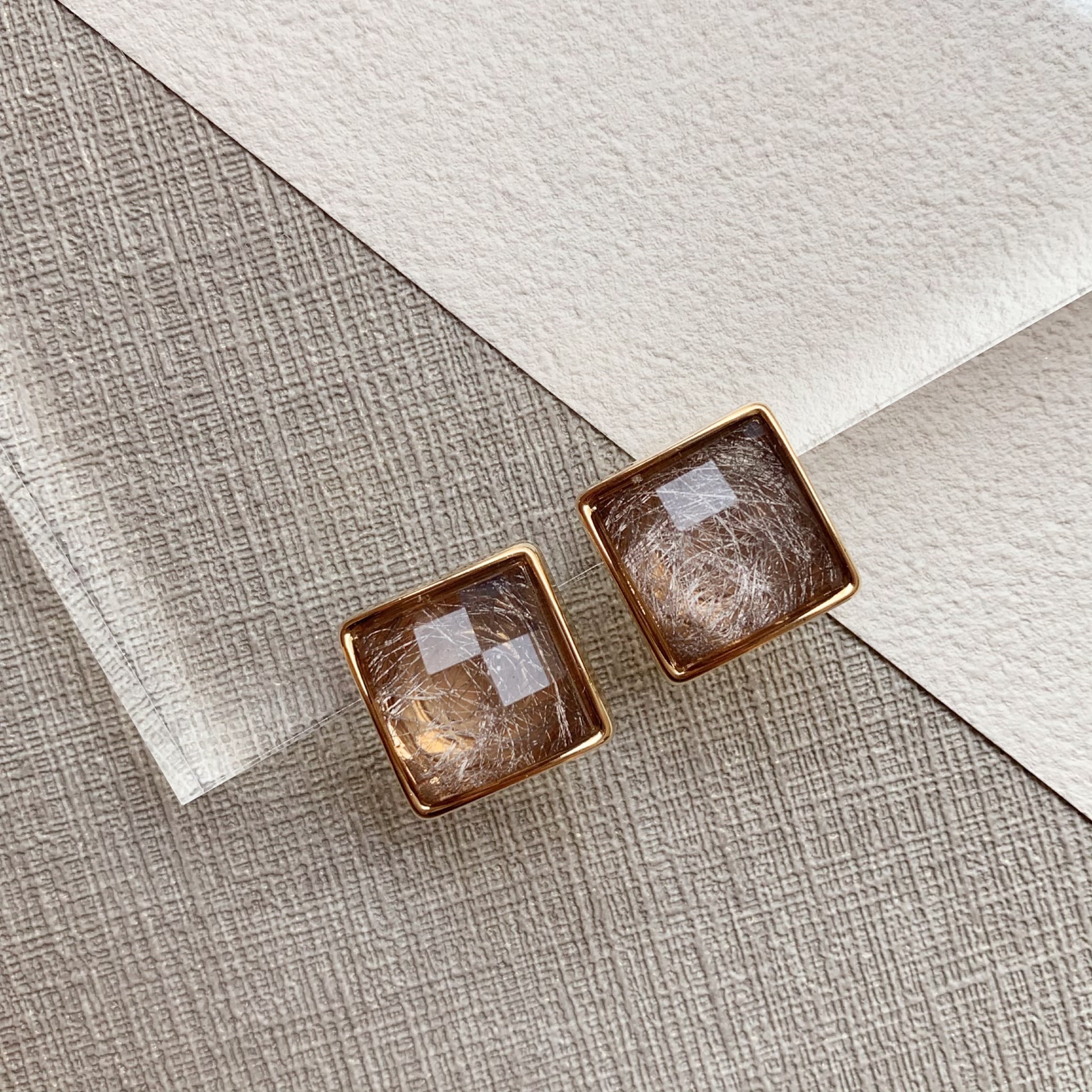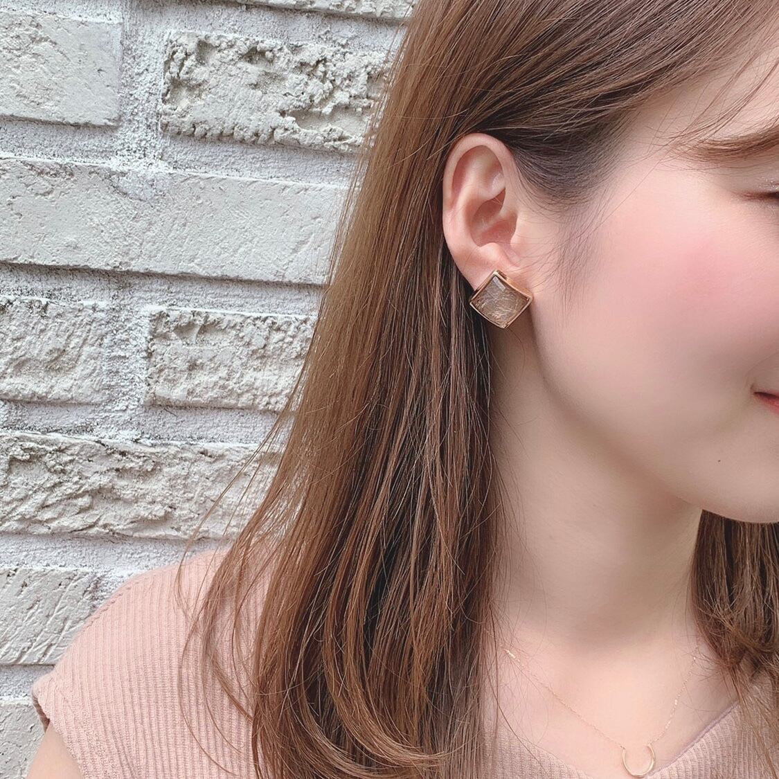 透明感あるスクエア型のシルエットに、奥行きのある繊細なデザインを施したピアス。