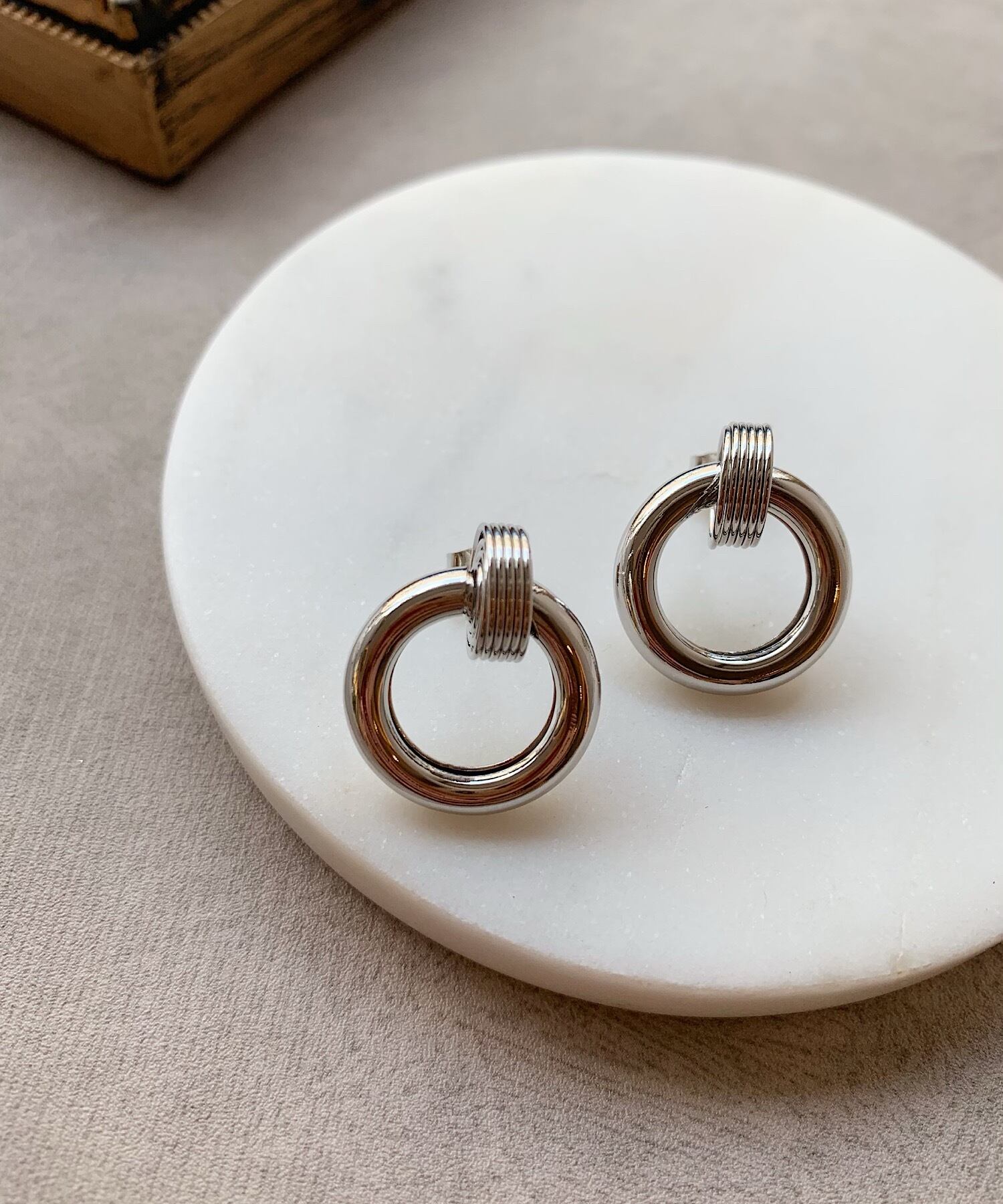 メタルに厚みを持たせたフープピアス。