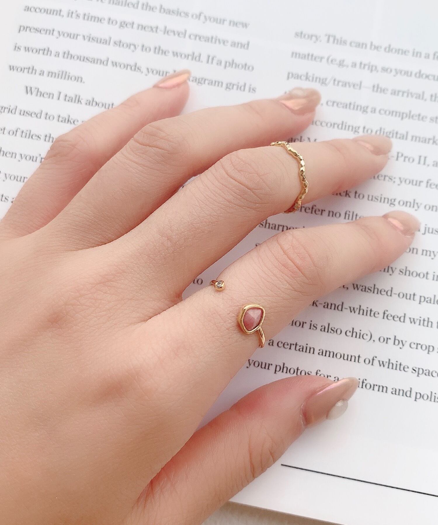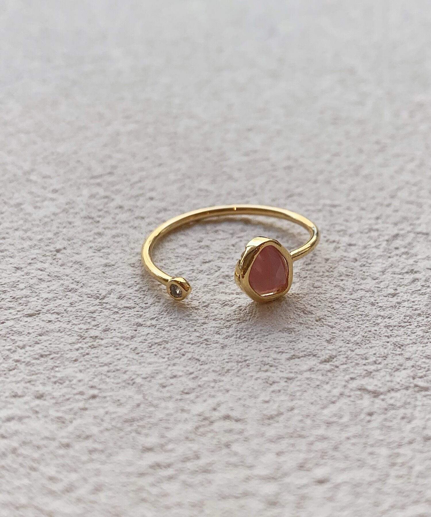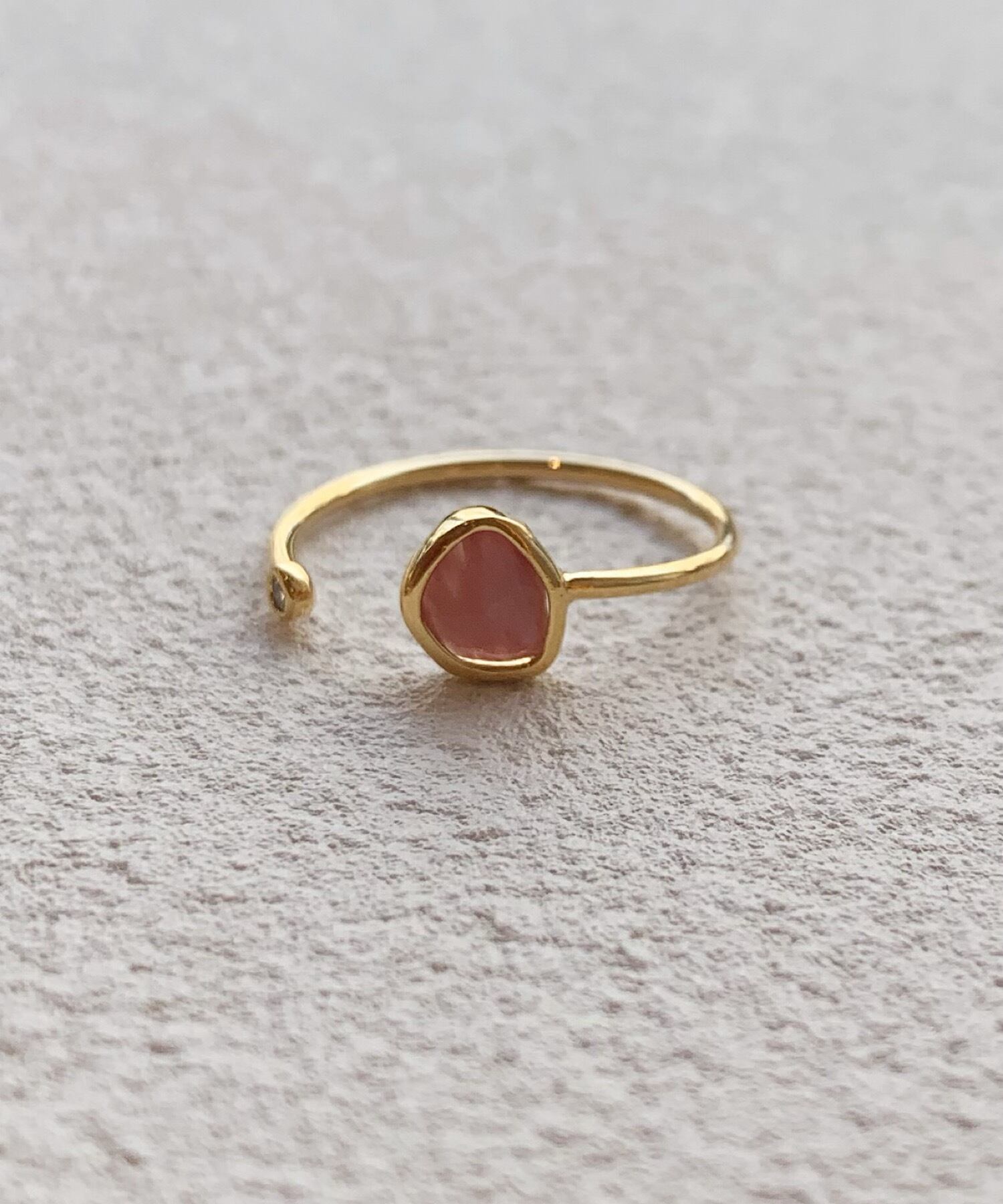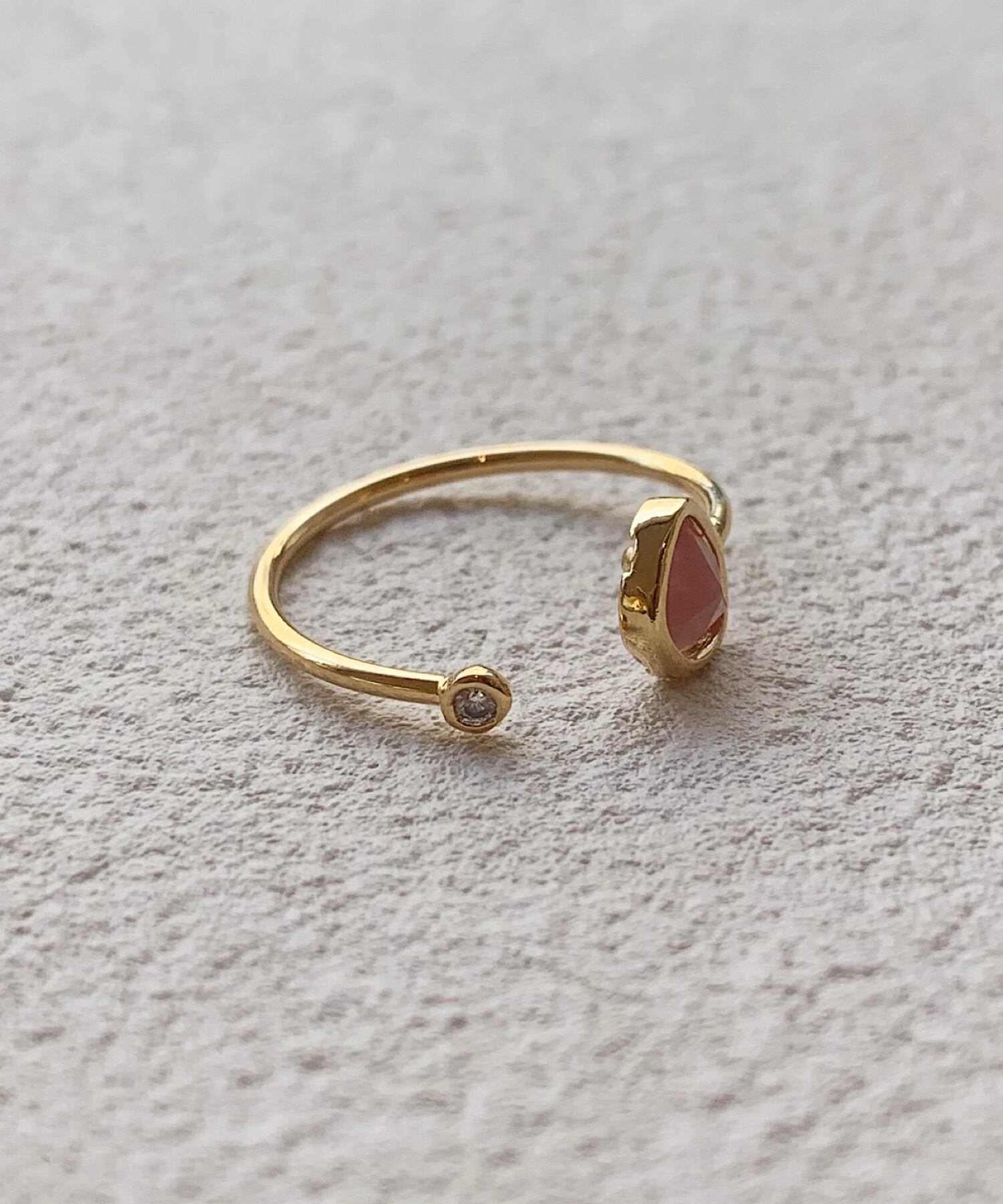 程よいぬけ感を演出できるフォークリングに優しい色味のカラーストーンがマッチした
