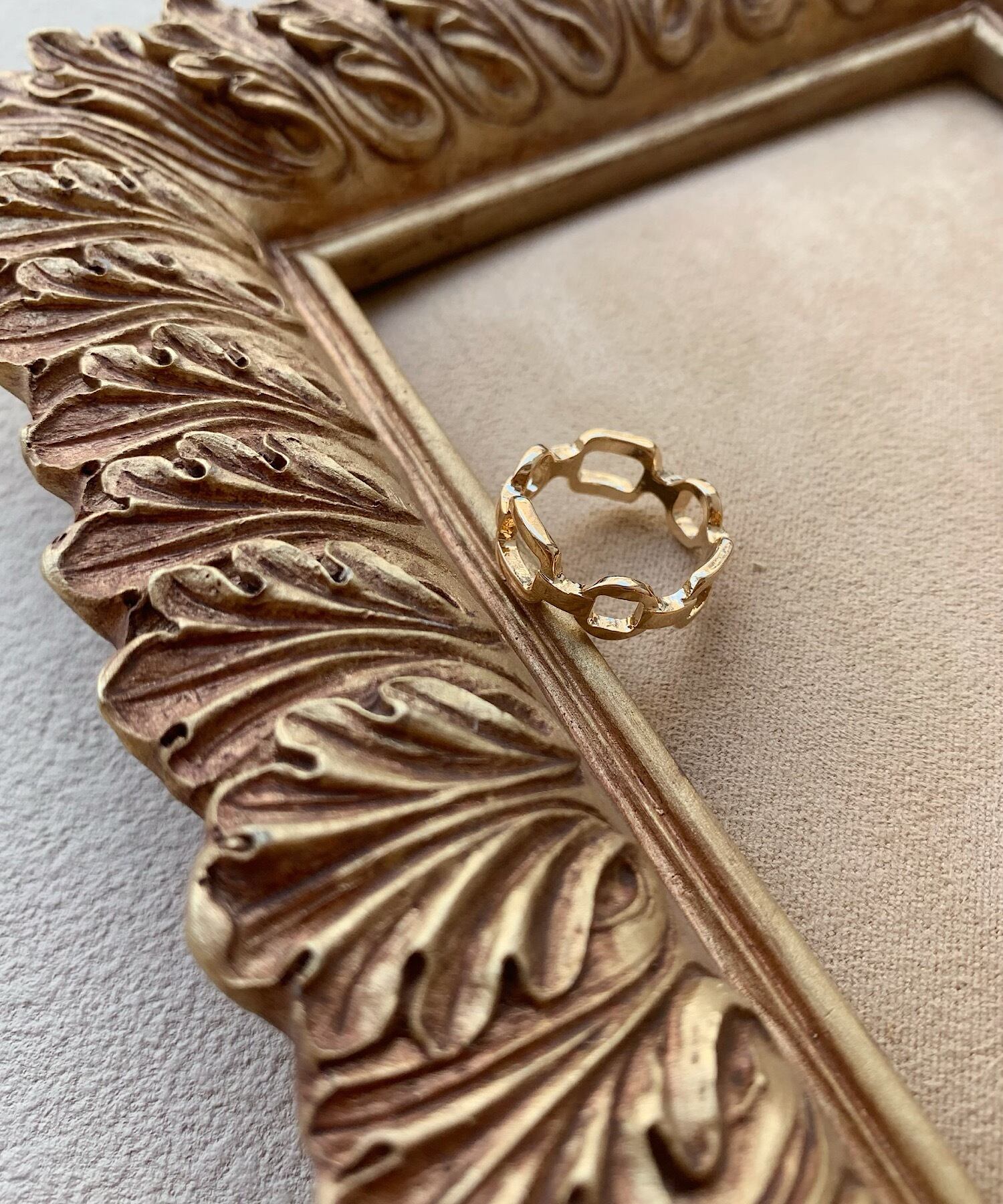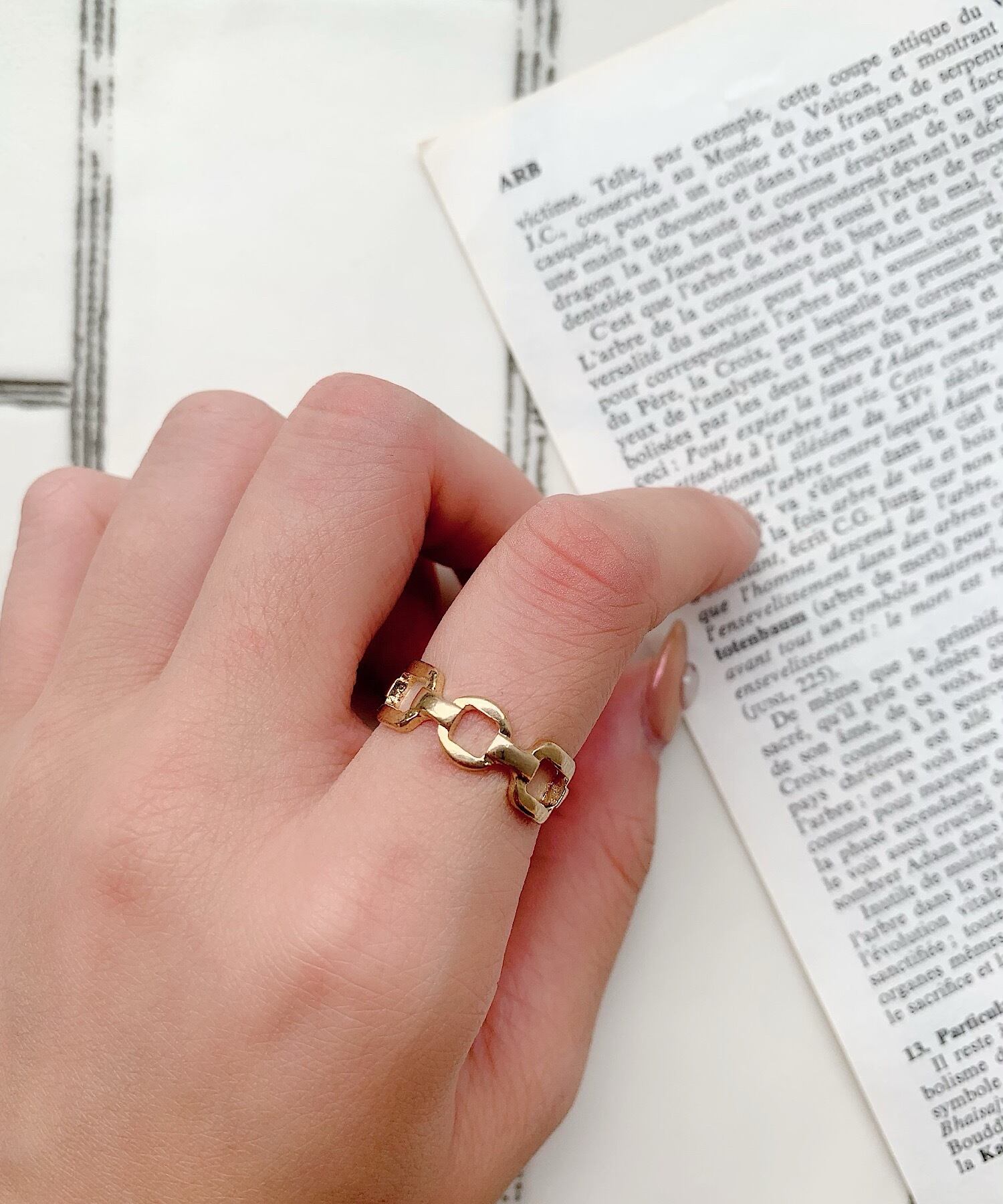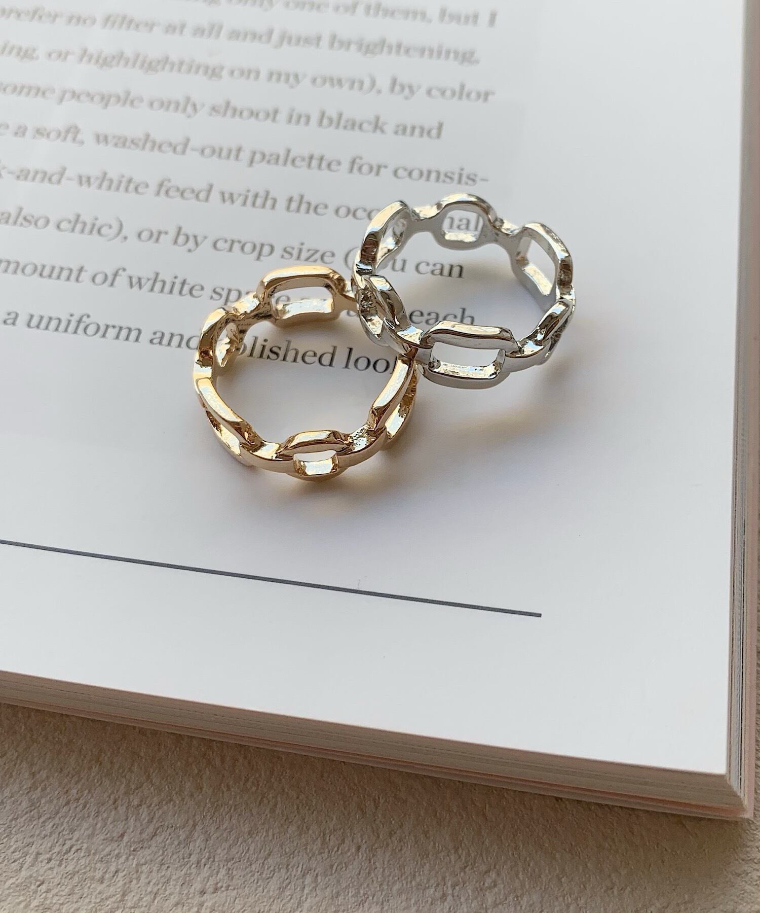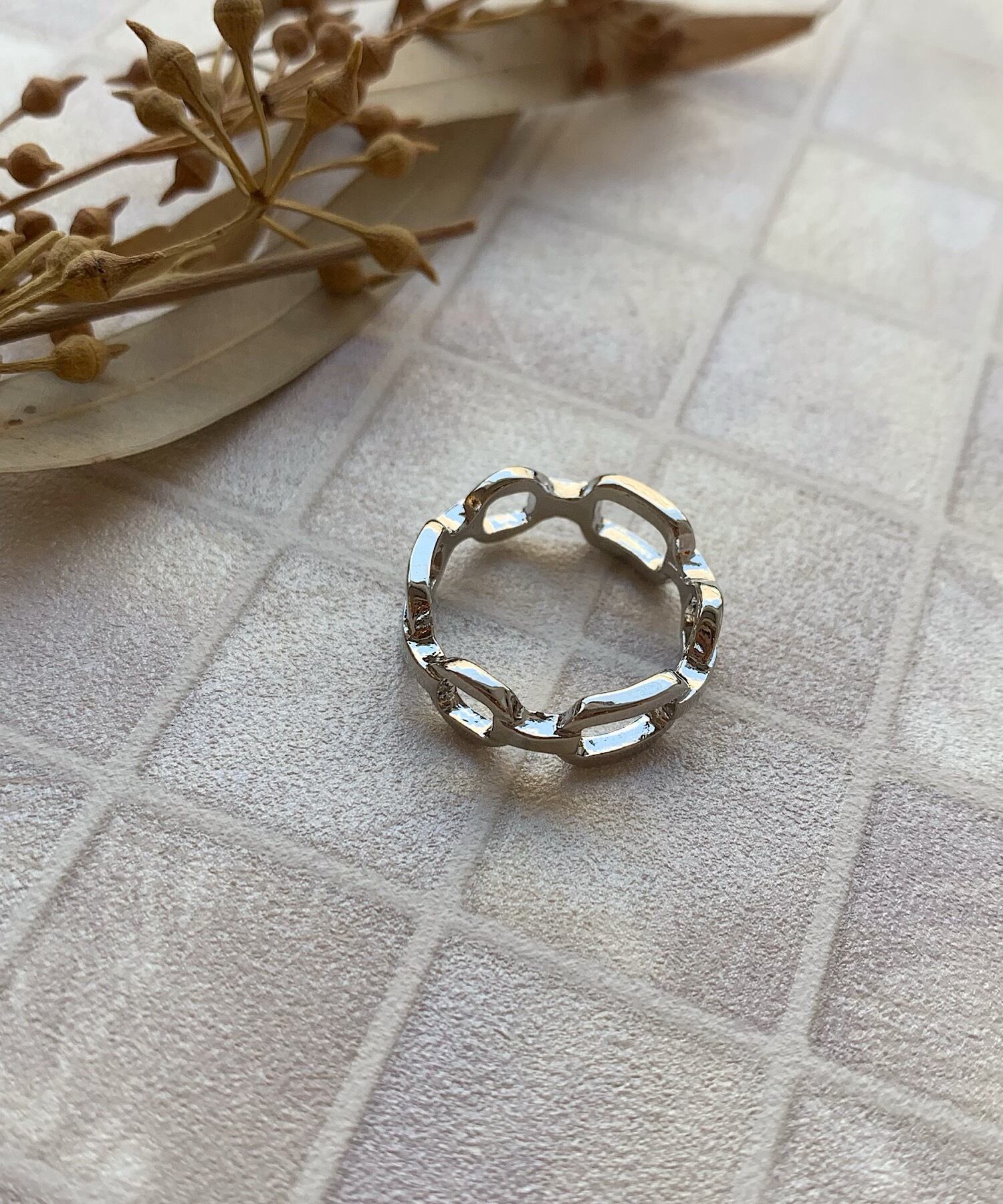 大きさが異なるチェーンを交互に繋げたデザインは個性的でモダンな印象に。