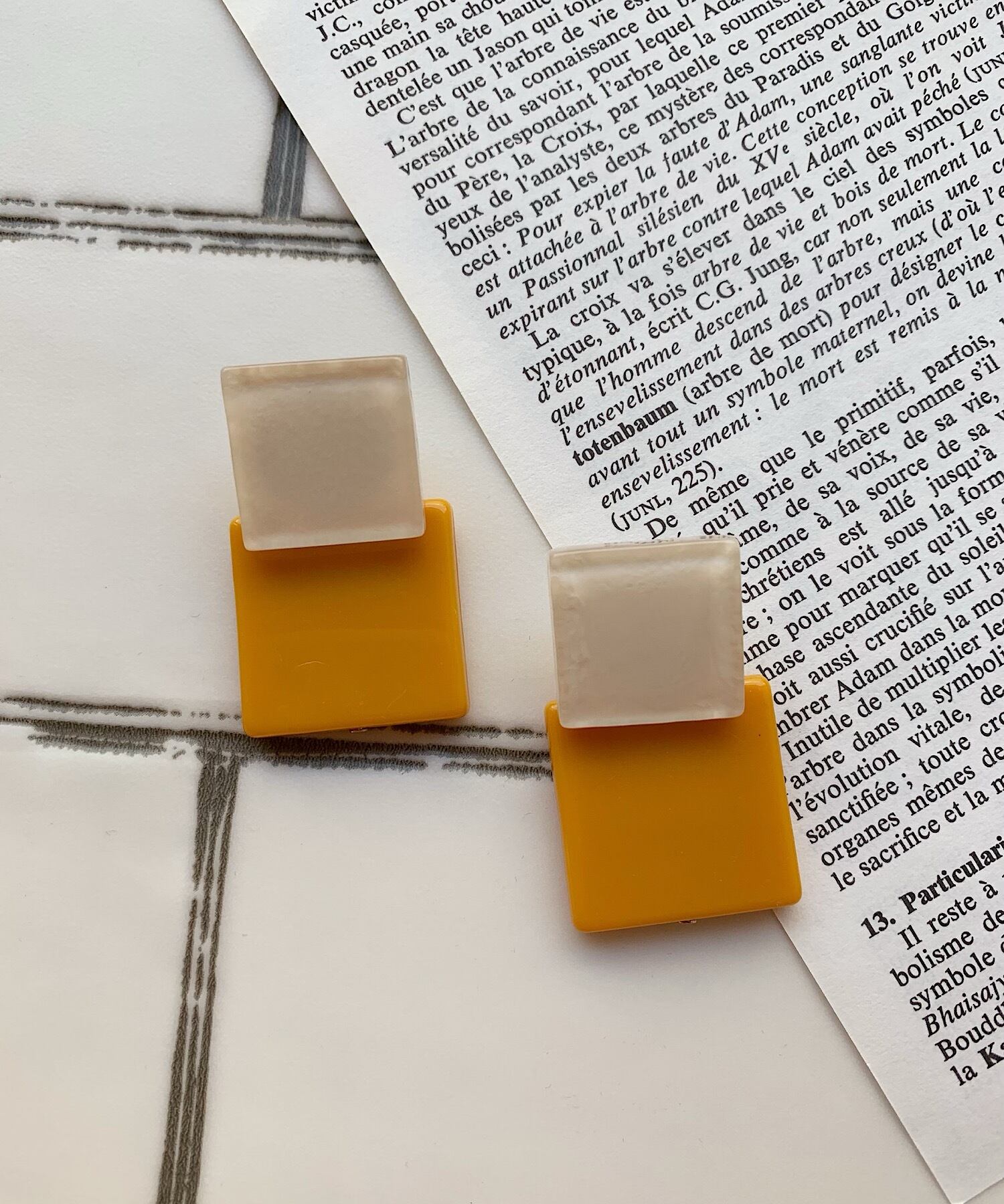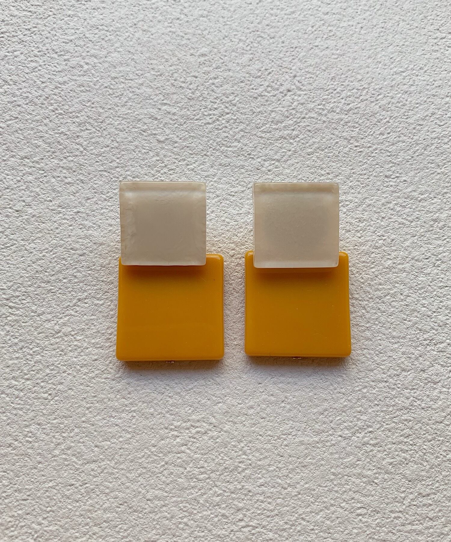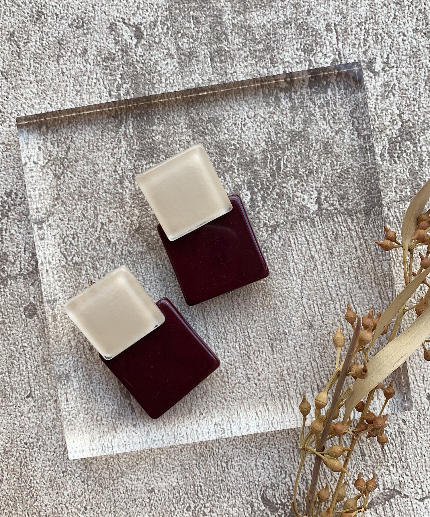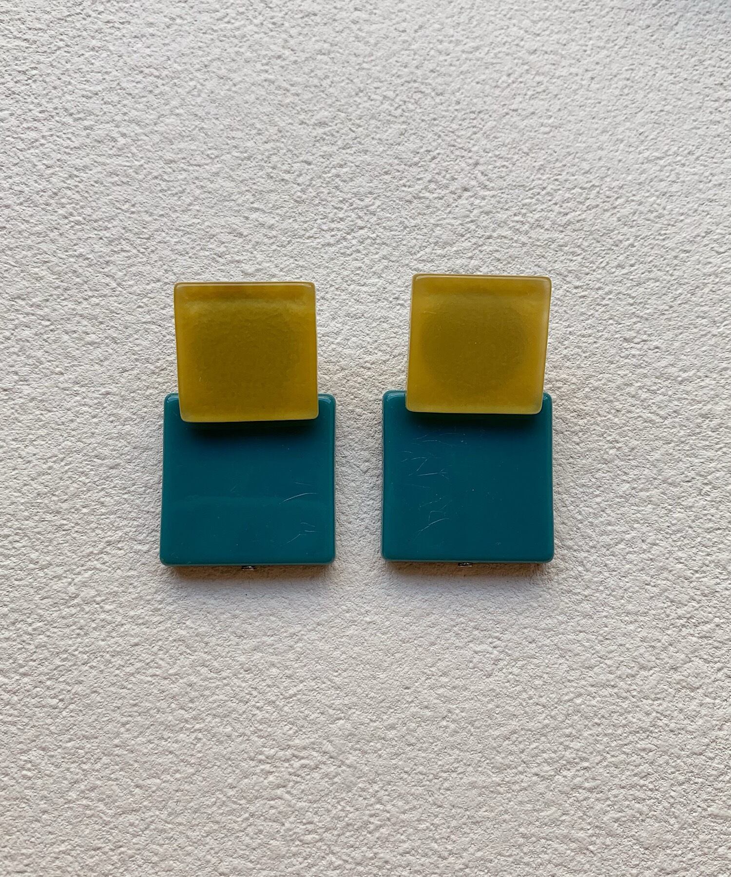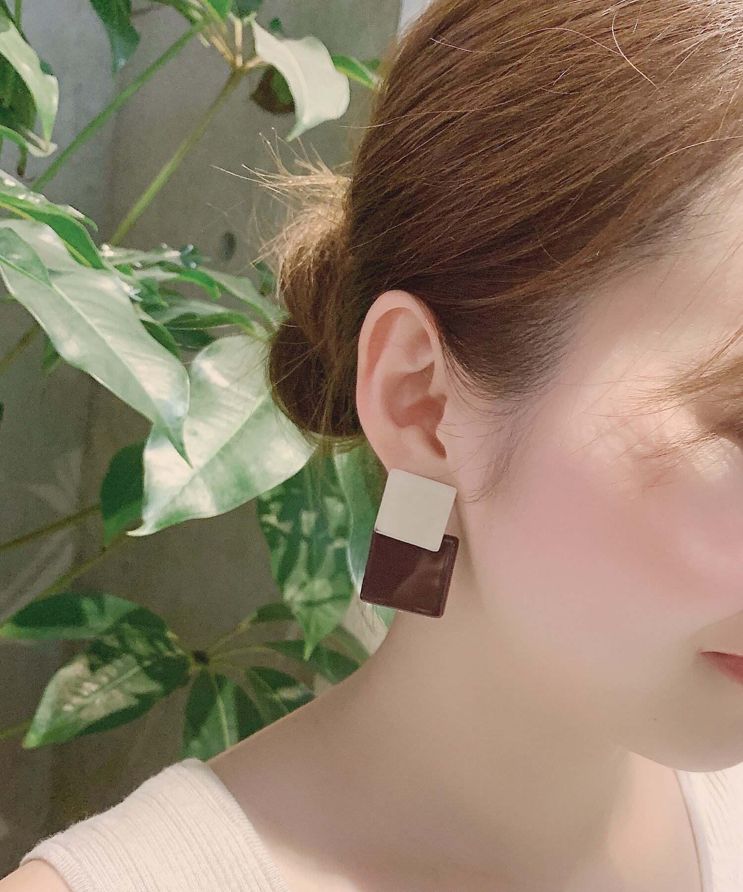 トーンの異なるカラーパーツを組み合わせたピアス。