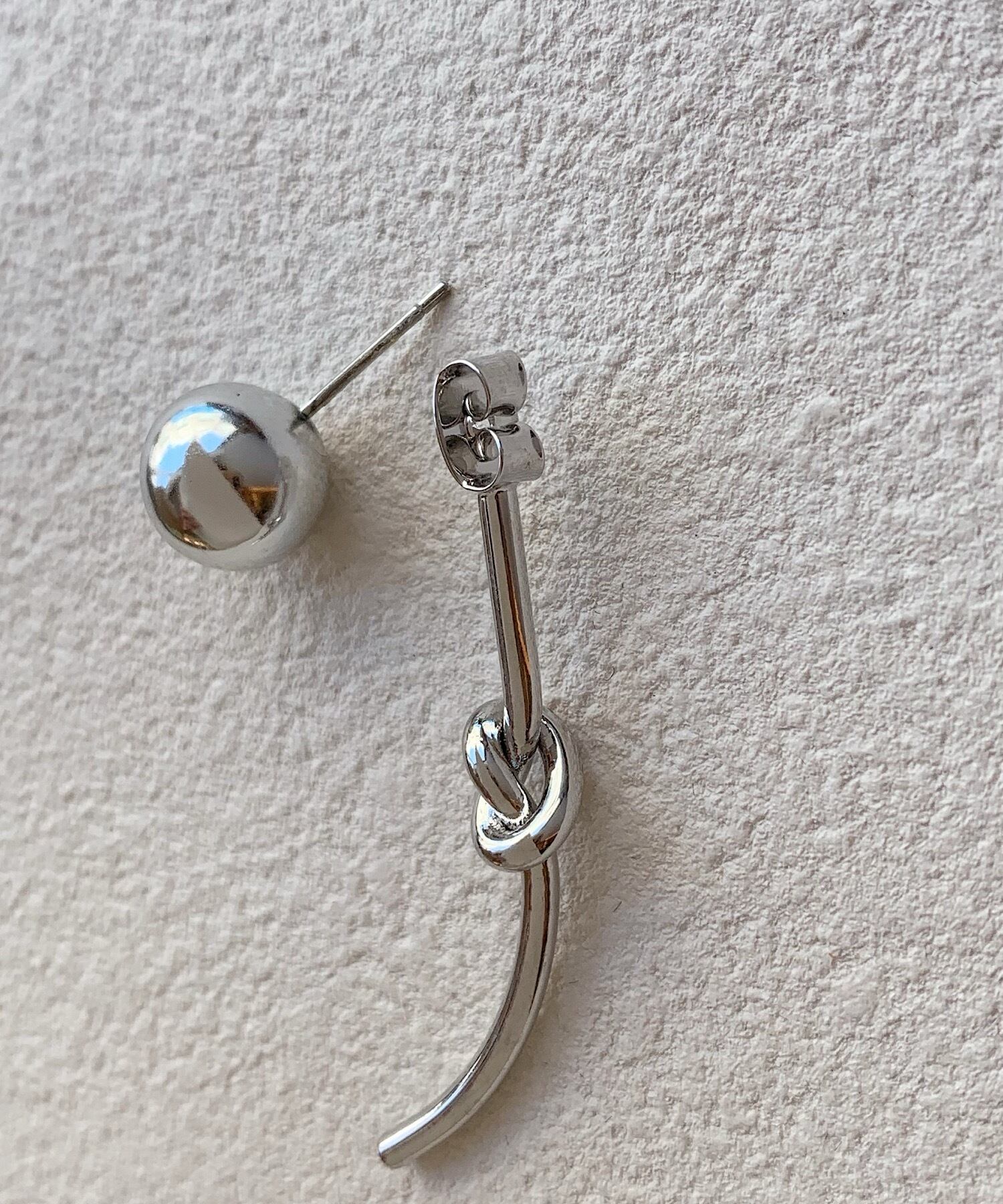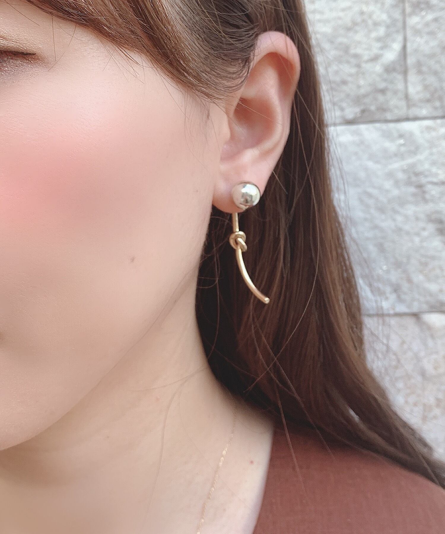 シンプルなボールシェイプのピアスにノットデザインのキャッチがついたピアスのセット。