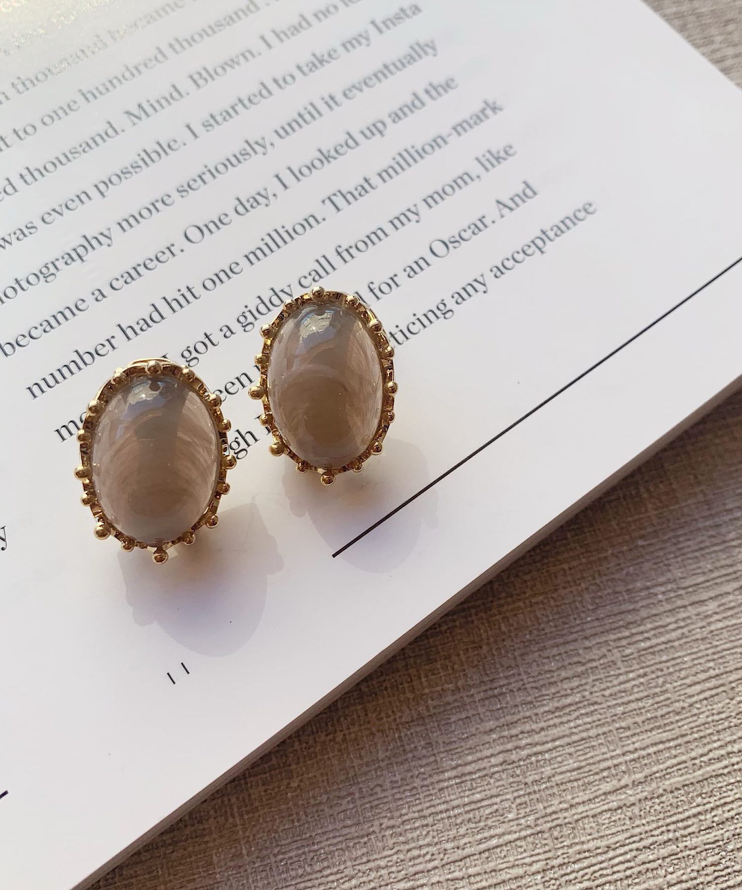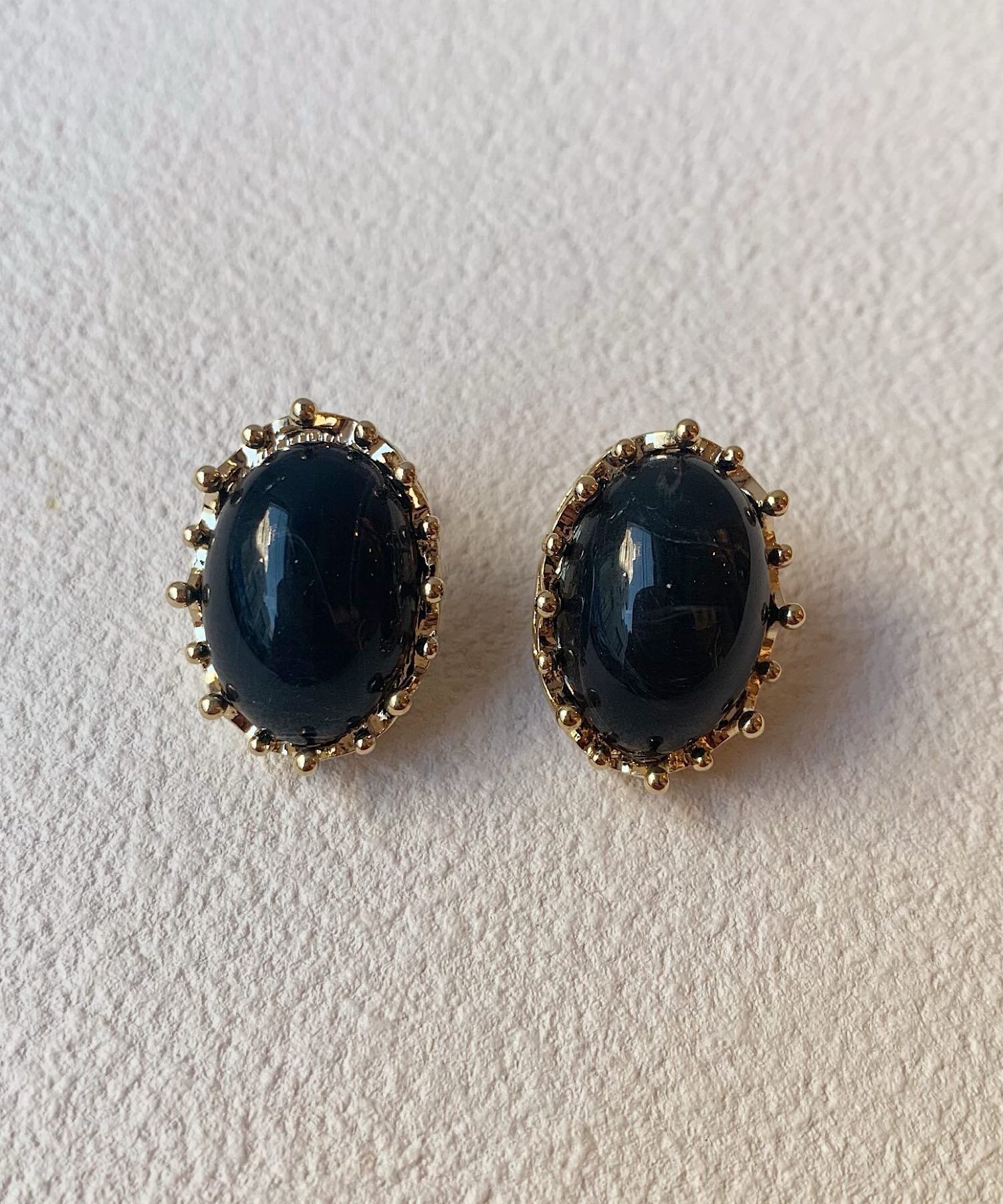 カラーストーンをアンティーク調の地金で縁取ったピアス。