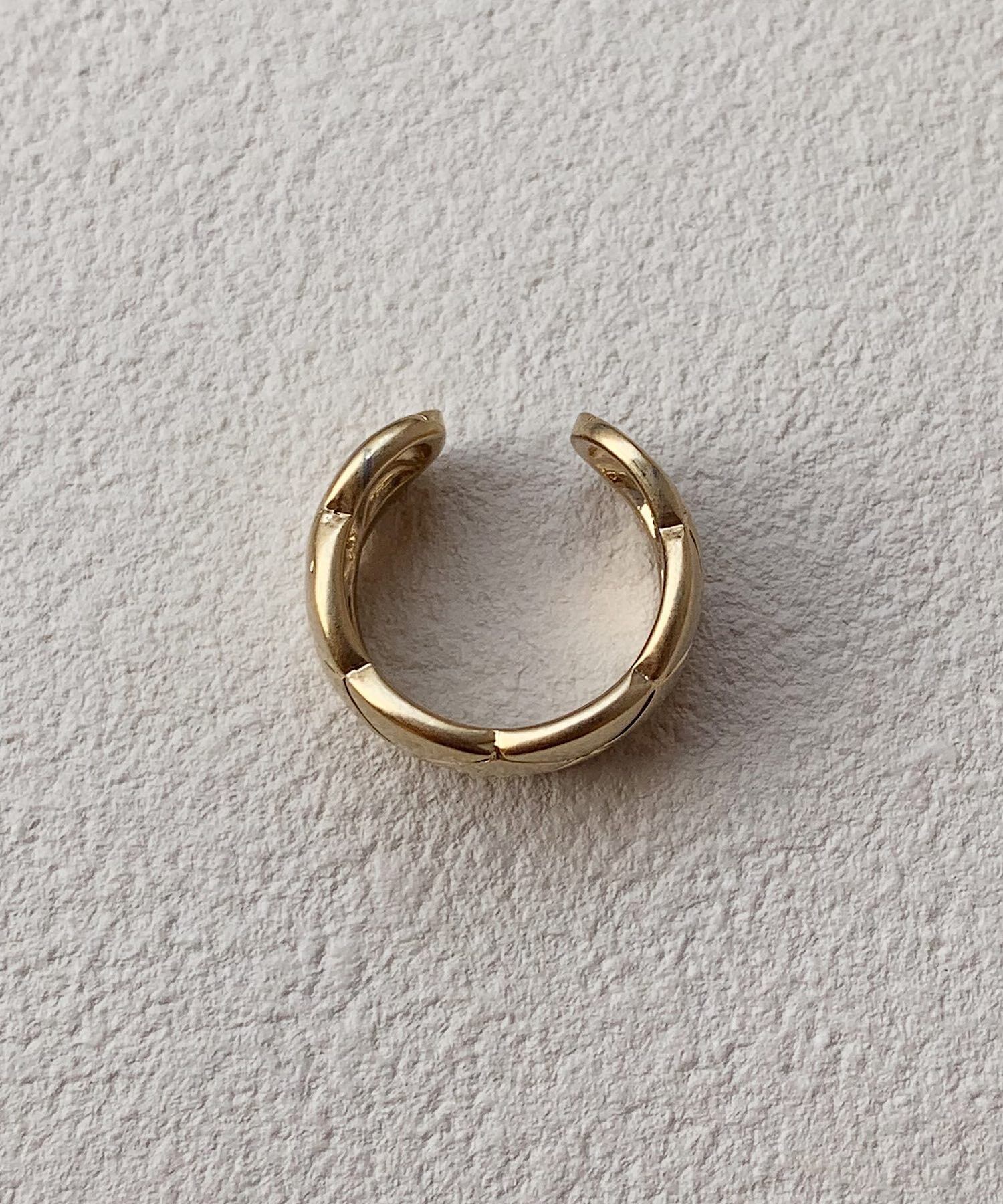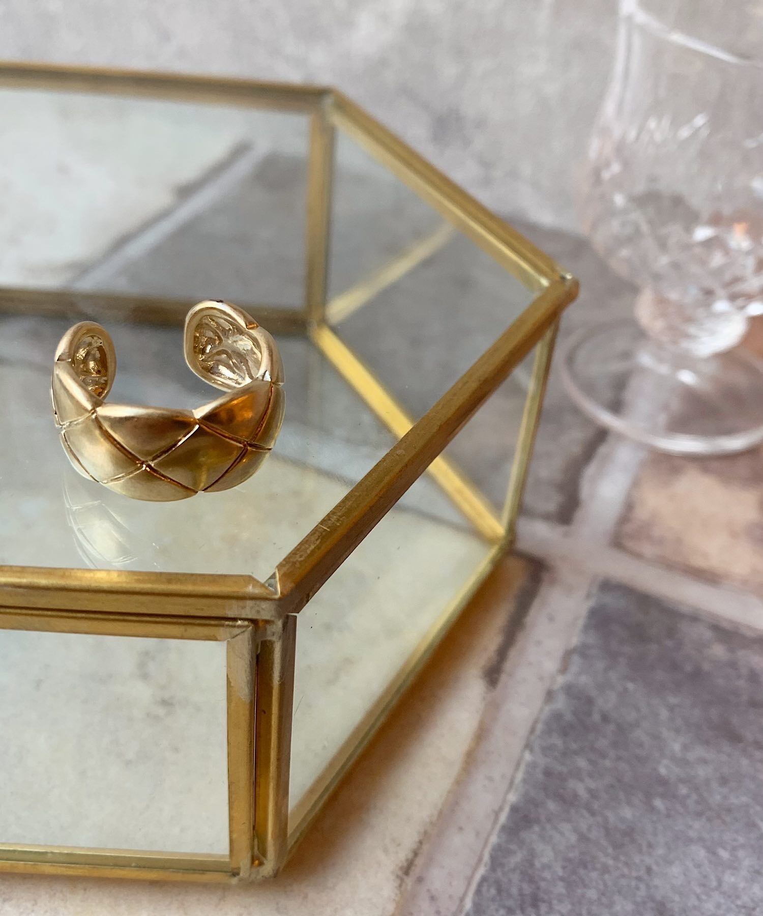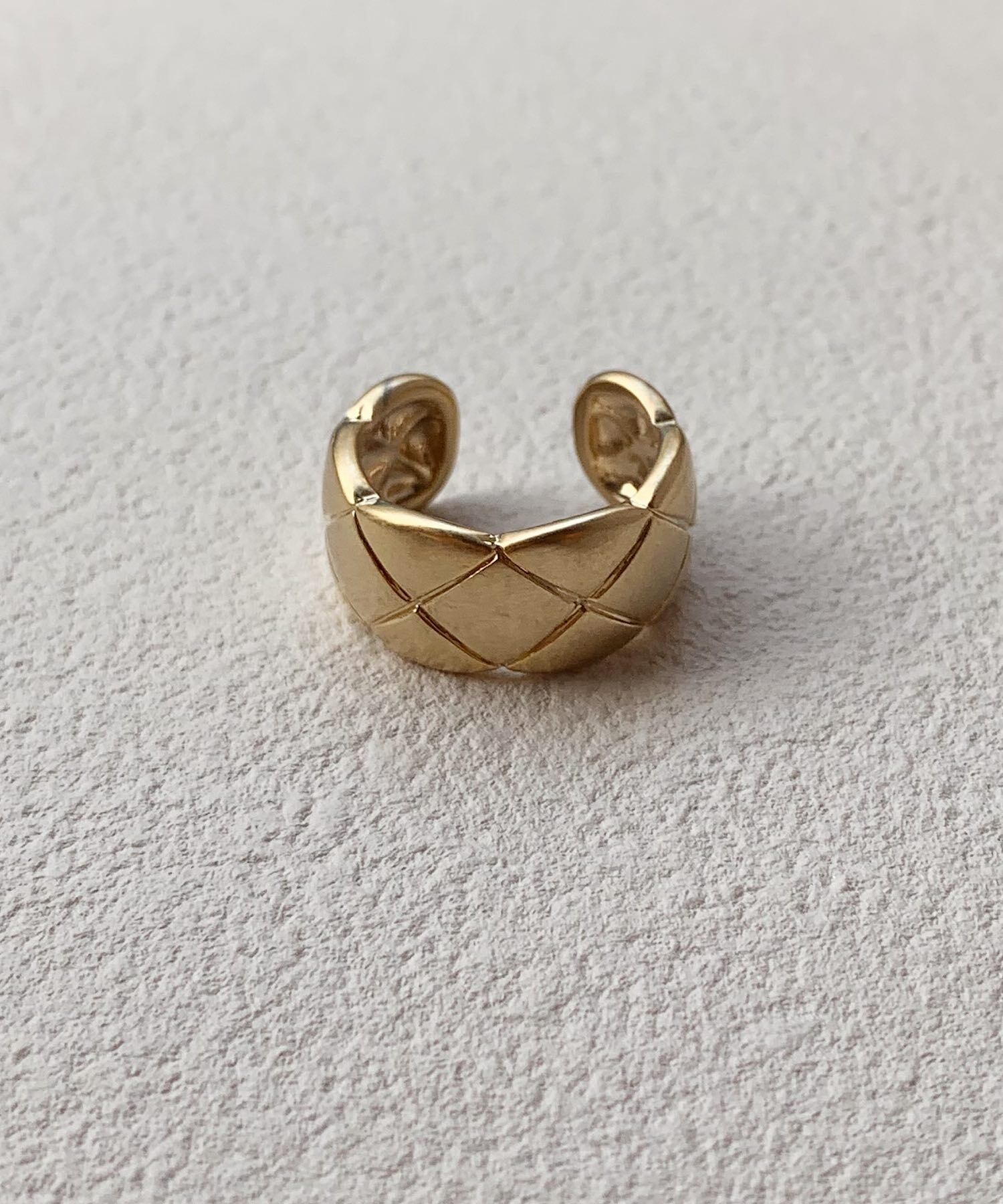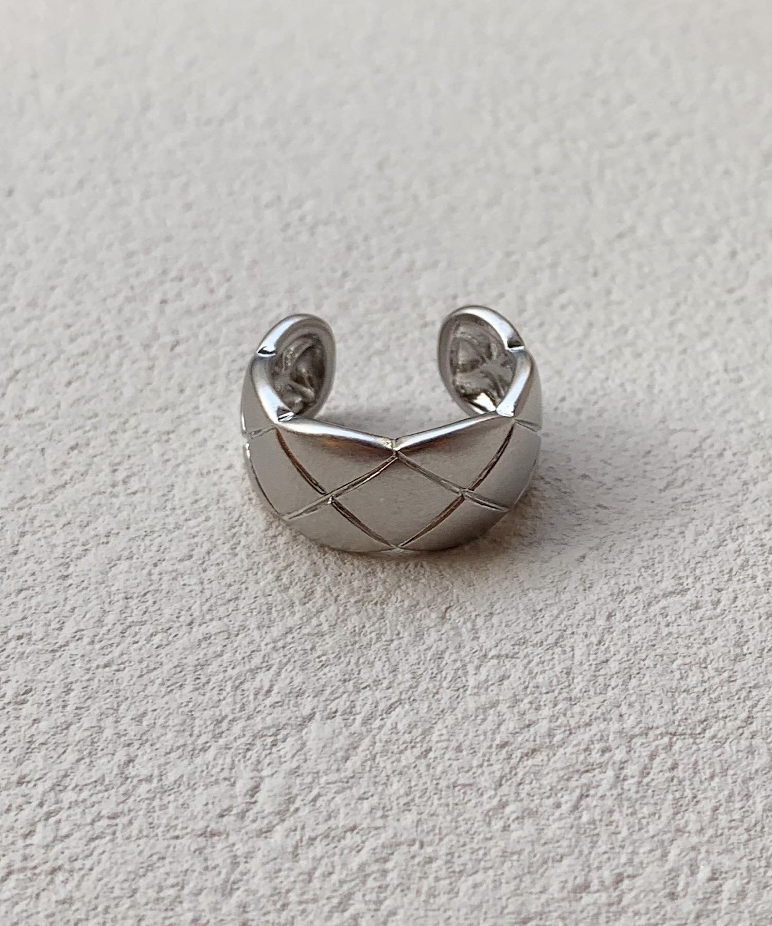 キルティング風のデザインが特徴的な大ぶりのメタルリング。