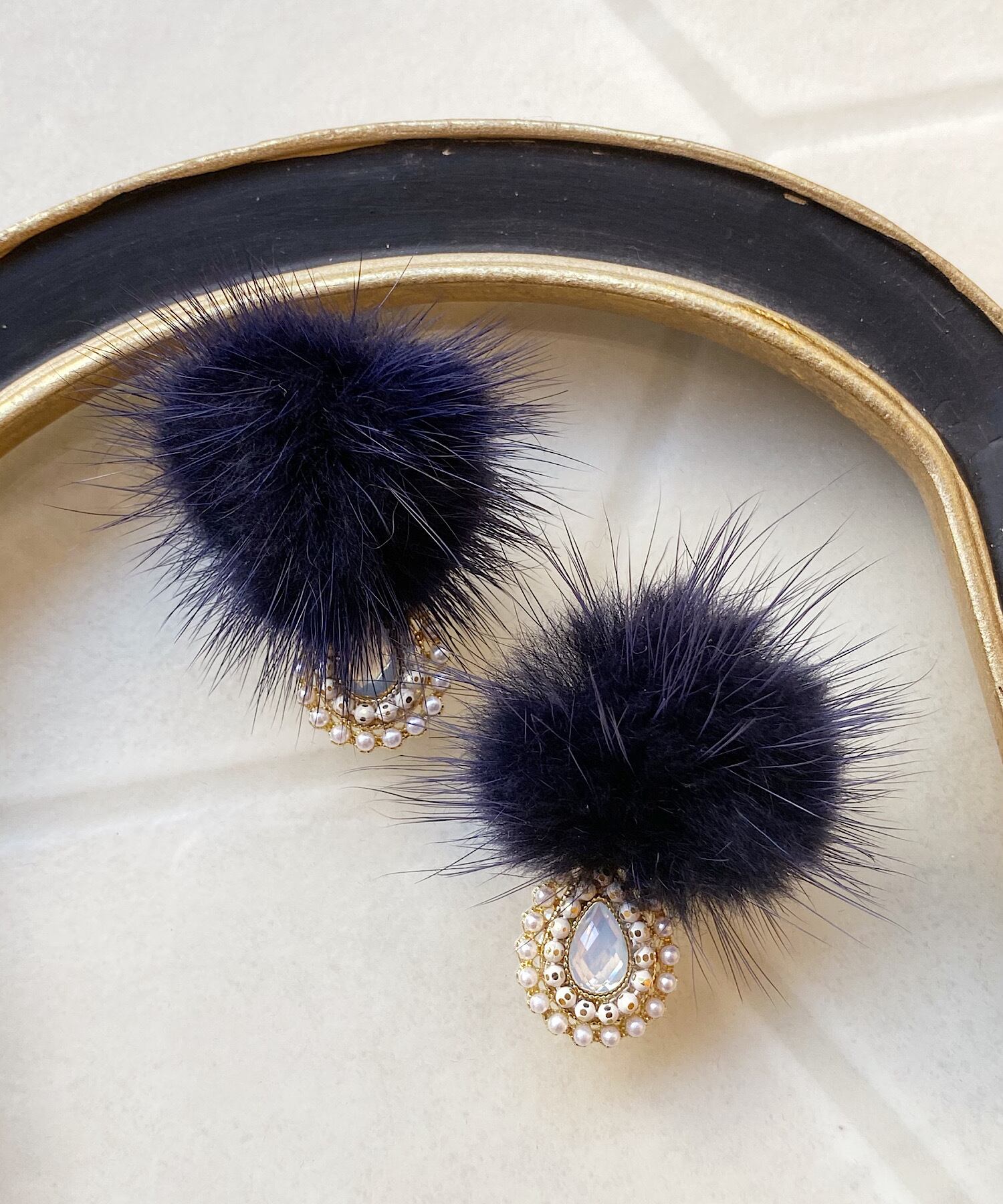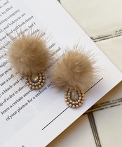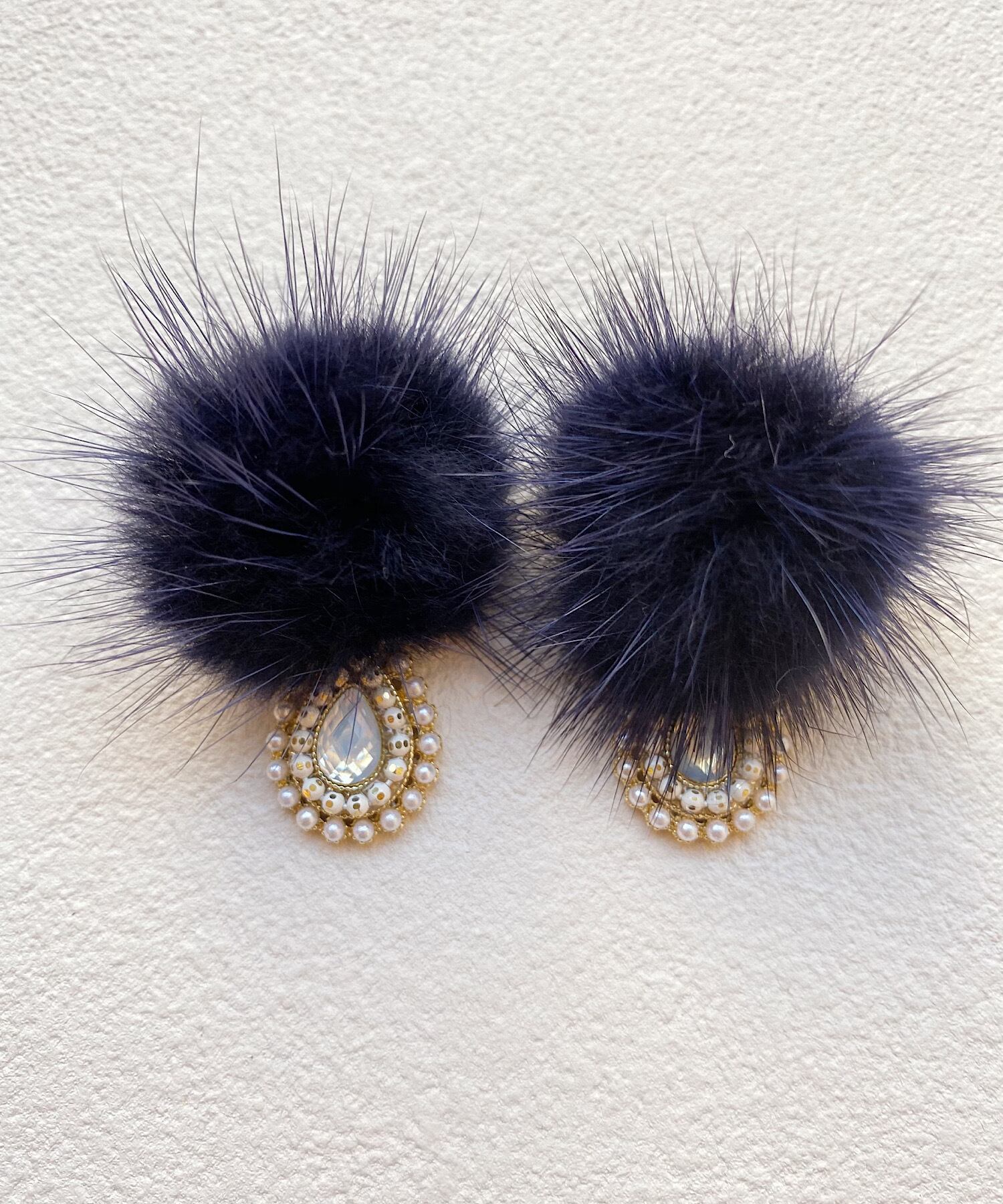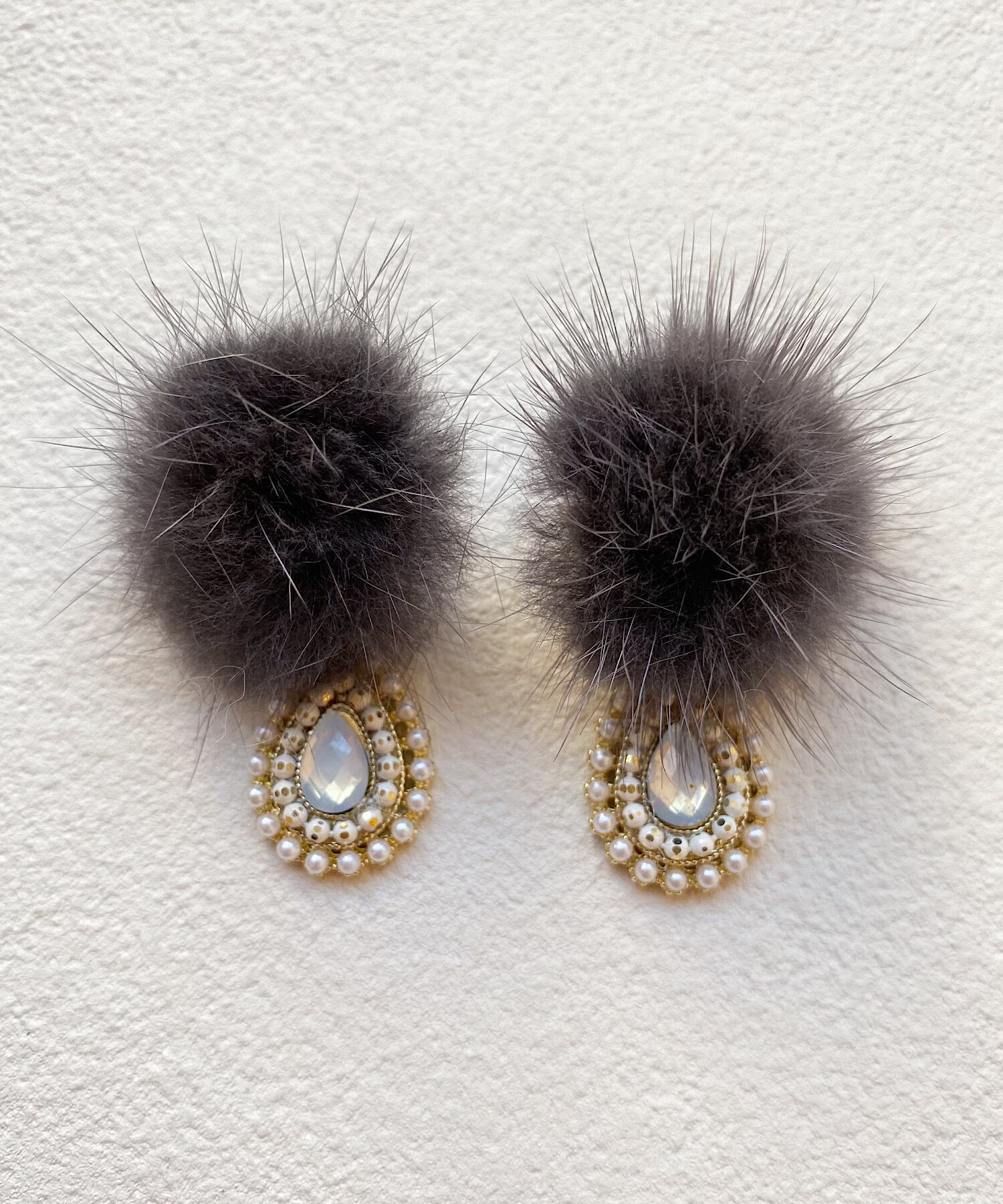 ふわふわのファーと華やかなビジューを組み合わせたピアス。