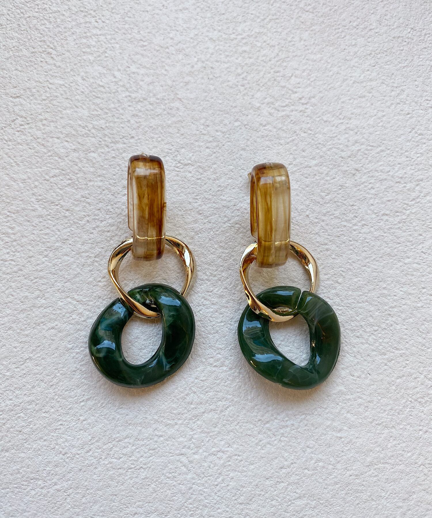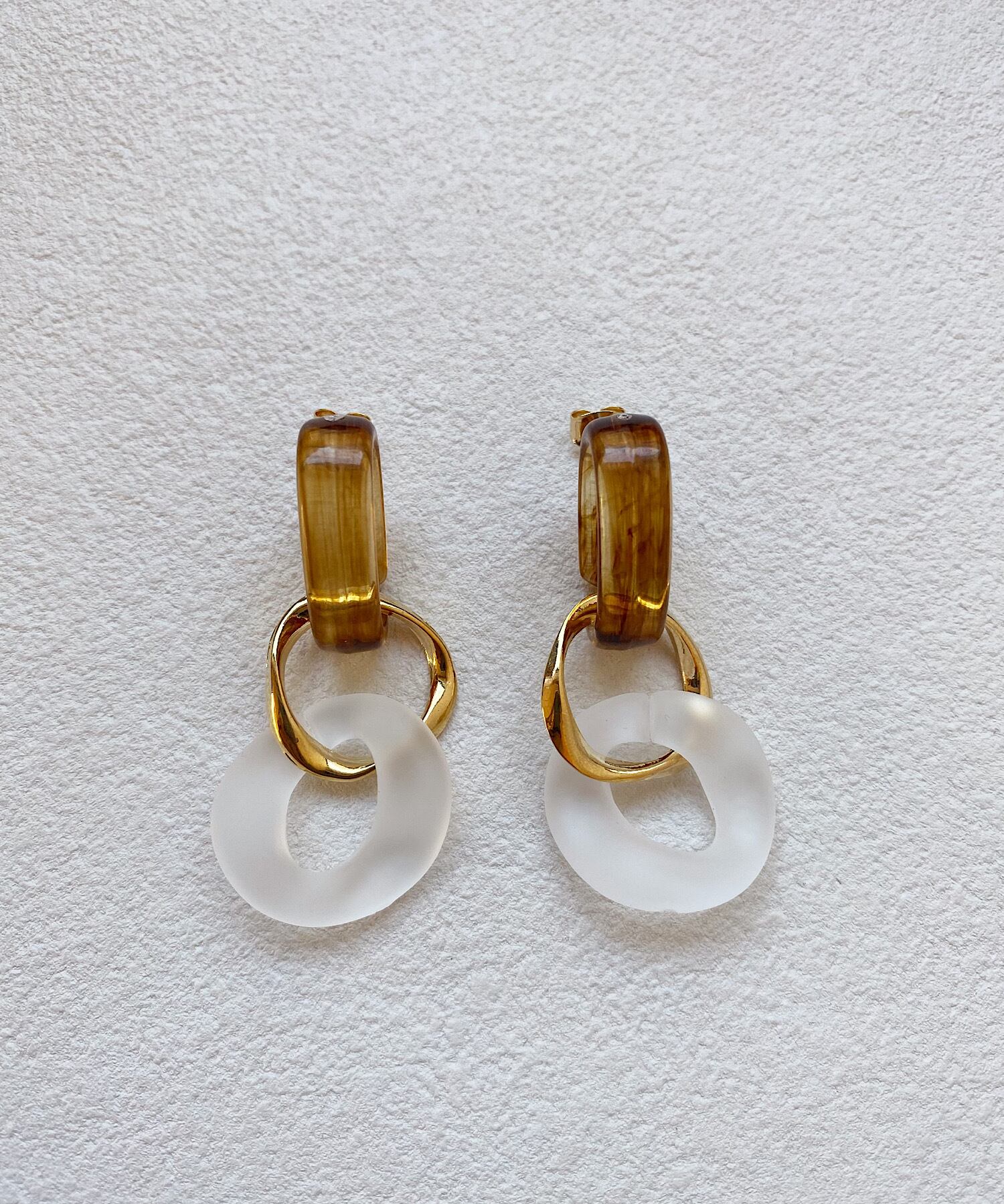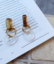 クリアパーツとメタルパーツを組み合わせたピアス。