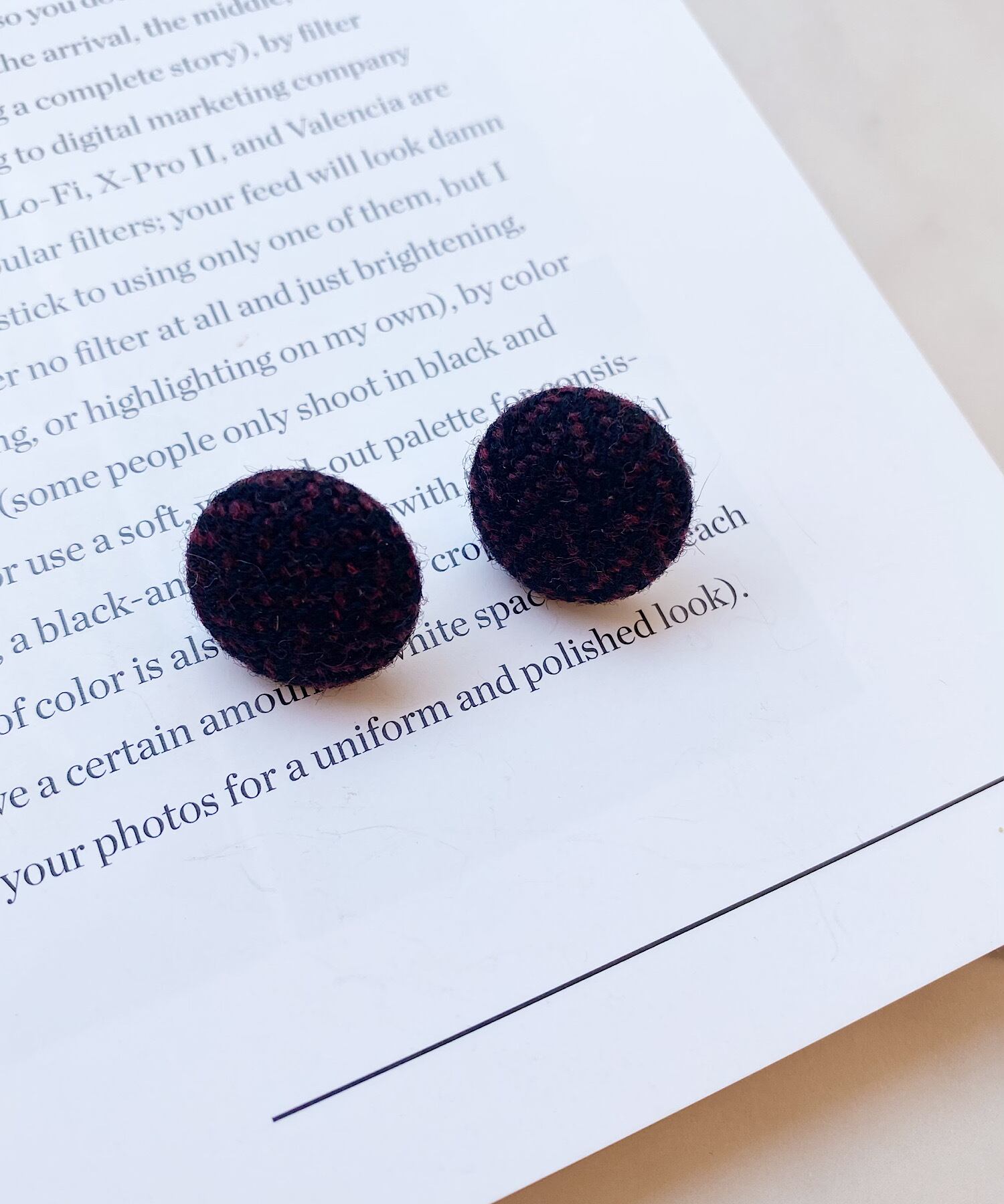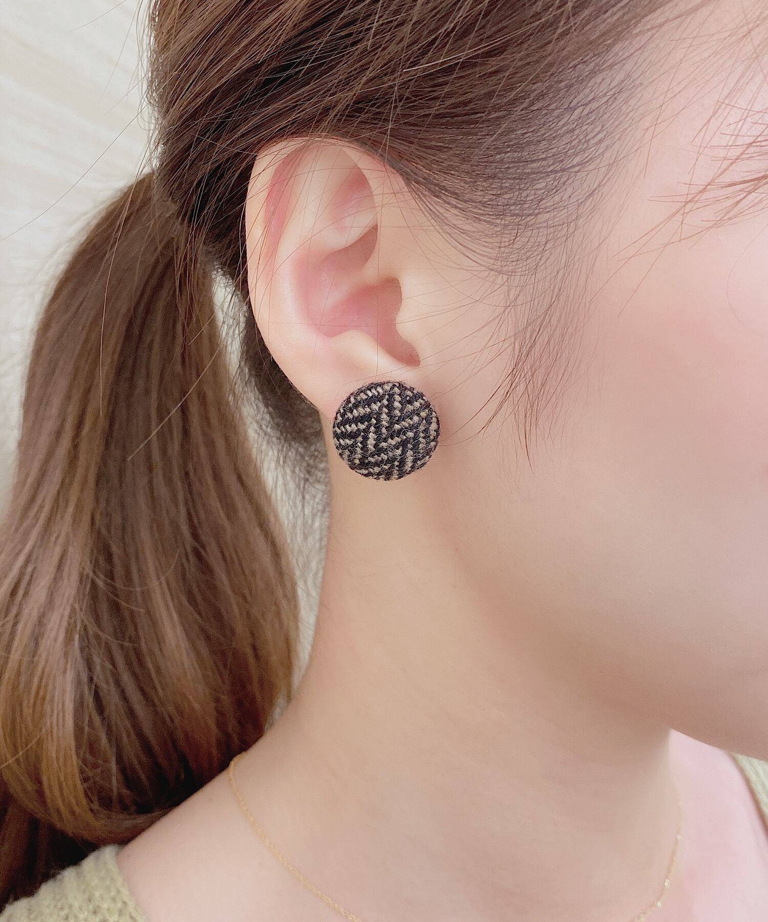 くるみボタンのようなあたたかみのあるデザインで、耳元に季節感のあるアクセントをプラスできるアイテムです。