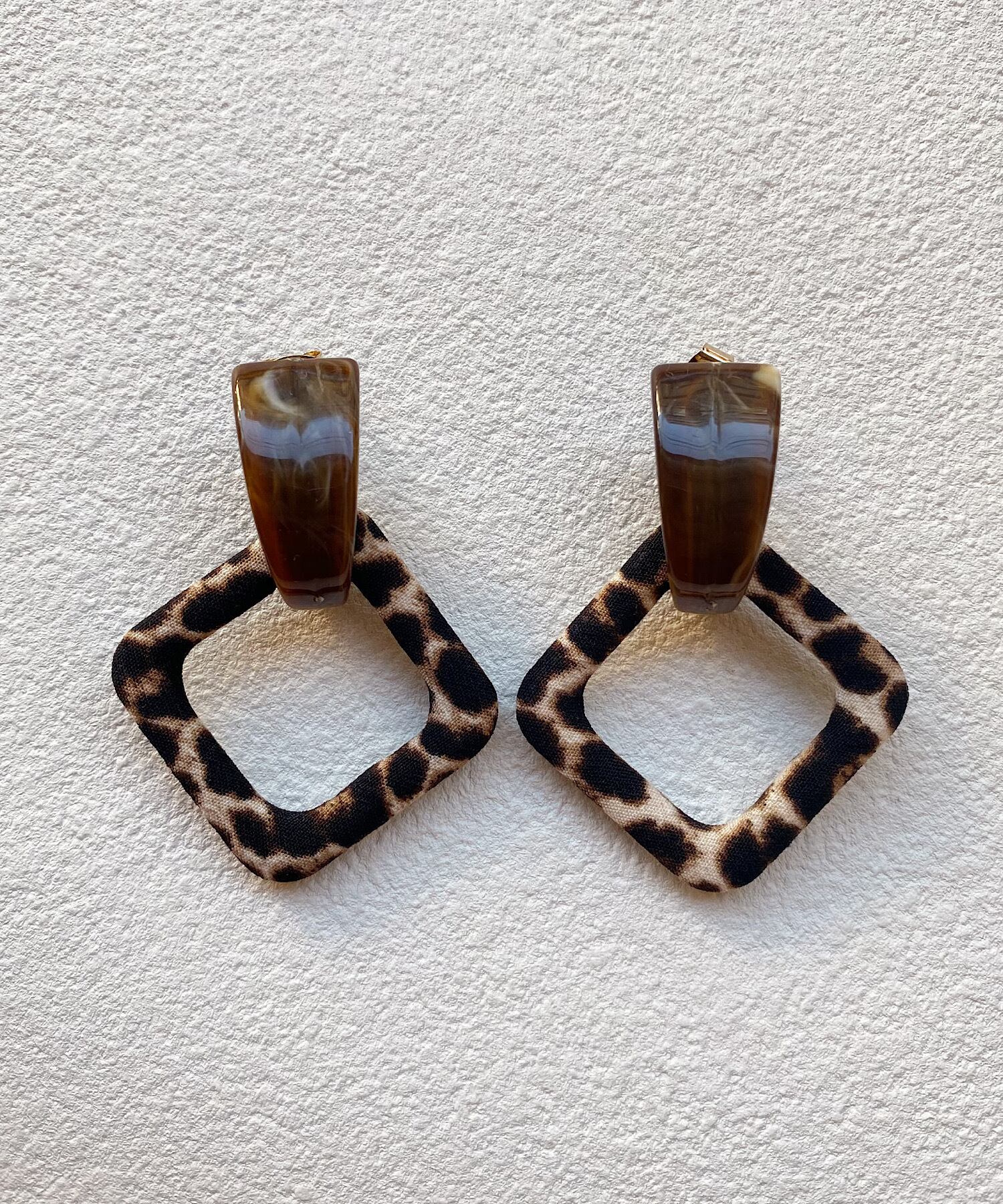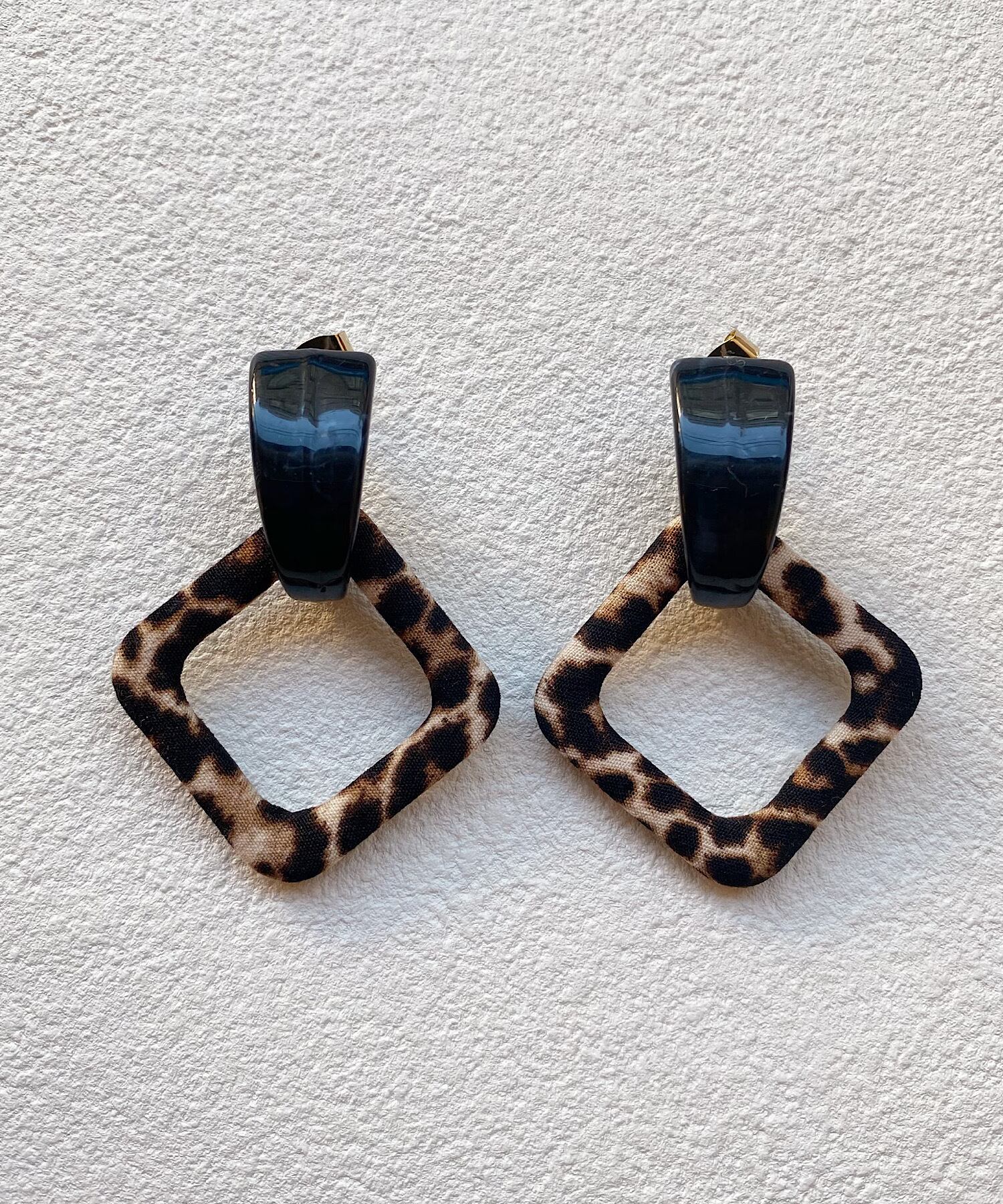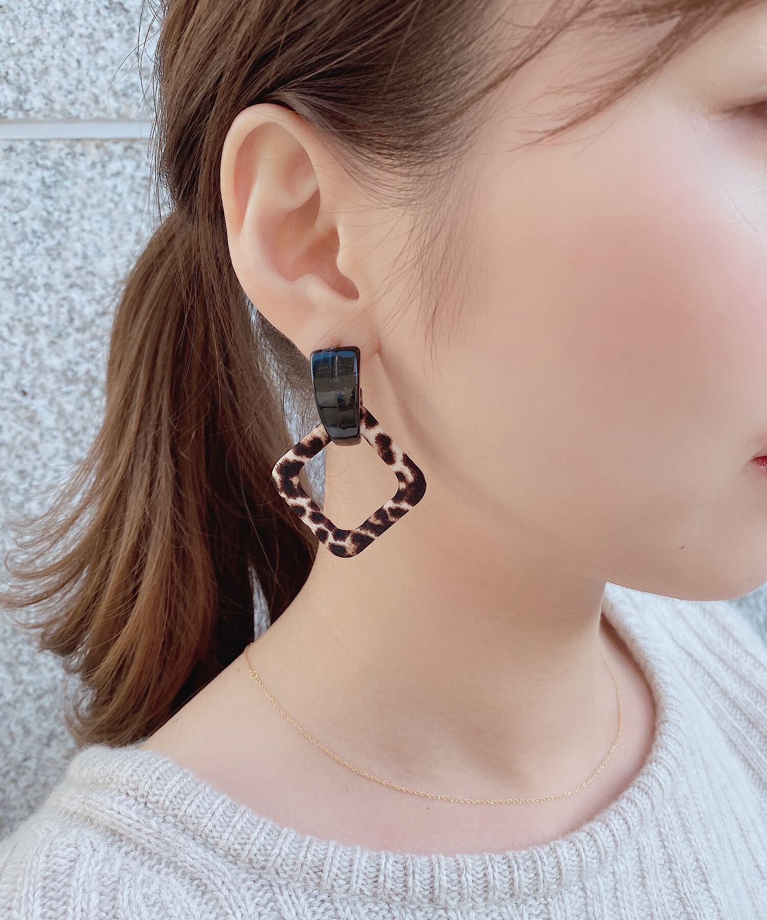 レオパード柄のスクエアパーツが特徴的なピアス。