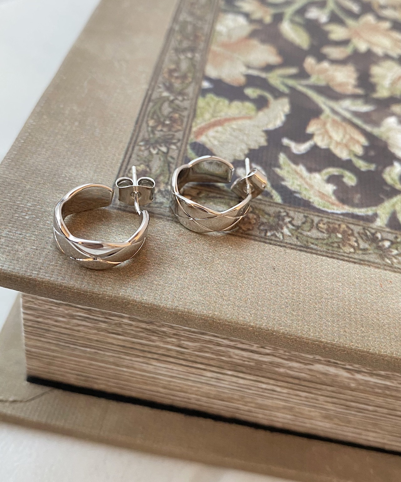 小ぶりのメタルパーツに繊細なラインをデザインしたフープピアス。