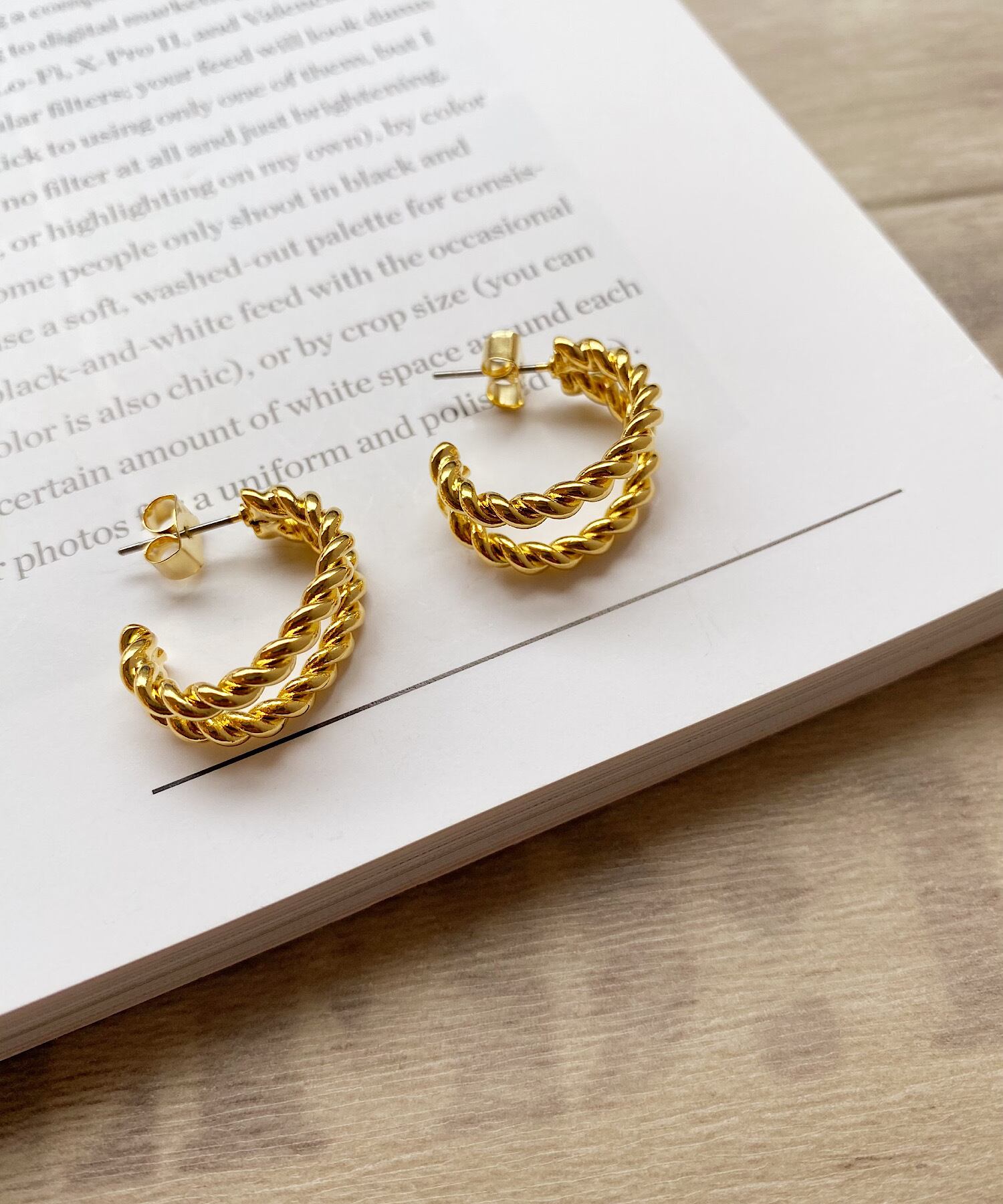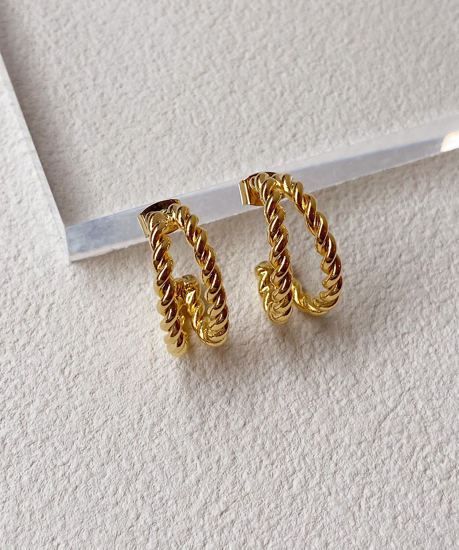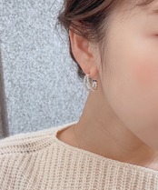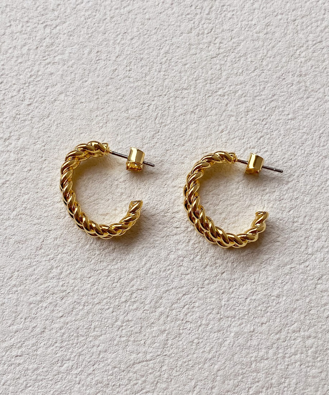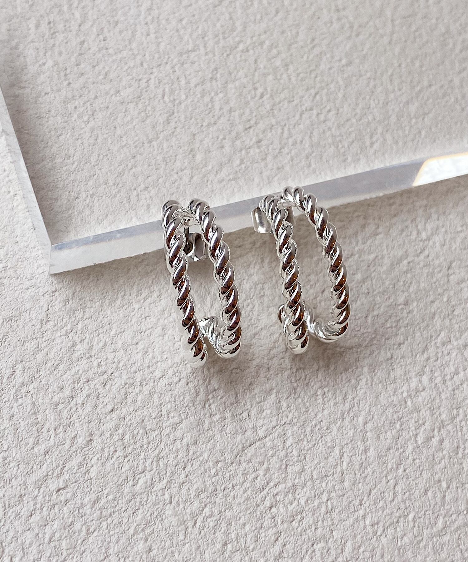 2本のひねりがきいたメタルラインのフープピアス。