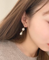 ビジューとパールを組み合わせた揺れ感が楽しめるピアス。