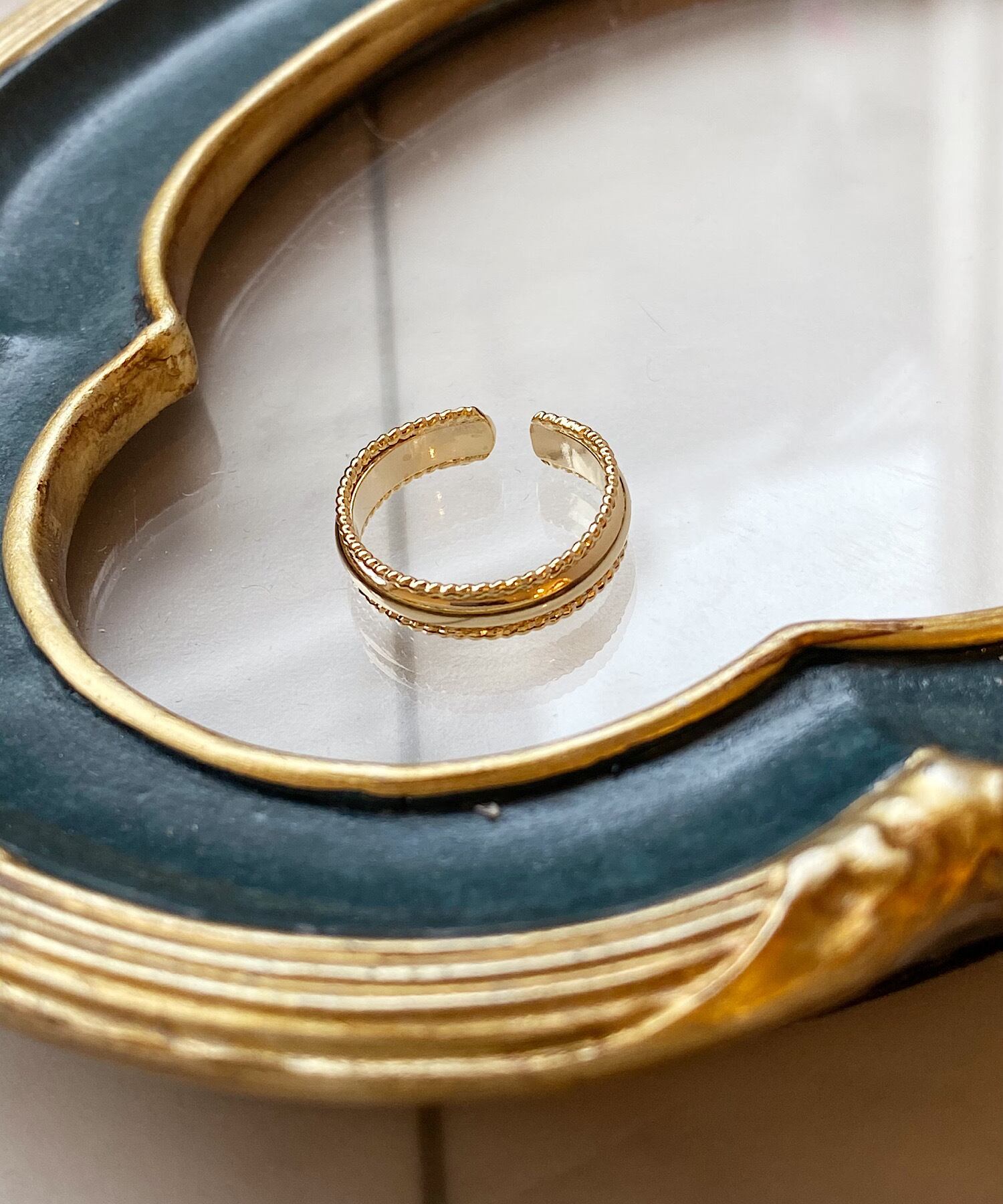 太めのメタルを細身のミルのリングが囲むデザインのリング。