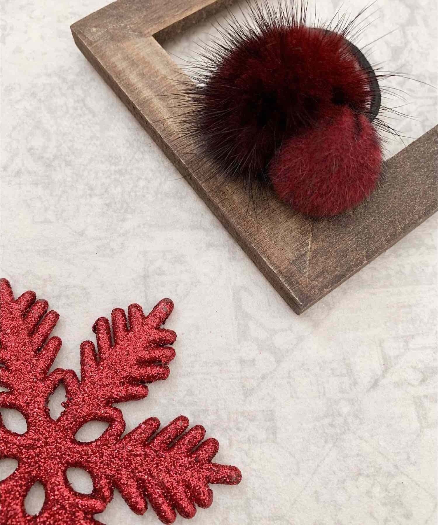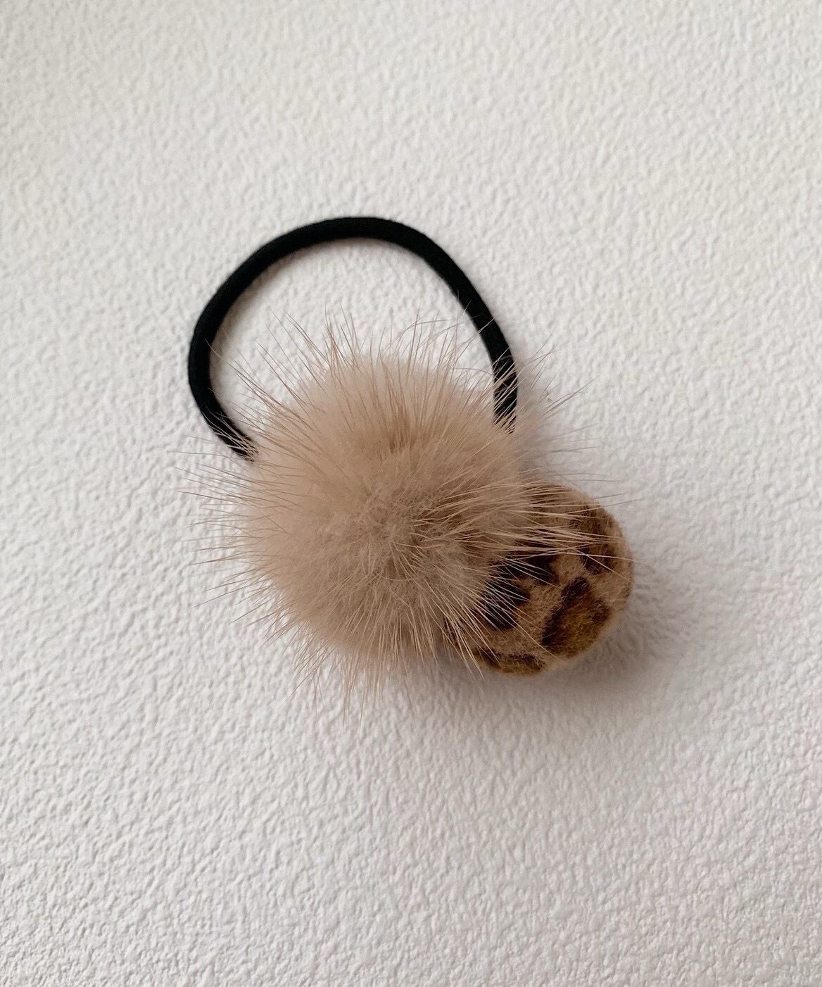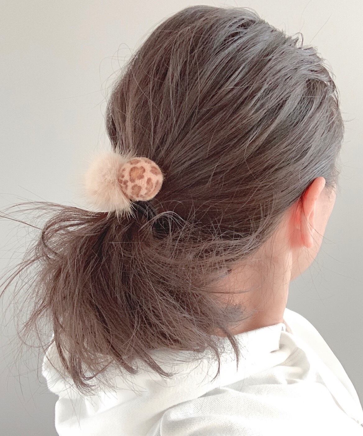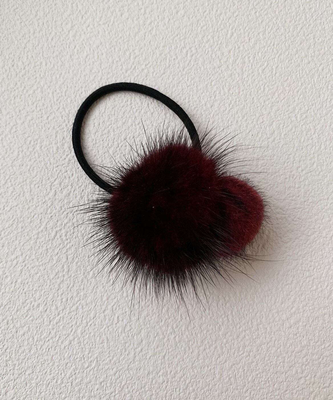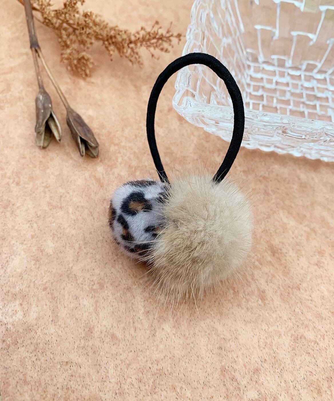 大きめでふわふわのボンボンと小さめでモコモコのボンボンを組み合わせたヘアゴム。