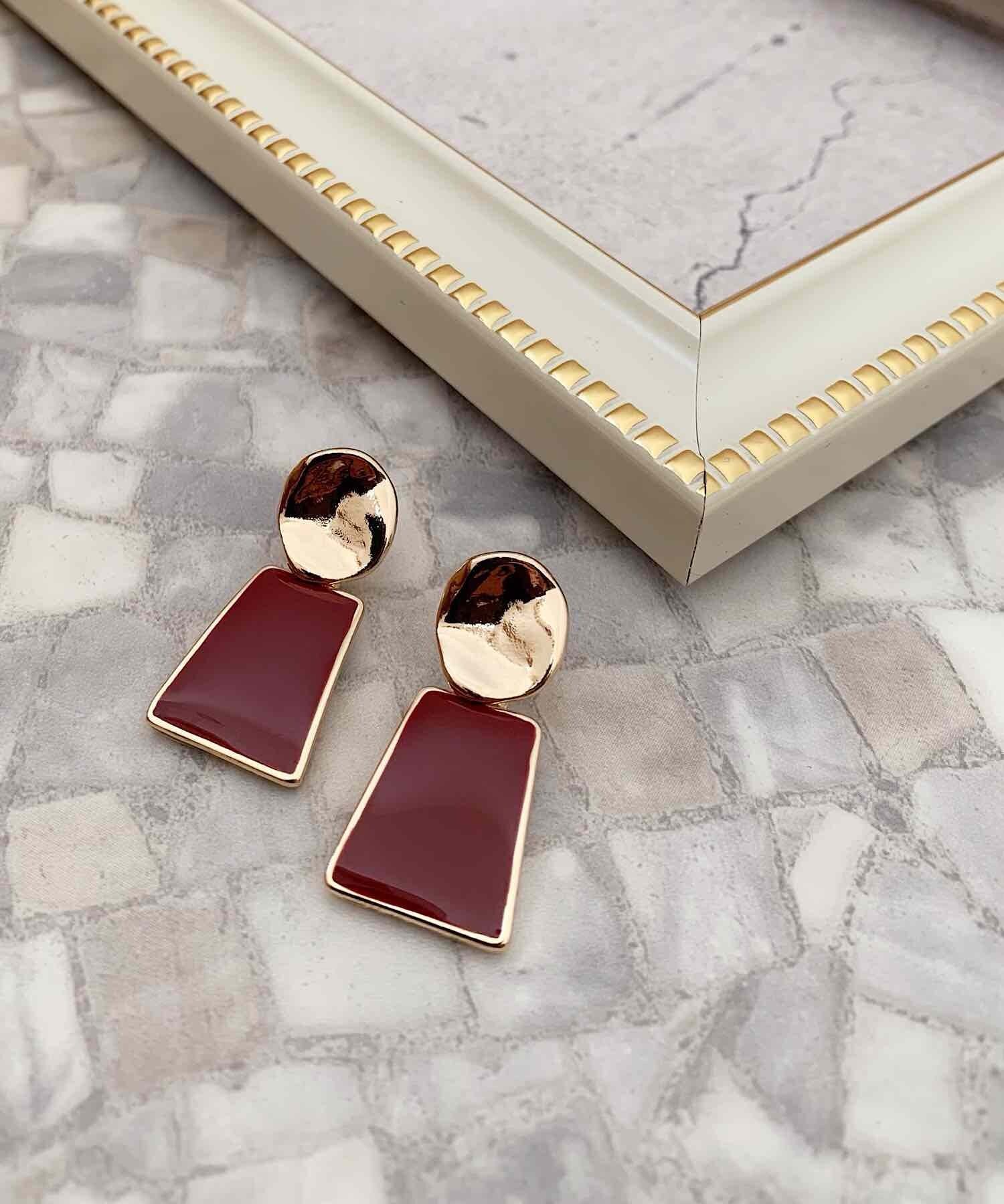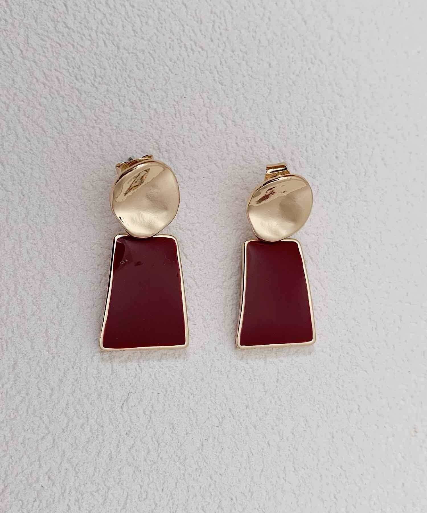 凹凸のある地金にスクエアのカラーストーンを合わせたピアス。