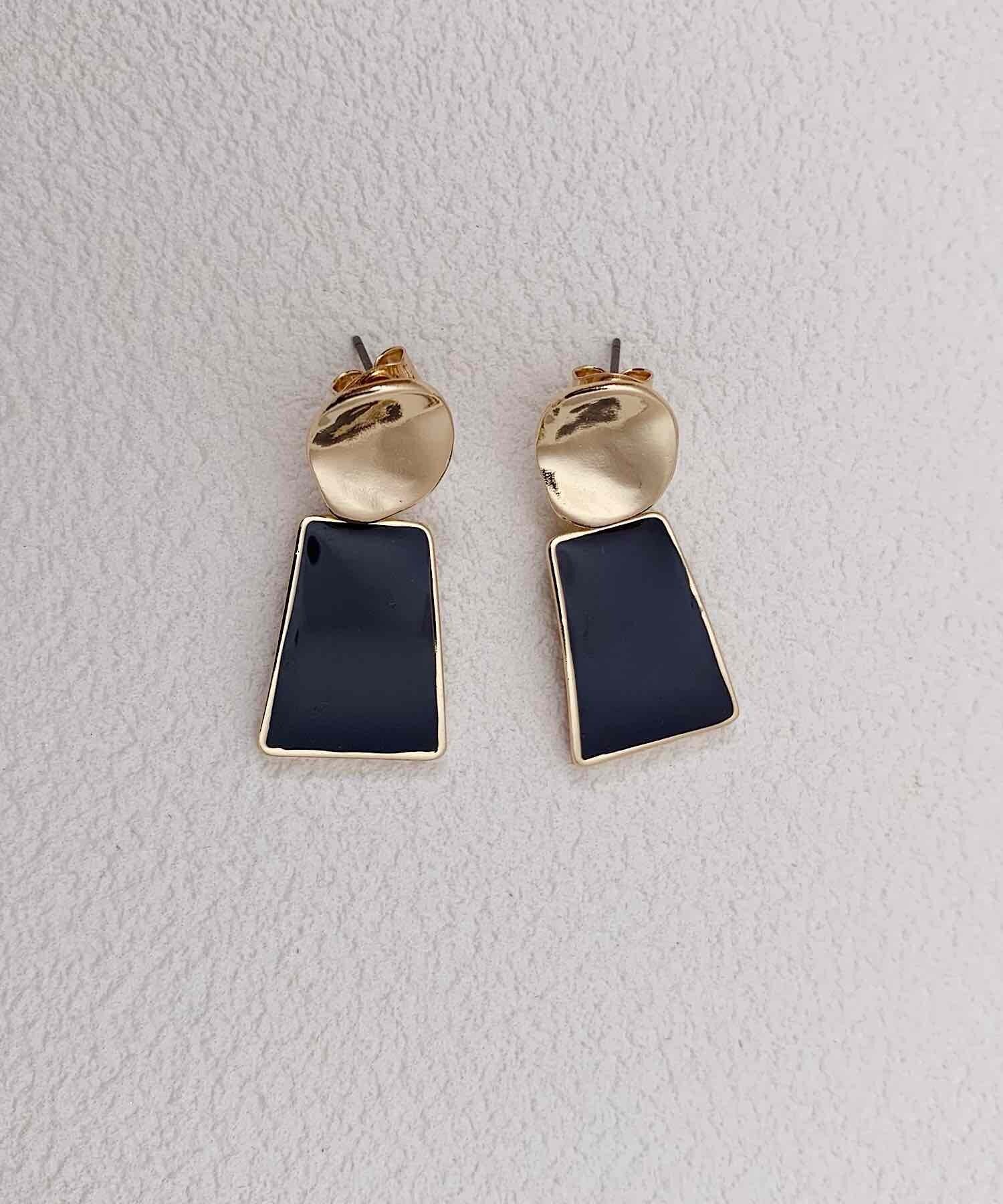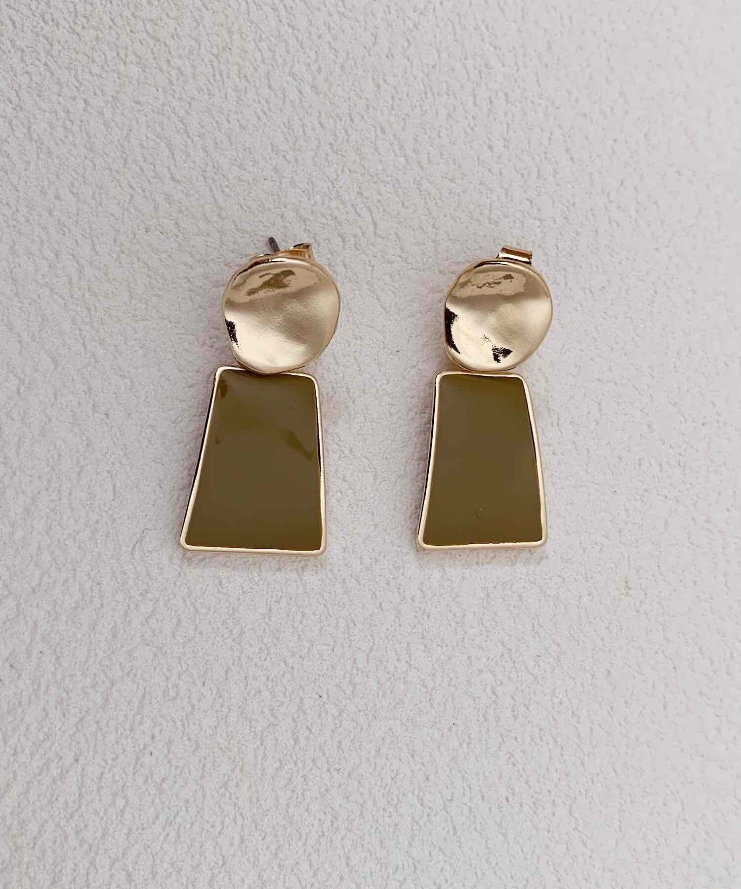 ゴールドの変形プレートとしっとり艶めくスクエアストーンが絶妙にマッチしたデザイン。