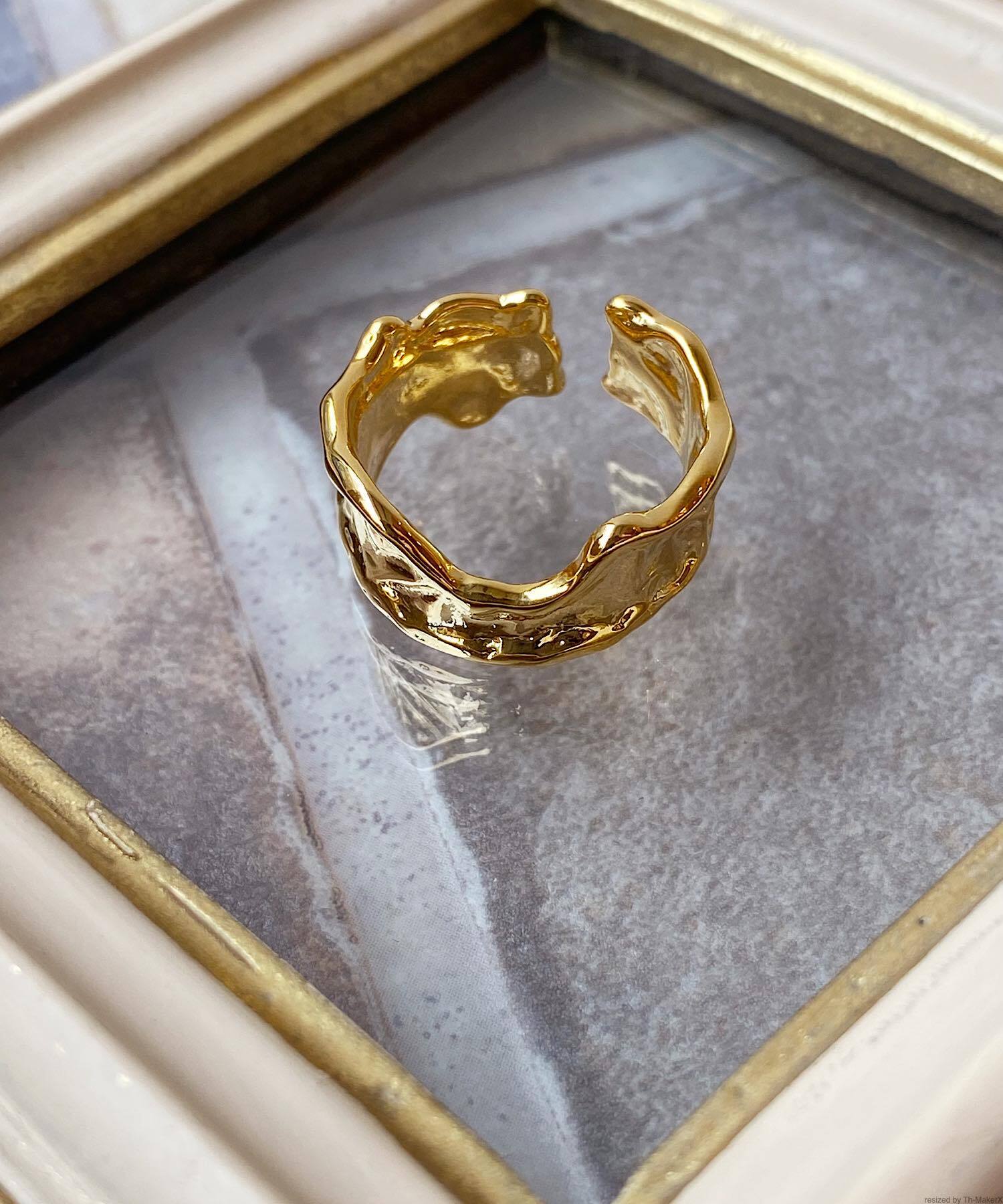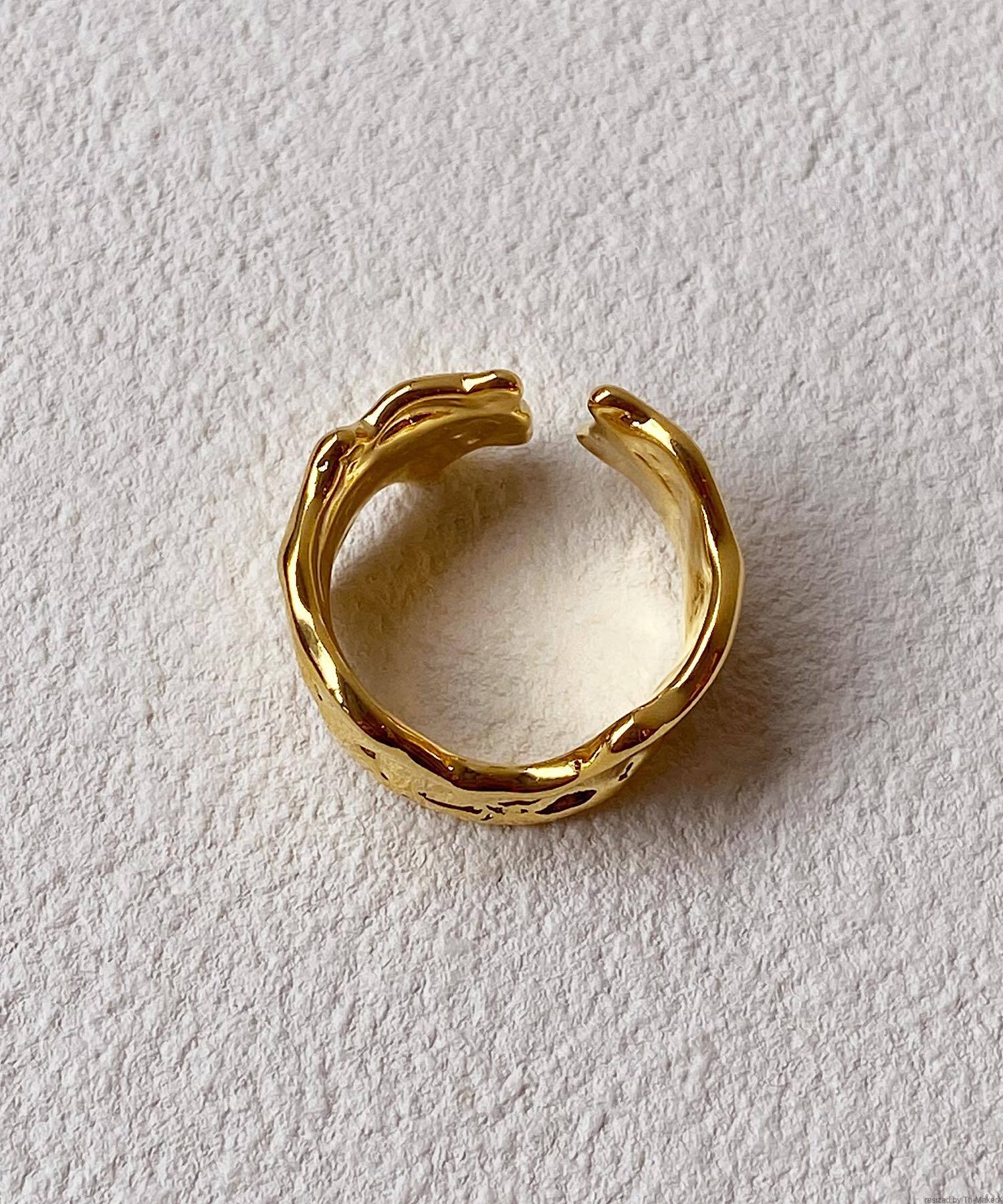 大ぶりのふちに厚みを持たせたウェーブデザインのリング。