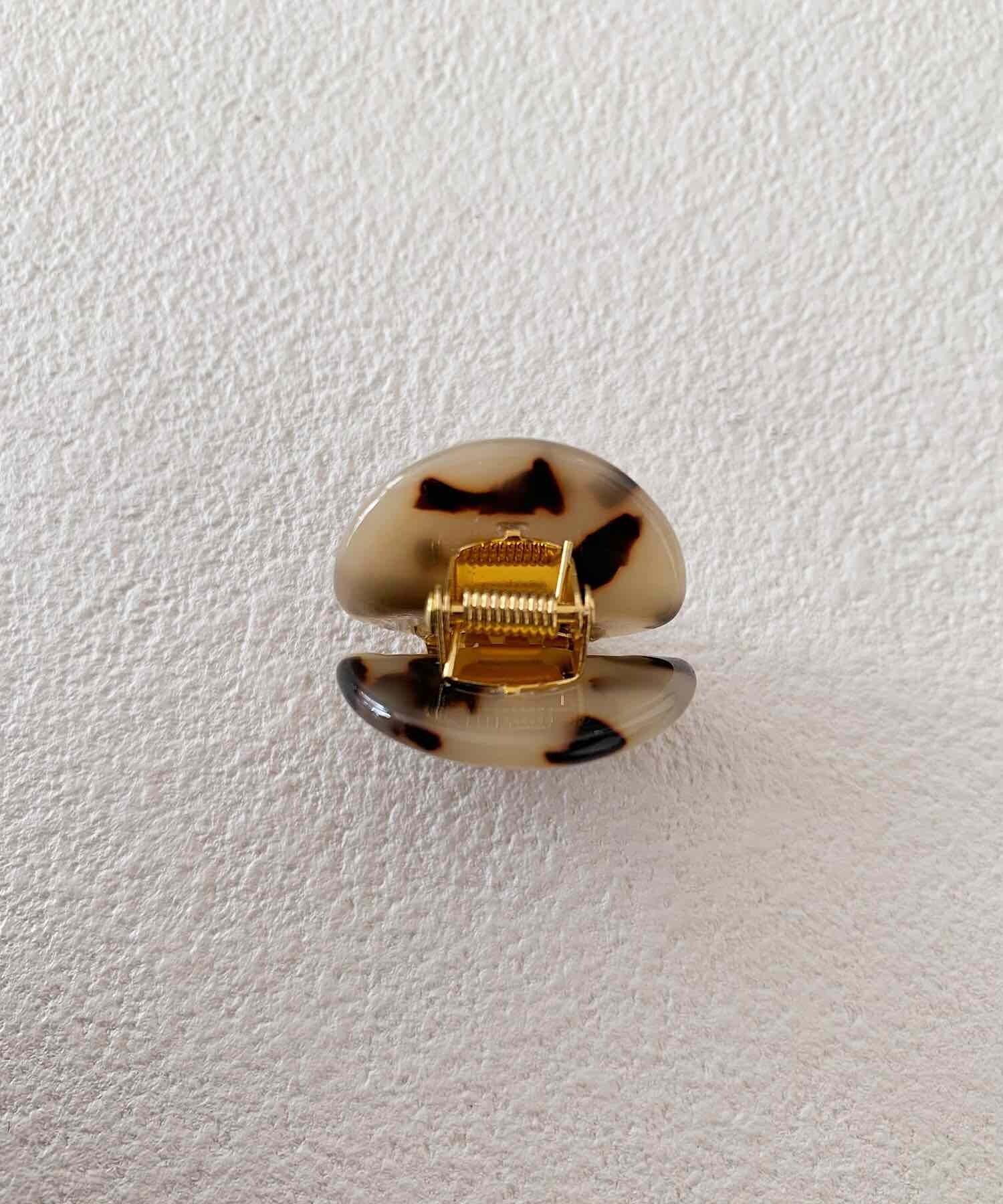 小ぶりだけどきちんと留まるラウンド型のヘアクリップ。