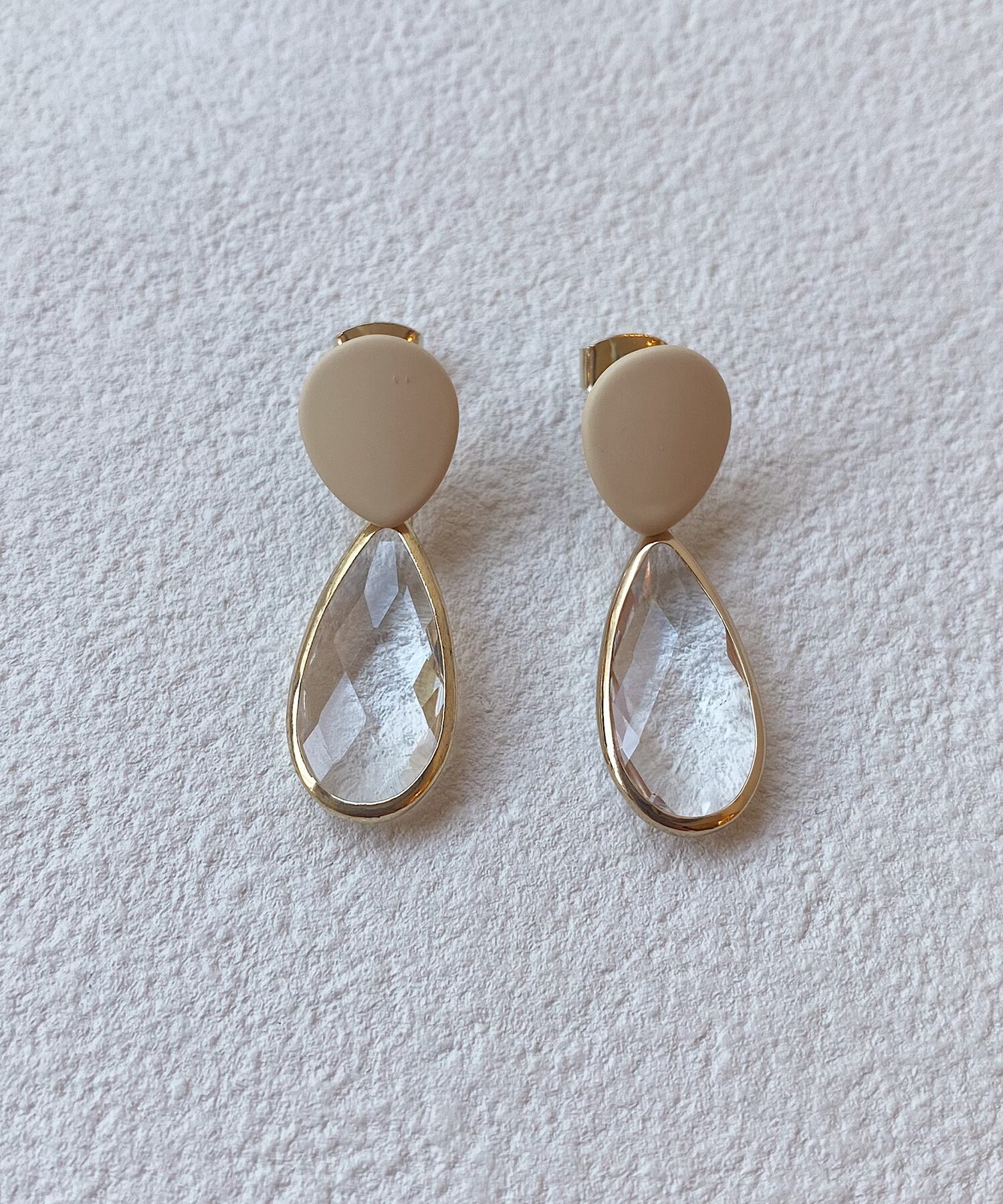 立体感のあるしずく型のクリアストーンがアクセントのピアス。