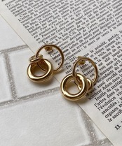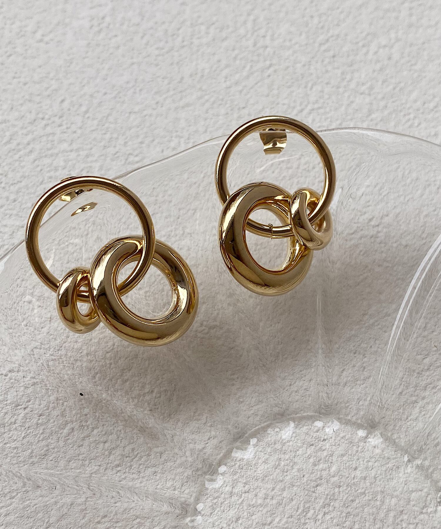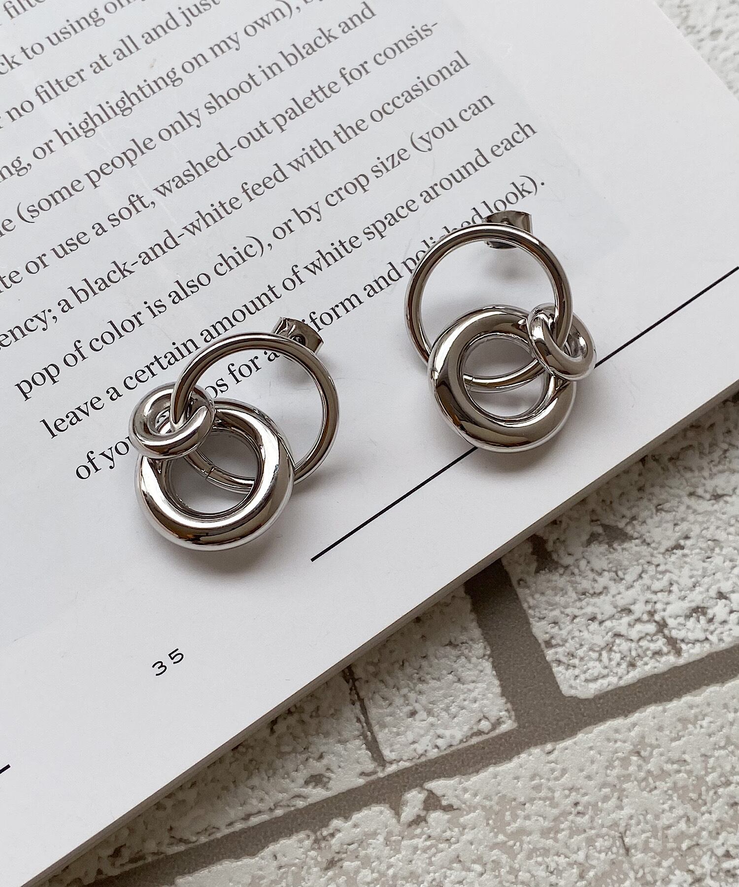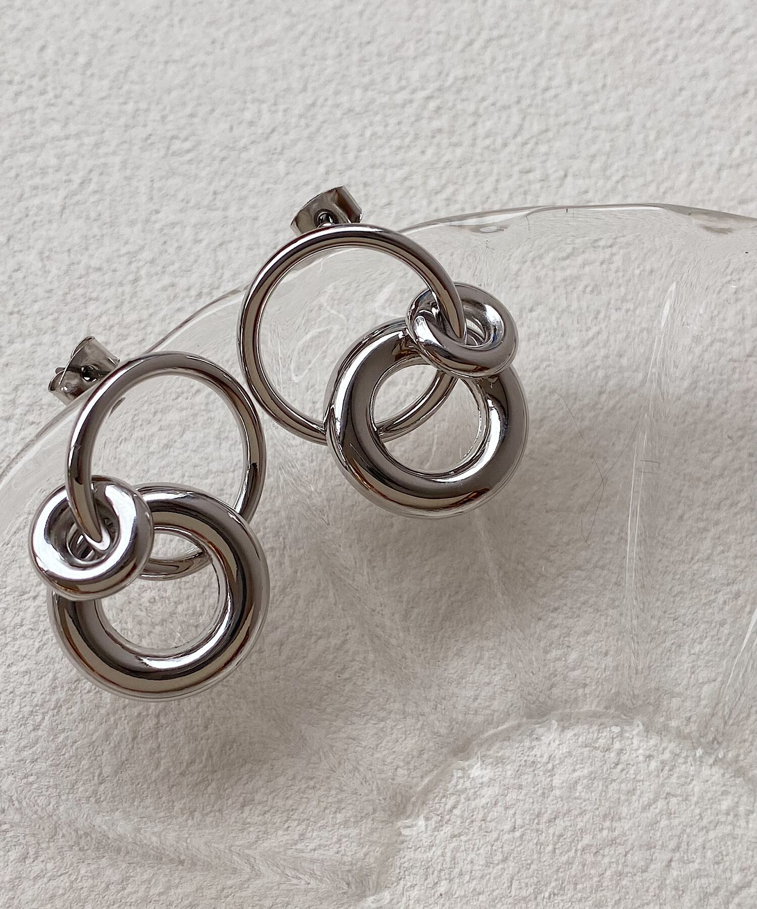 ボリューム感の違う3つのフープを組み合わせたメタルピアス。