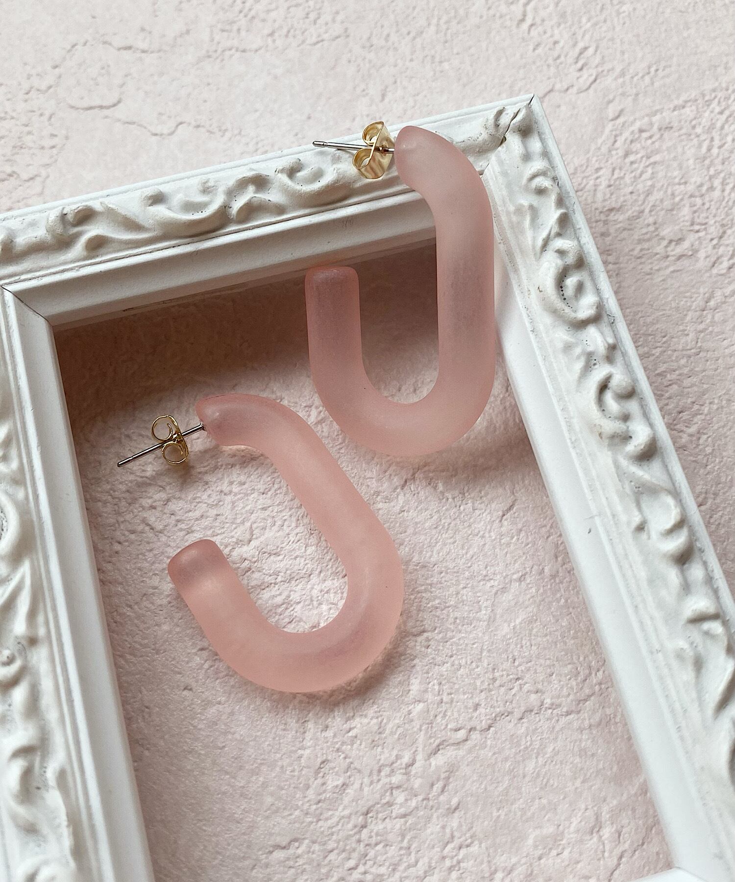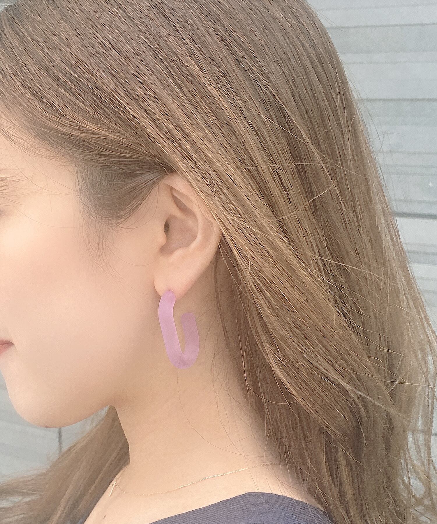 パステルカラーが目を惹くフープピアス。