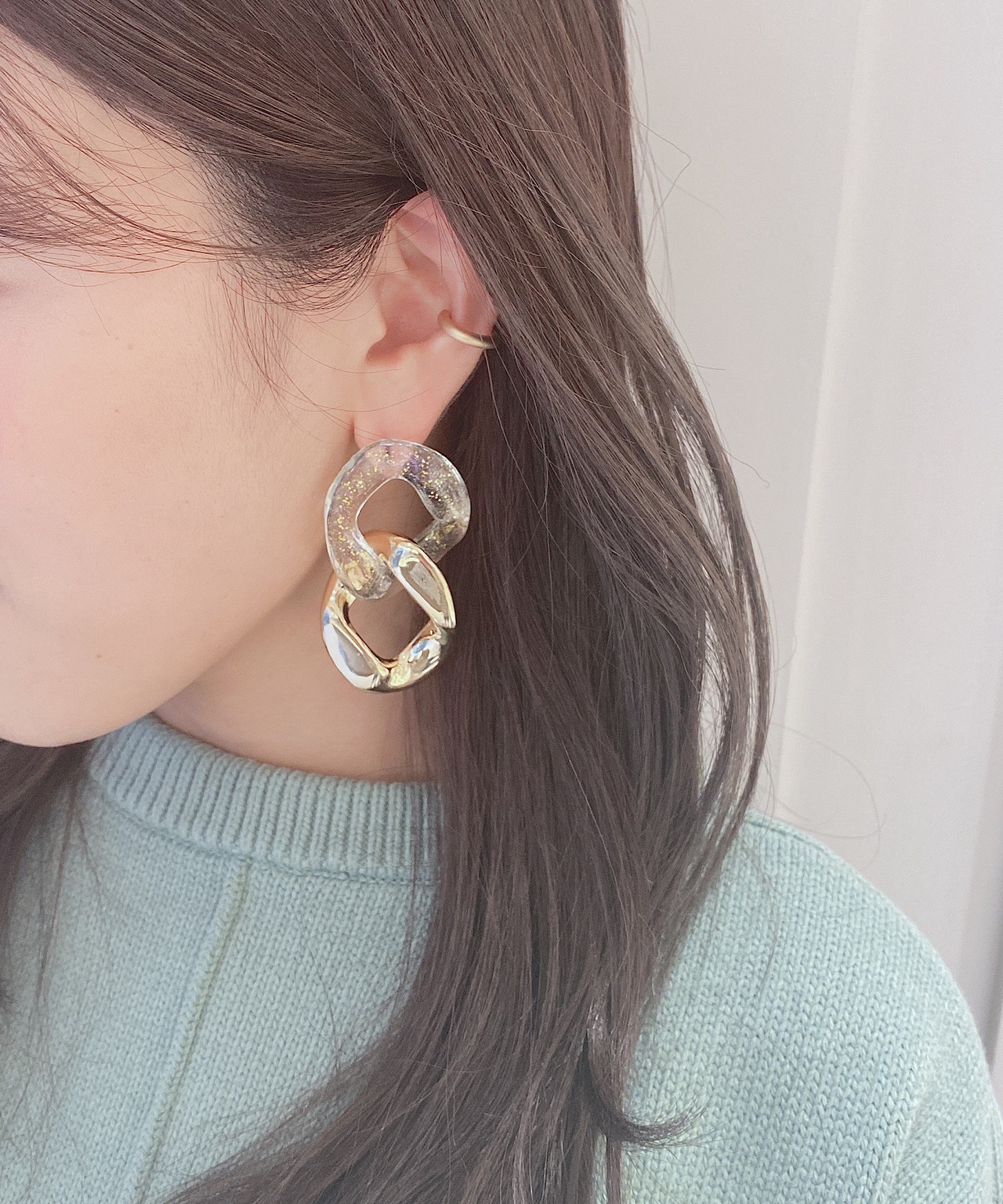 金箔デザインのクリアパーツとメタルパーツを組み合わせたフープピアス。