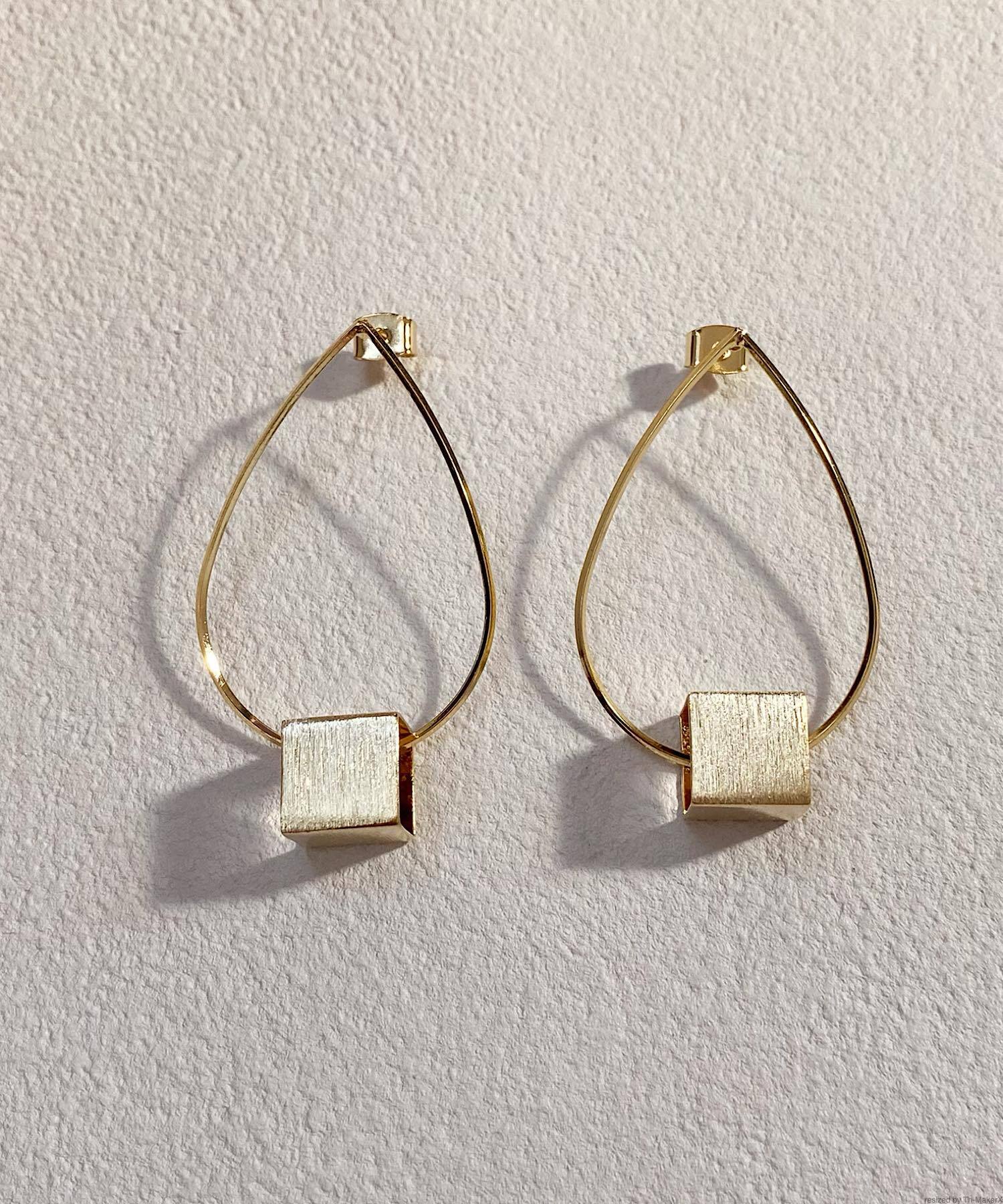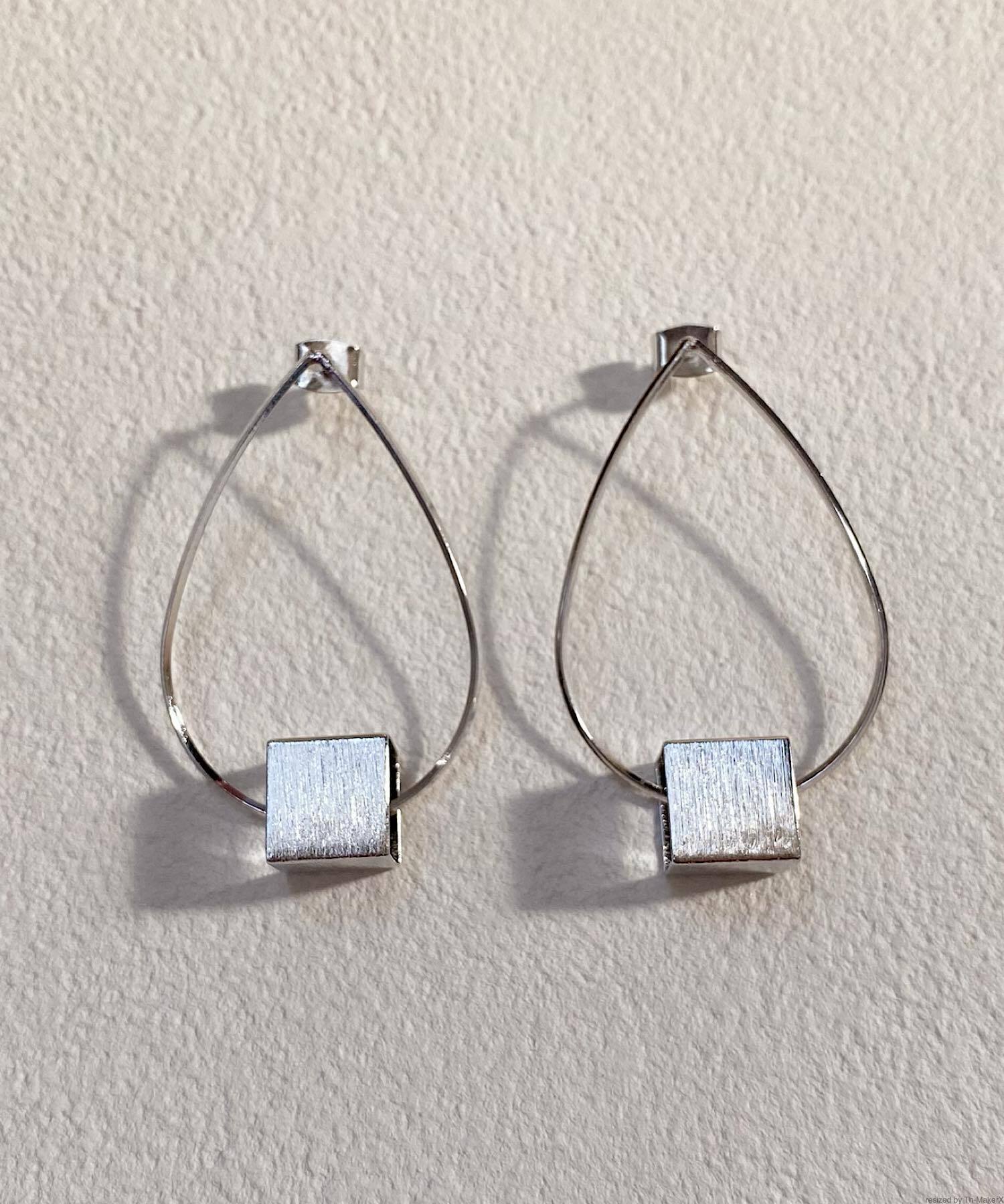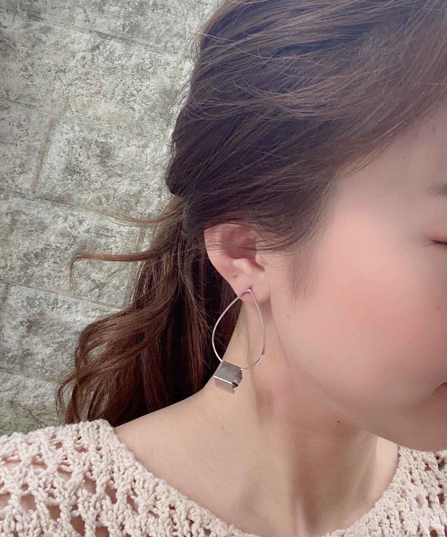 華奢なラインのしずくモチーフにスクエアのアクセントをプラスしたピアス。