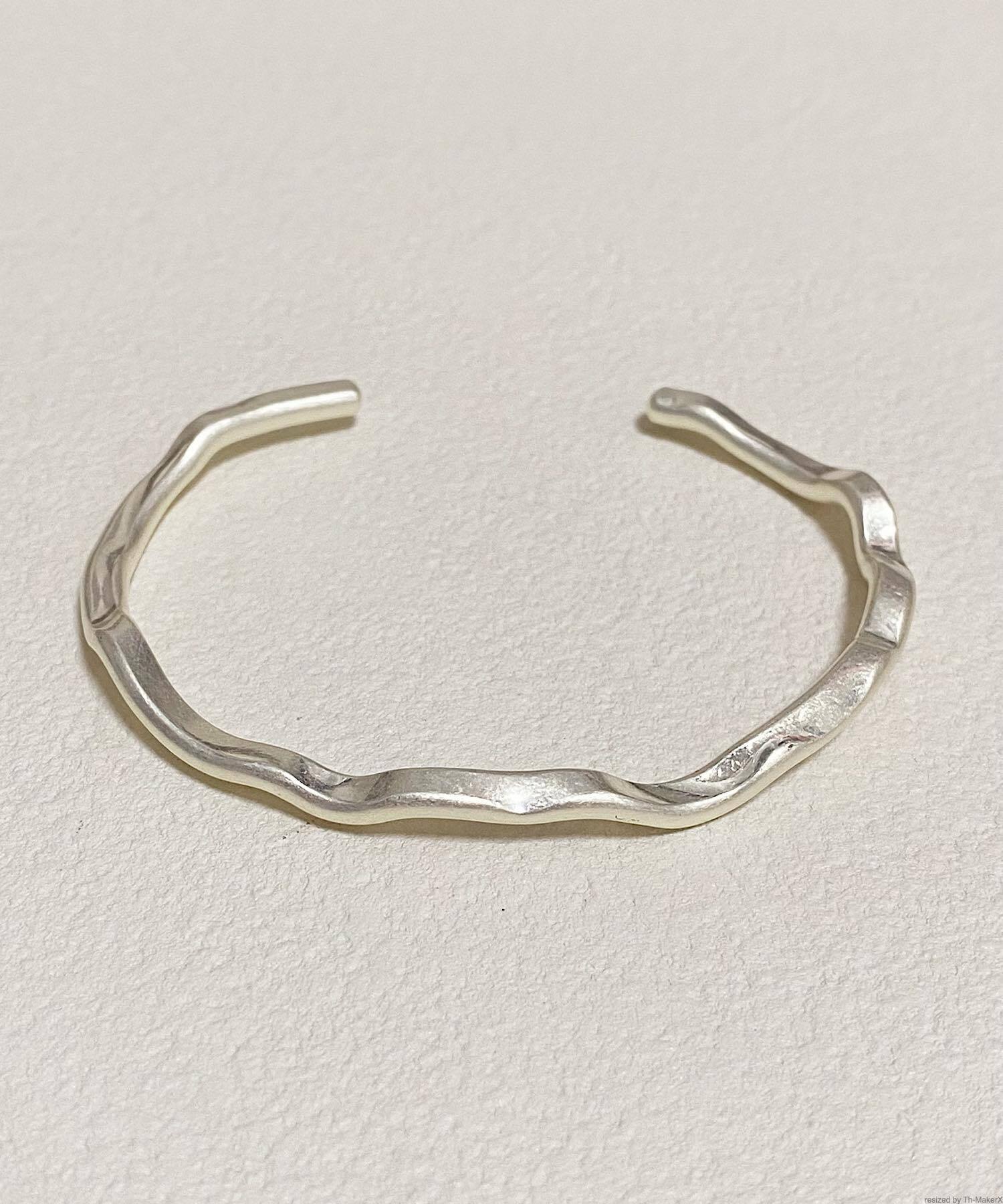 シンプルなデザインとシルバーの光沢感がアクセントのメタルのウェーブバングル。