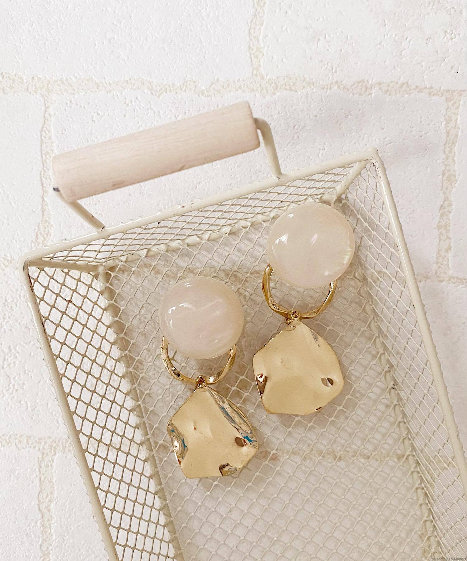 大ぶりのパーツが揺れることで、お顔まわりを明るくみせてくれます。