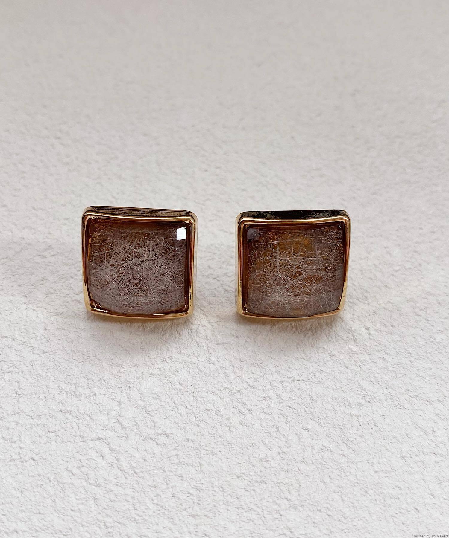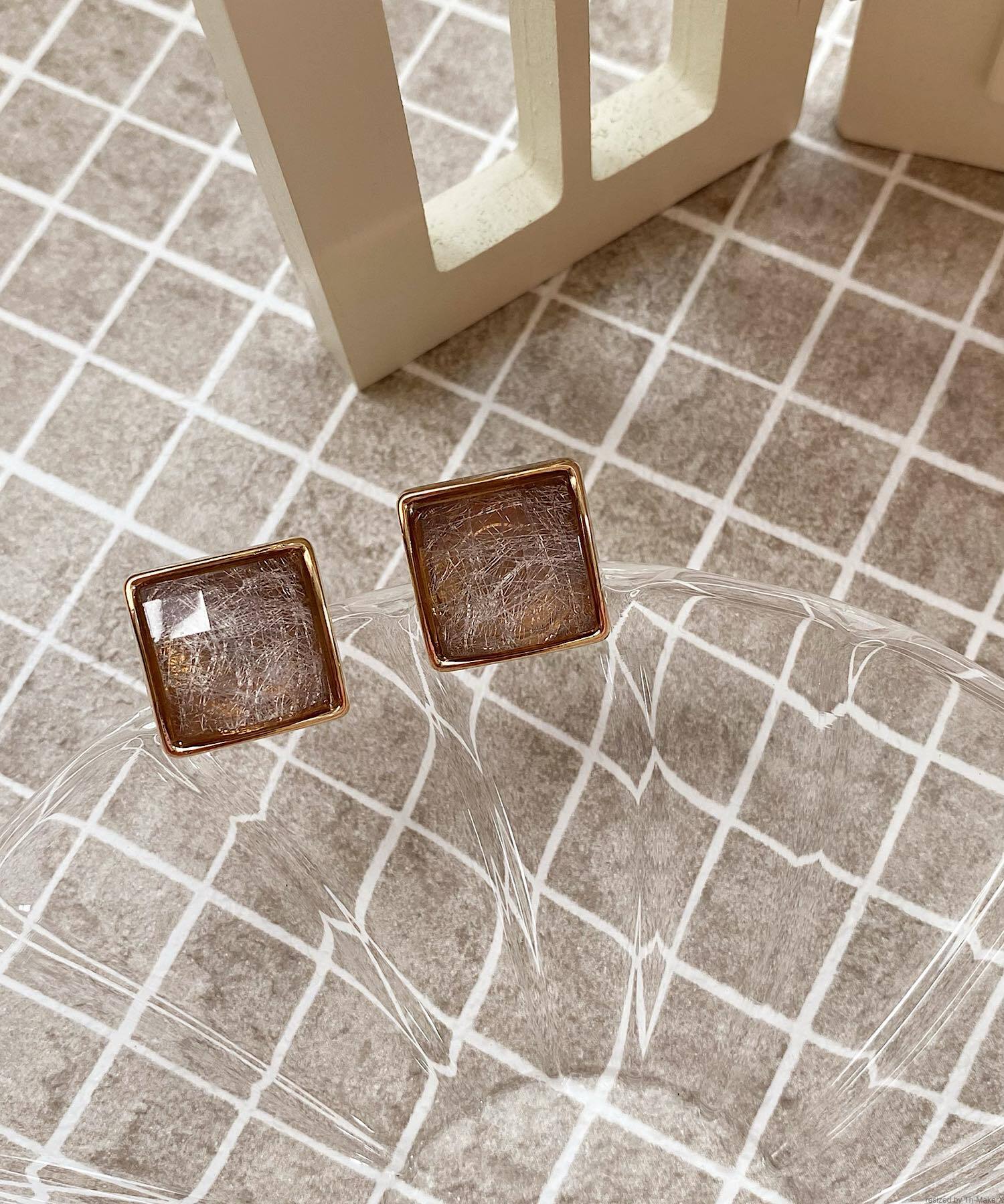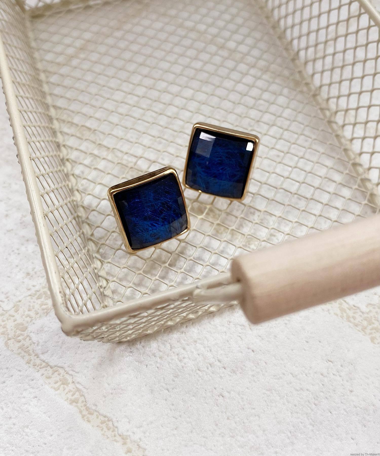 透明感のあるストーンに多面カットを施したスクエアピアス。