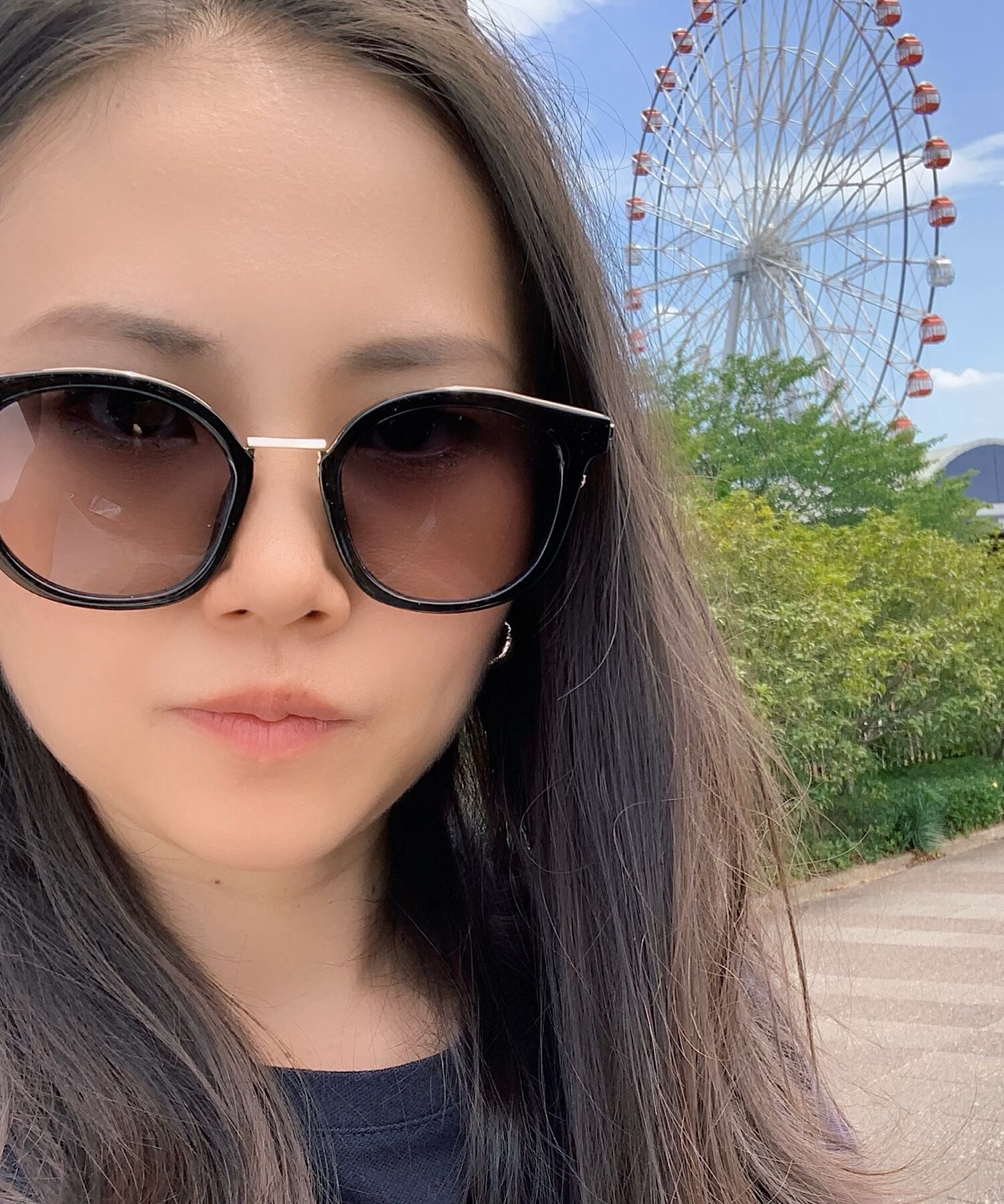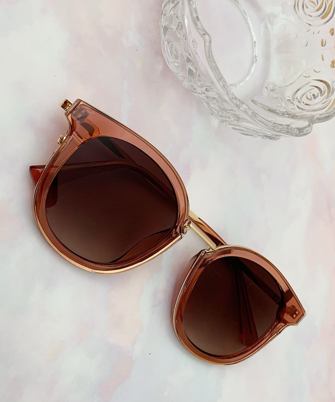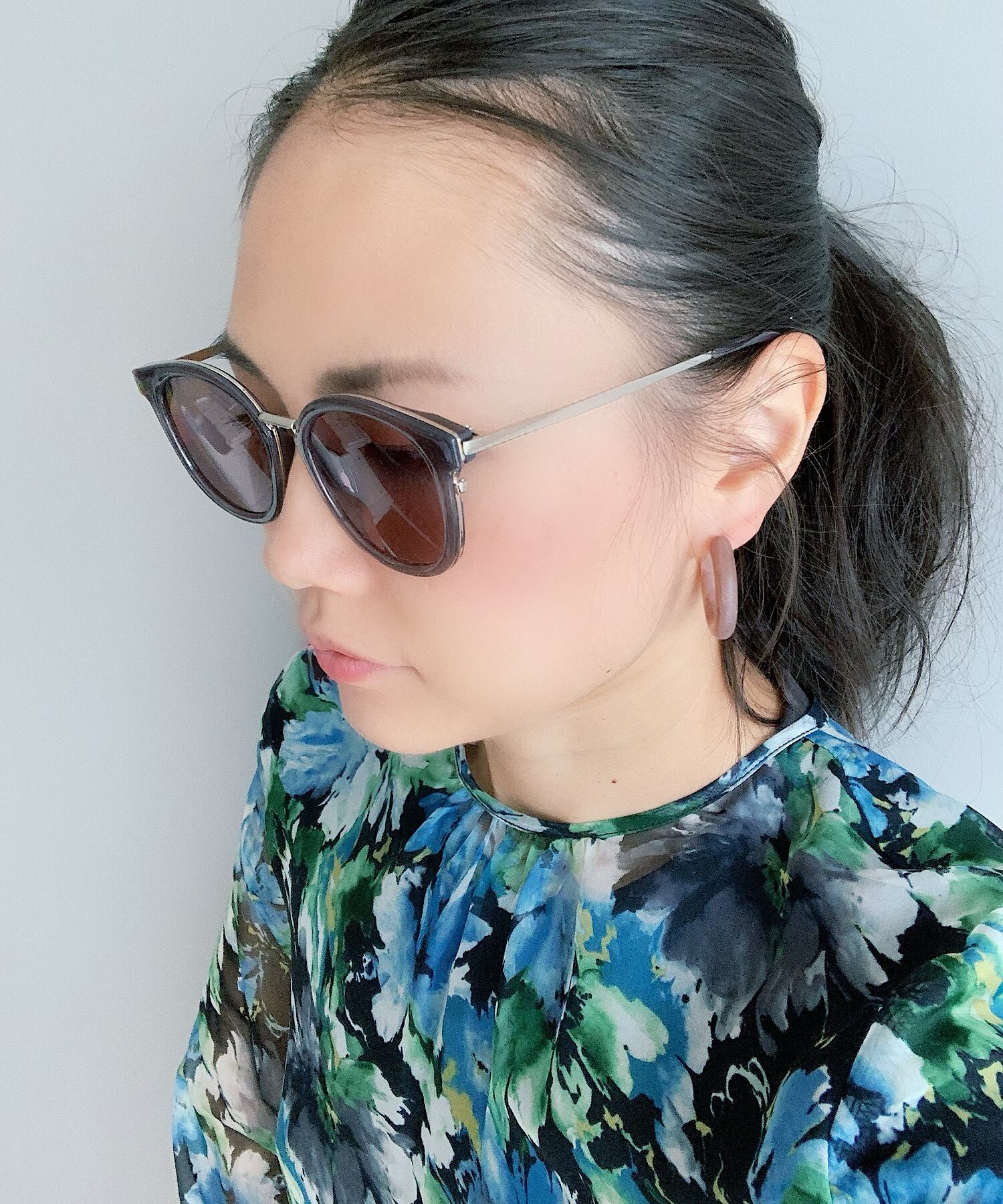 トレンド感のある色味が印象的なカラーフレームサングラス。