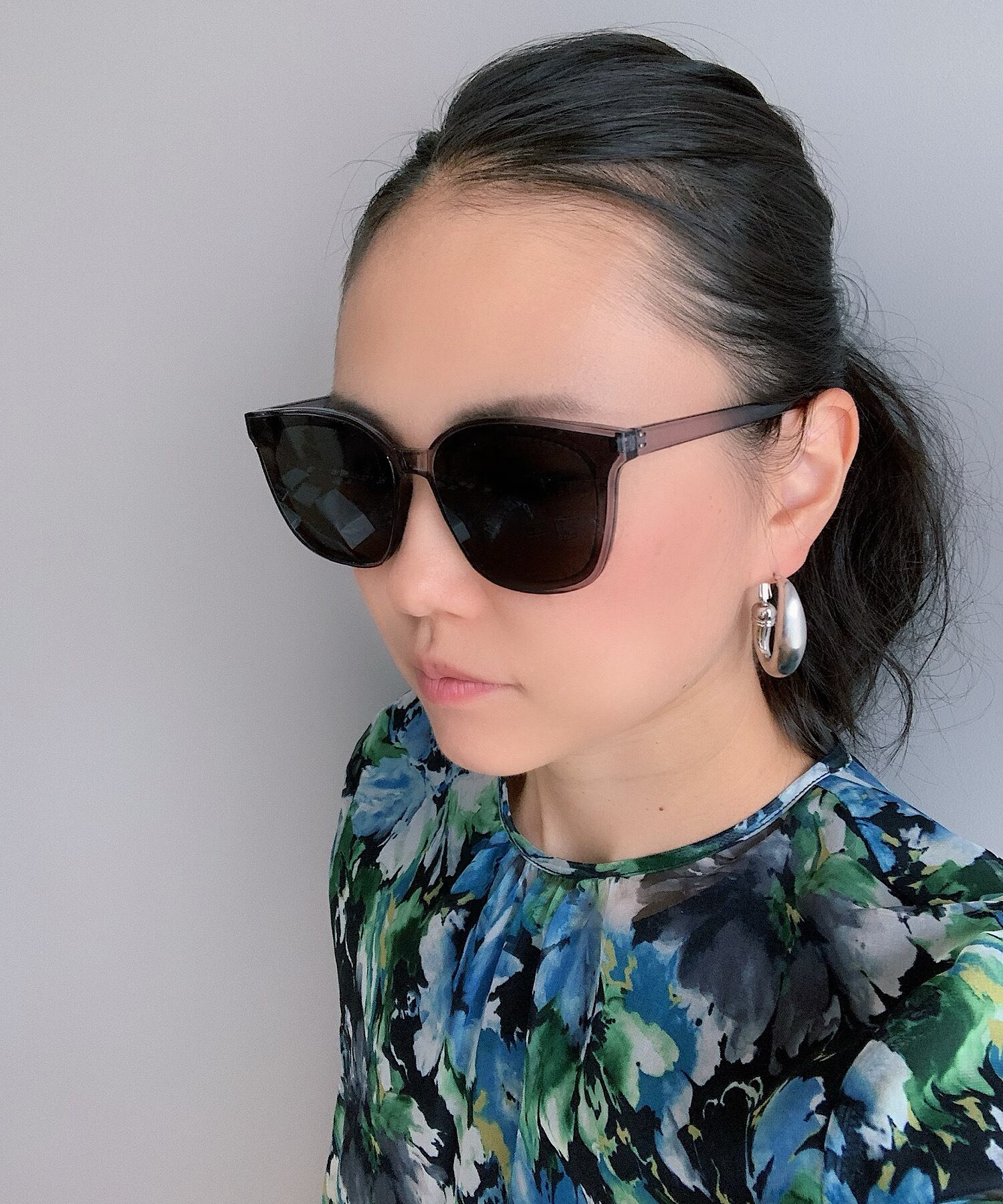 少し大きめのサングラスはお顔を小さく見せたい時におすすめです。