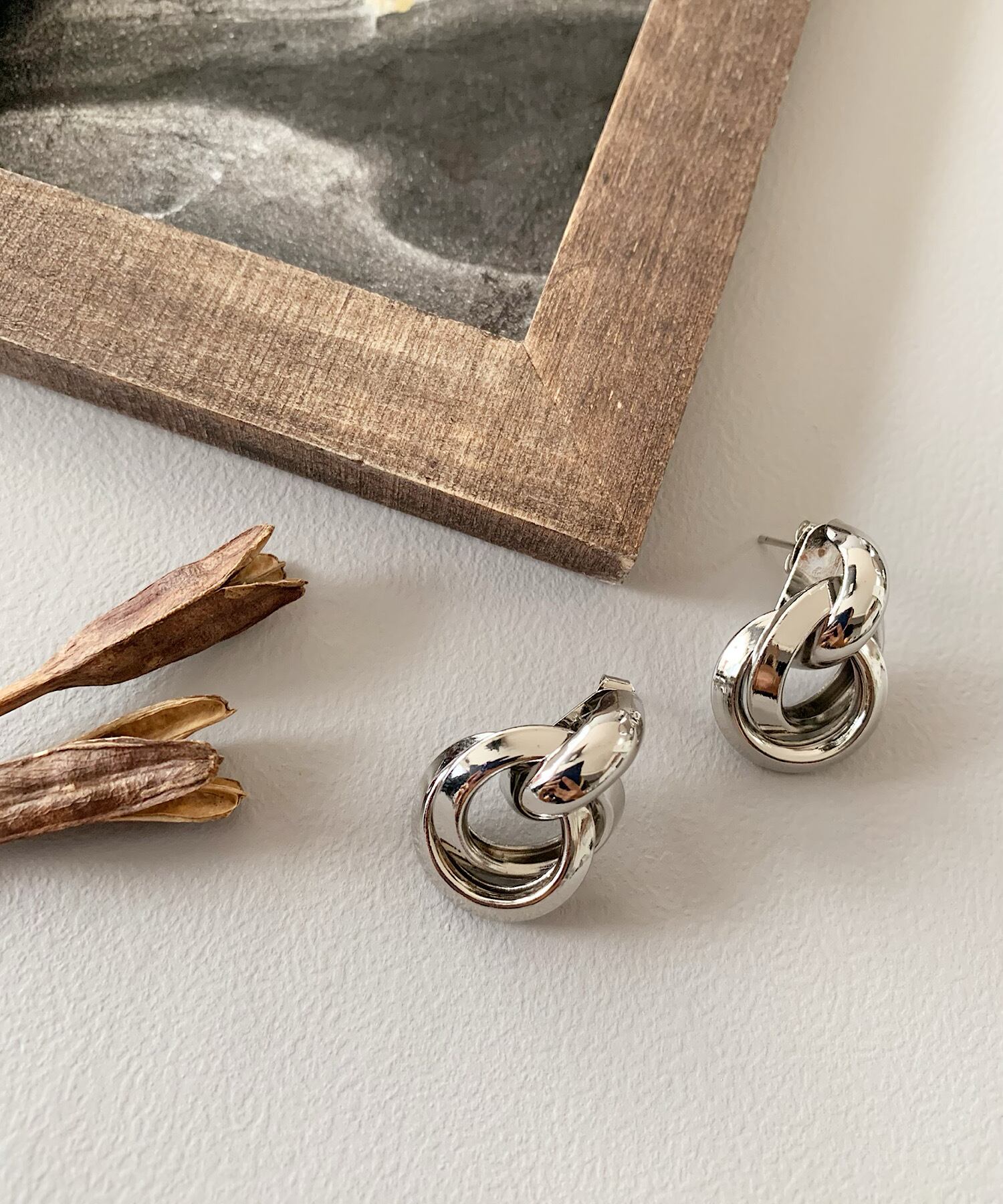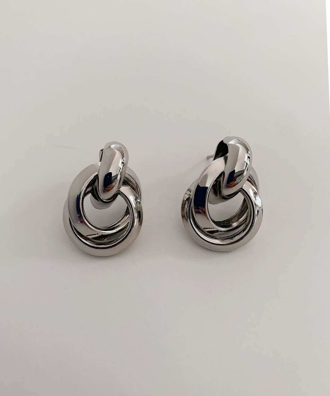 2連の太めのメタルパーツが絡み合ったデザインのフープピアス。