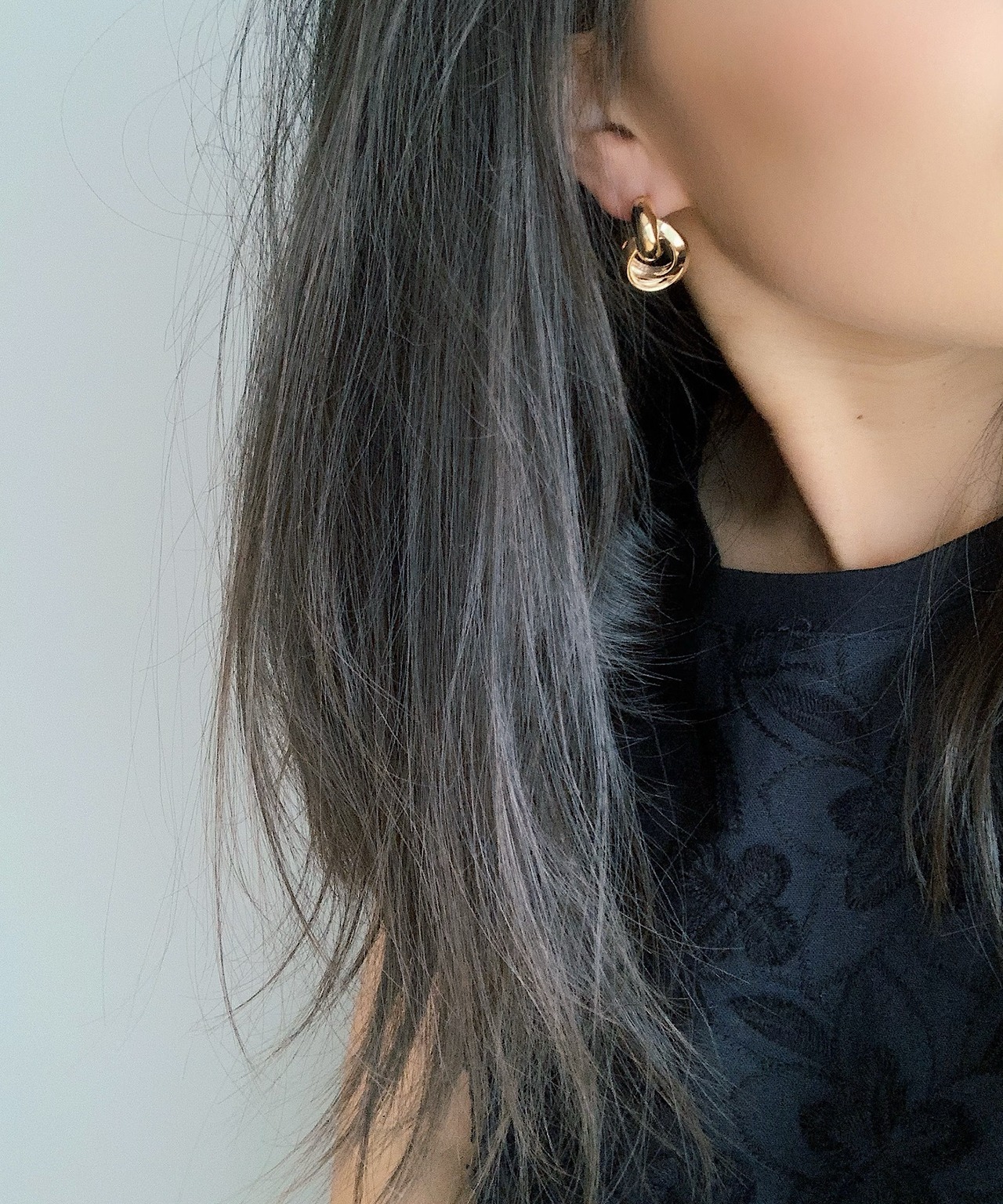 小ぶりながらもメタルが光を反射して、お顔まわりを明るくみせてくれます。