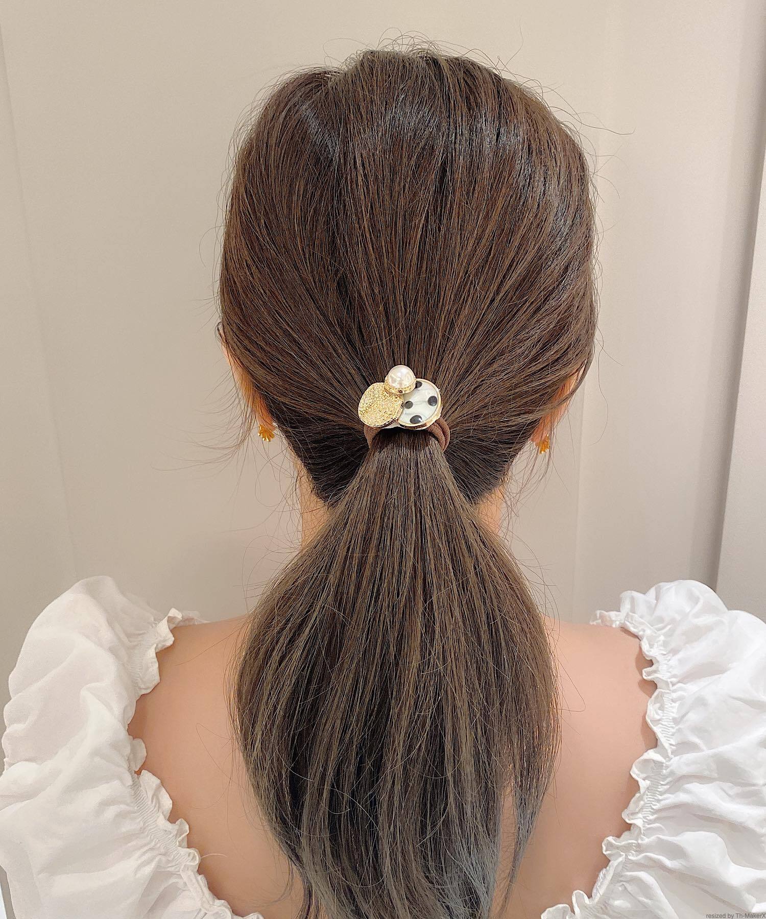 ヘアカラーに合わせやすいブラウンのゴムを使用しているので、明るめの髪色にも合わせやすいアイテムです。