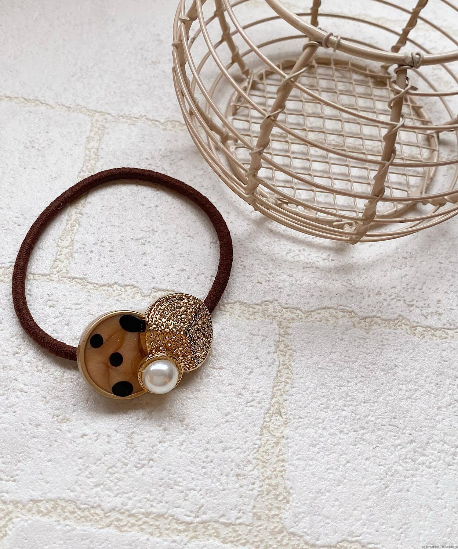 ダルメシアンデザインのパーツとパールがアクセントのヘアゴム。