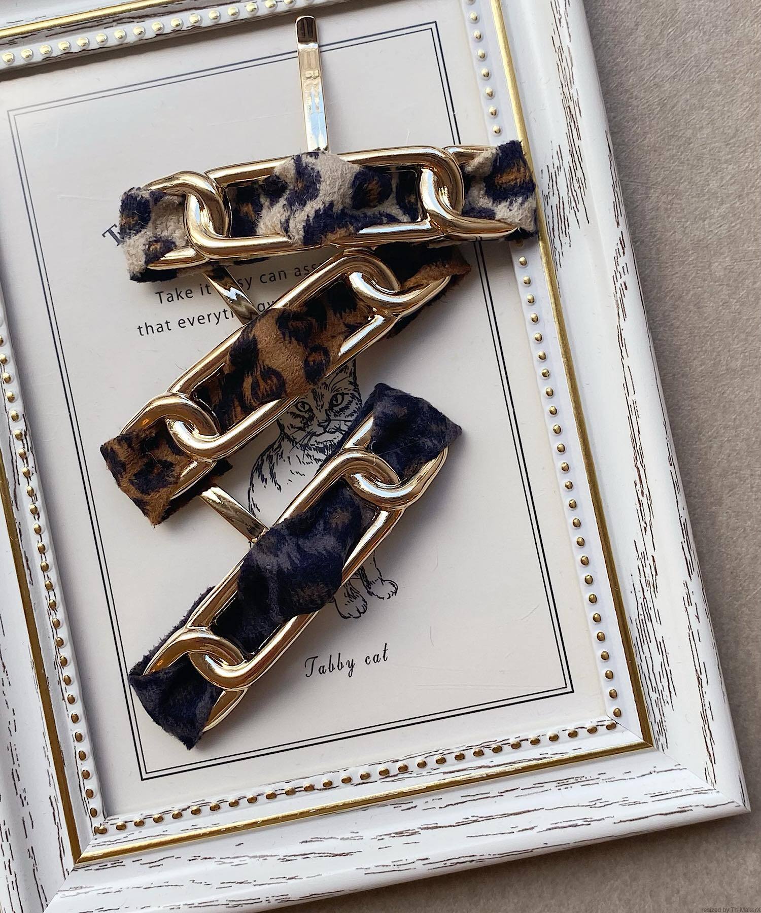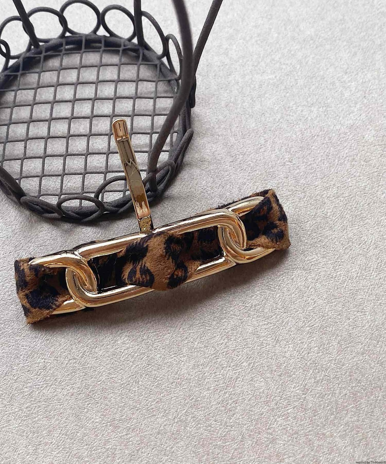 チェーンをモチーフにしたメタルにレオパードのアクセントをプラスしたポニーフック。