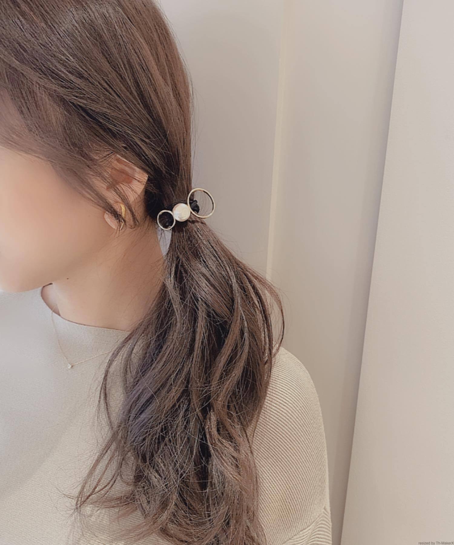 サークルのメタルパーツとパールを組み合わせたヘアゴム。