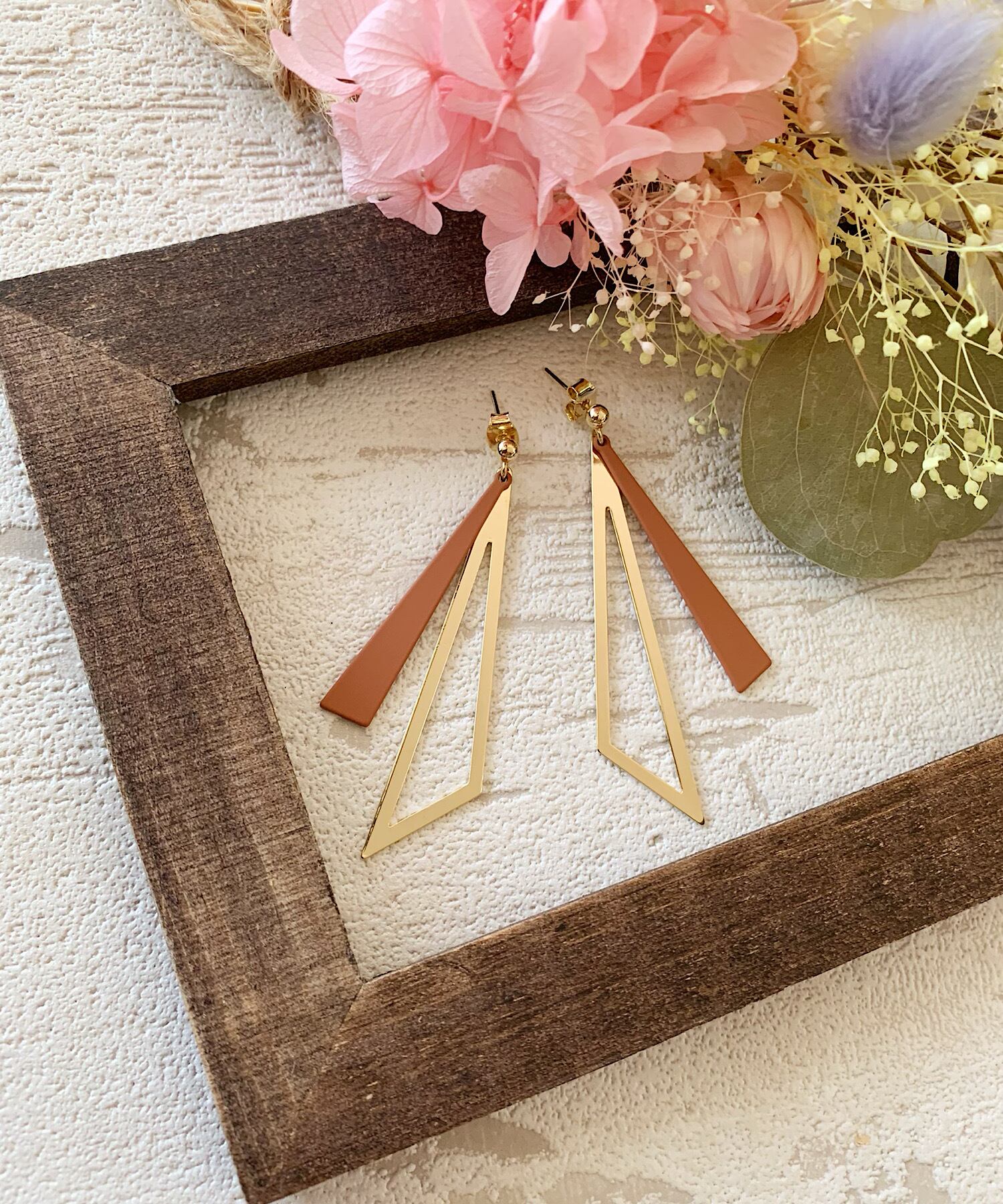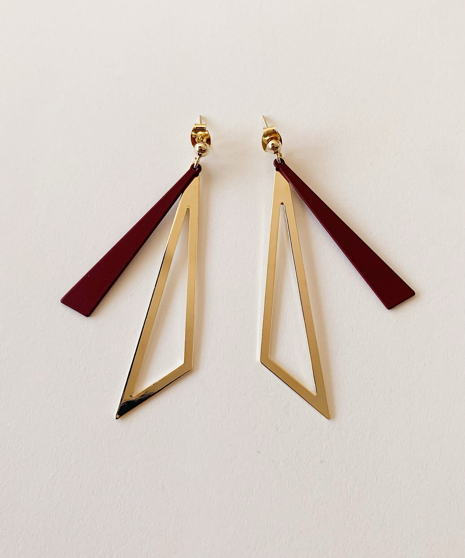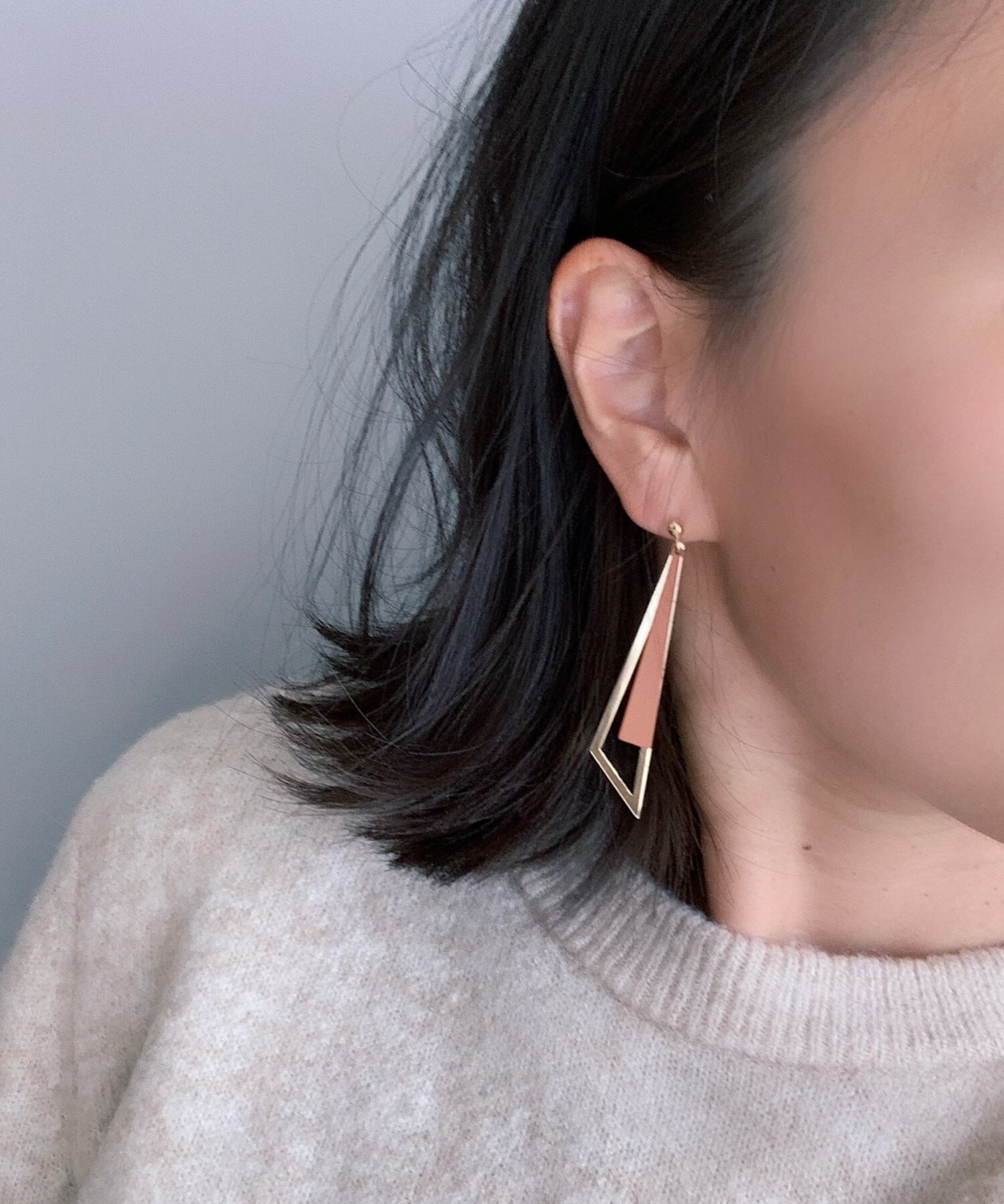 トライアングルシェイプのシャープな揺れるモチーフが上品なピアス。
