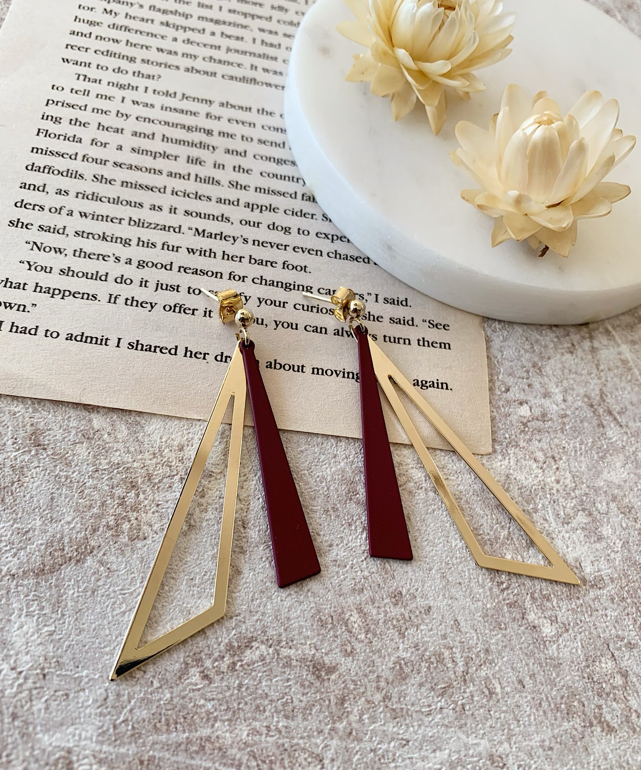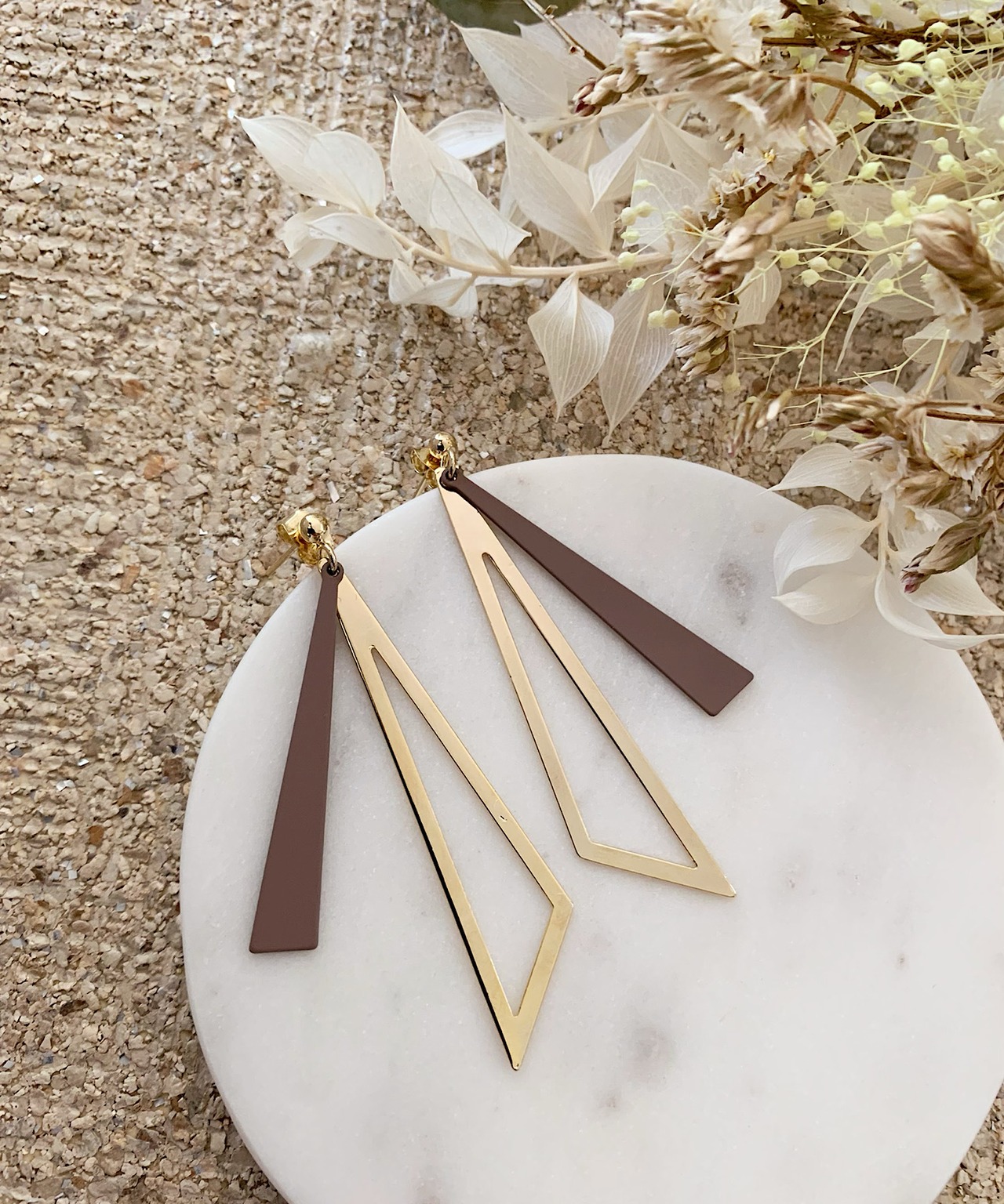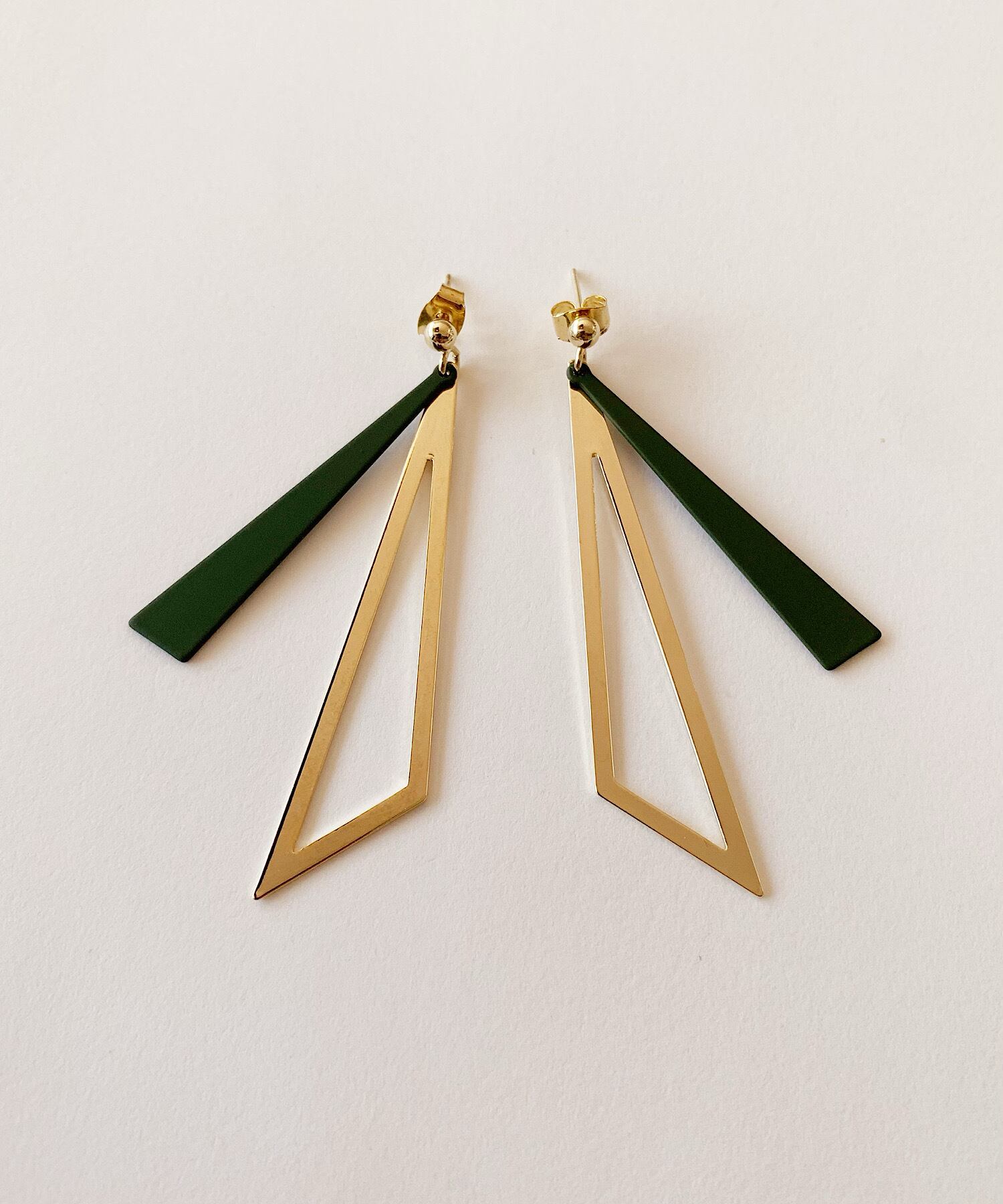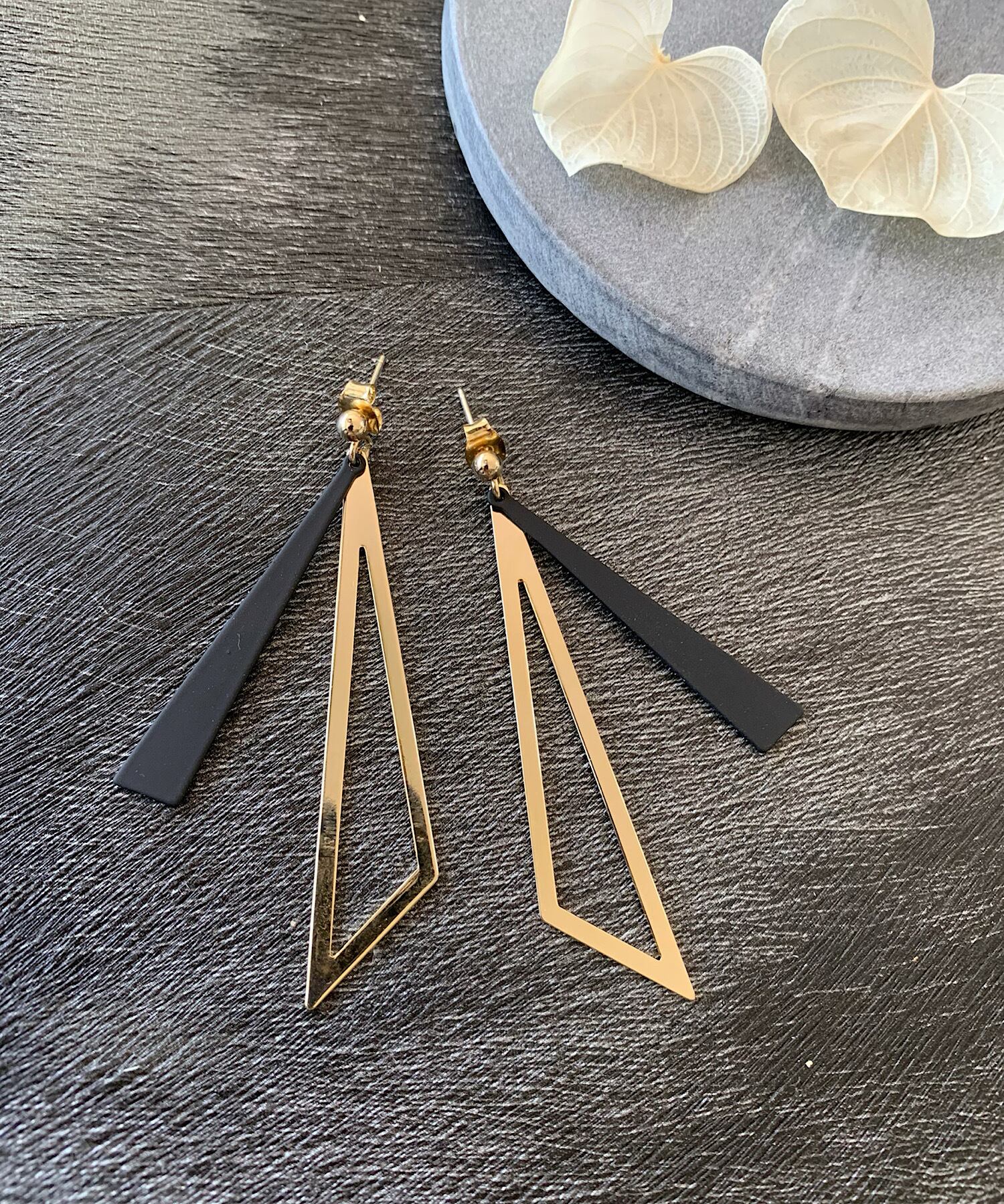 トライアングルシェイプのシャープな揺れるモチーフが上品なピアス。