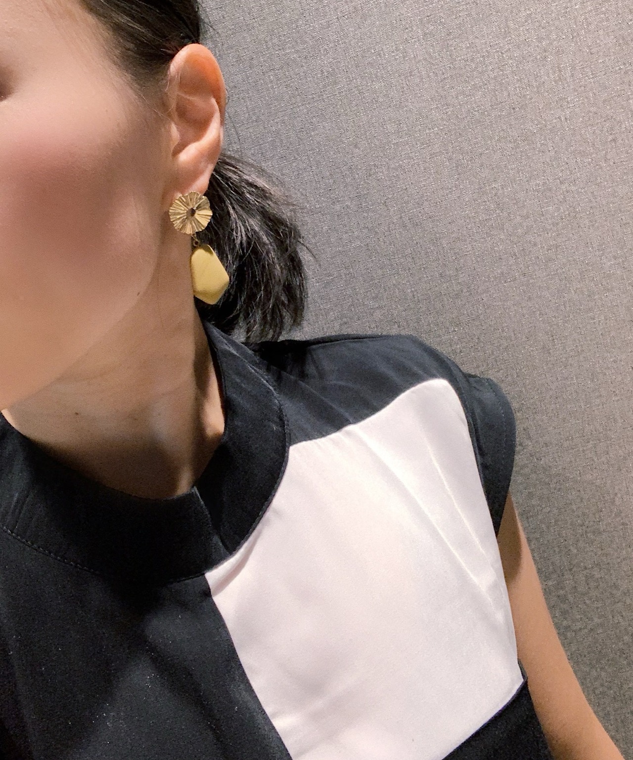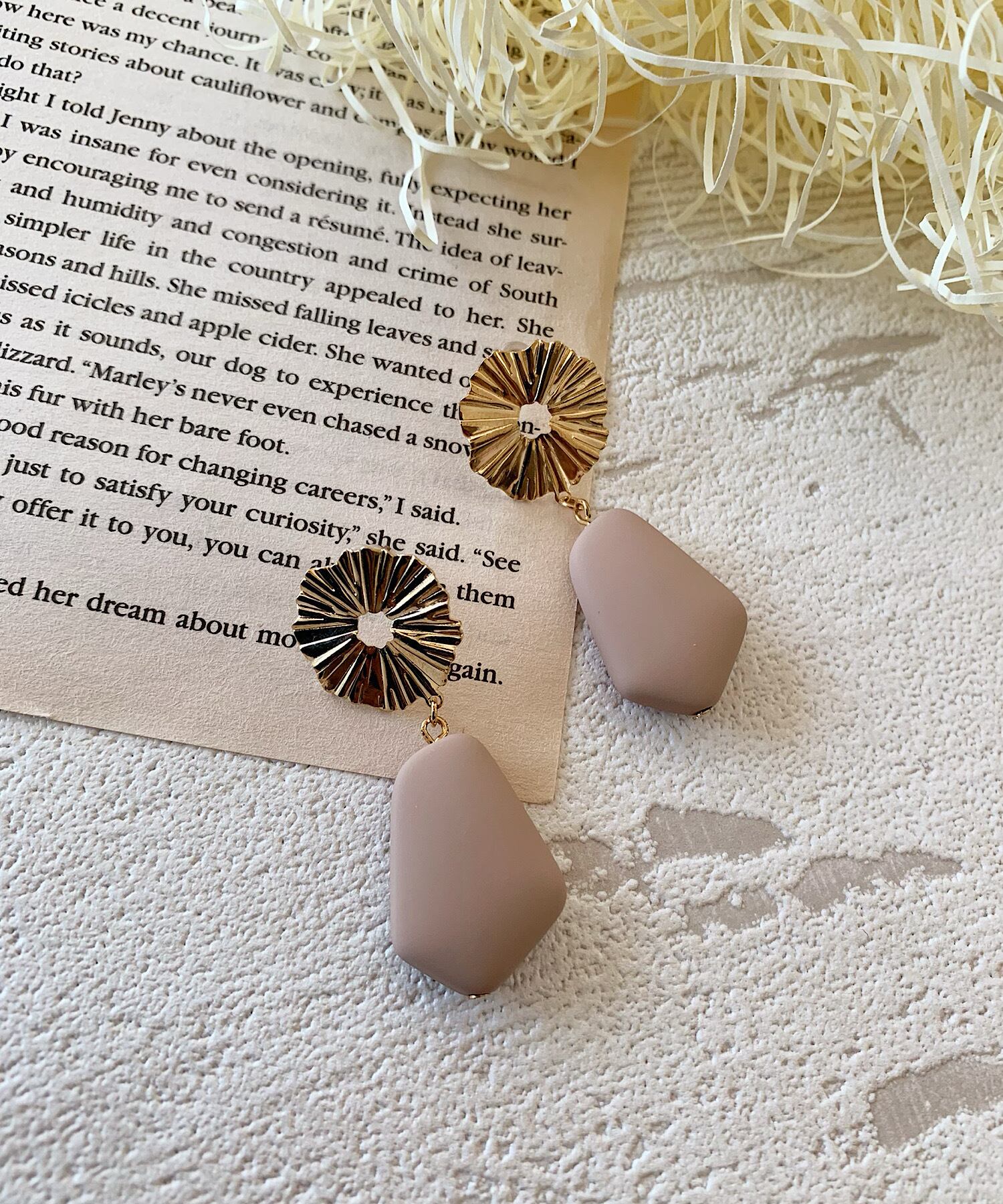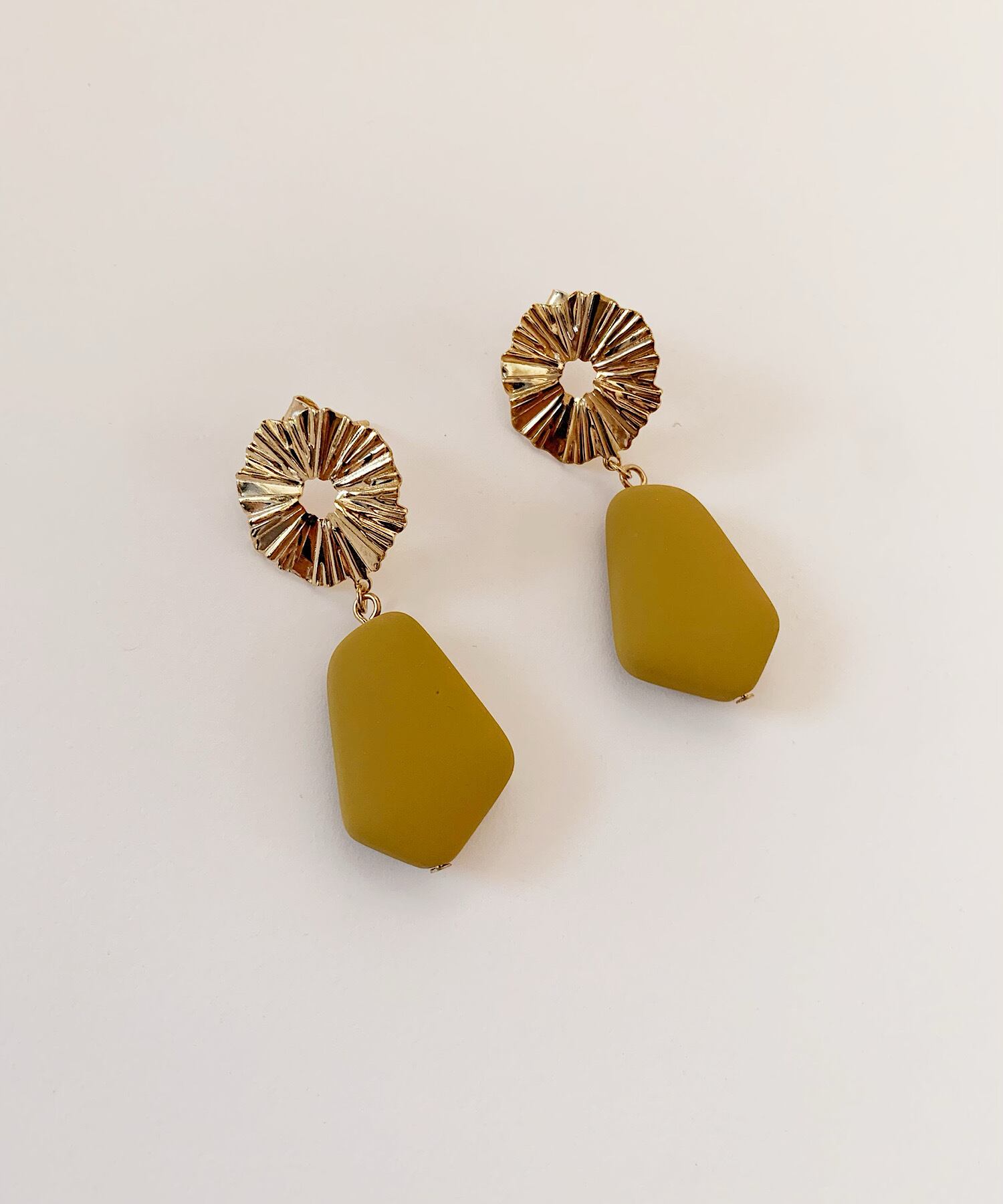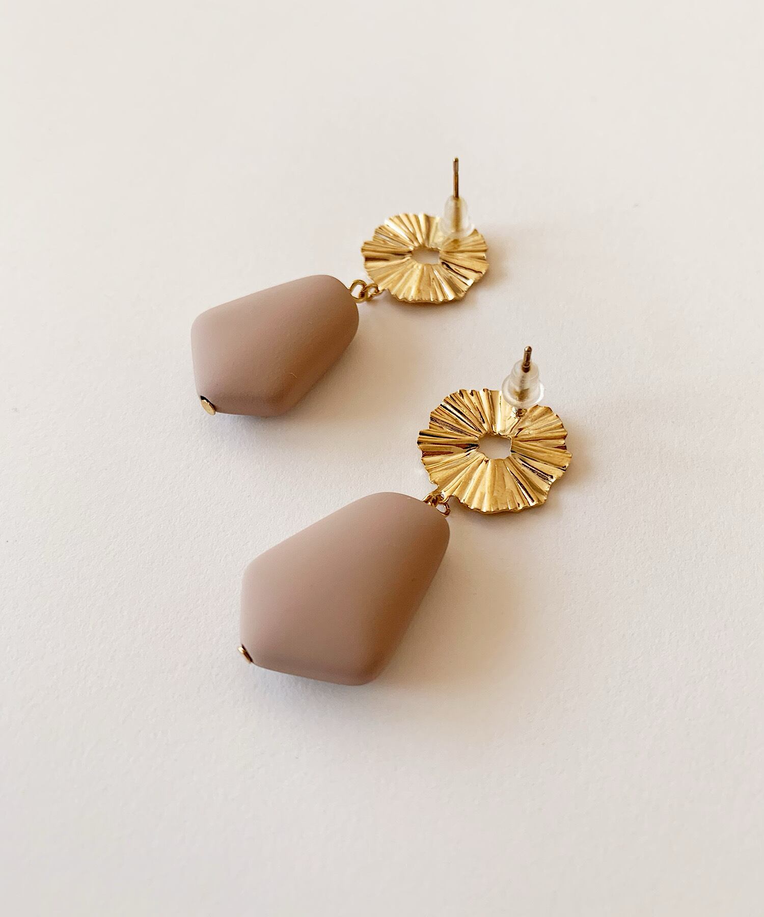 綺麗なダスティーカラーのストーンが揺れるピアス。