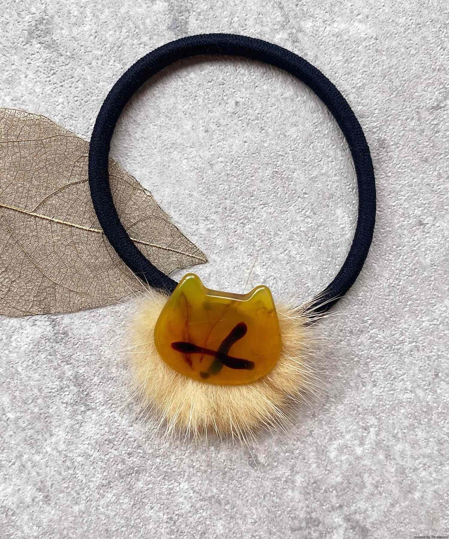 キャットモチーフと同系色のファーを組み合わせたヘアゴム。