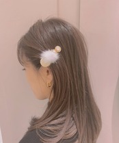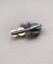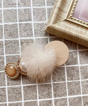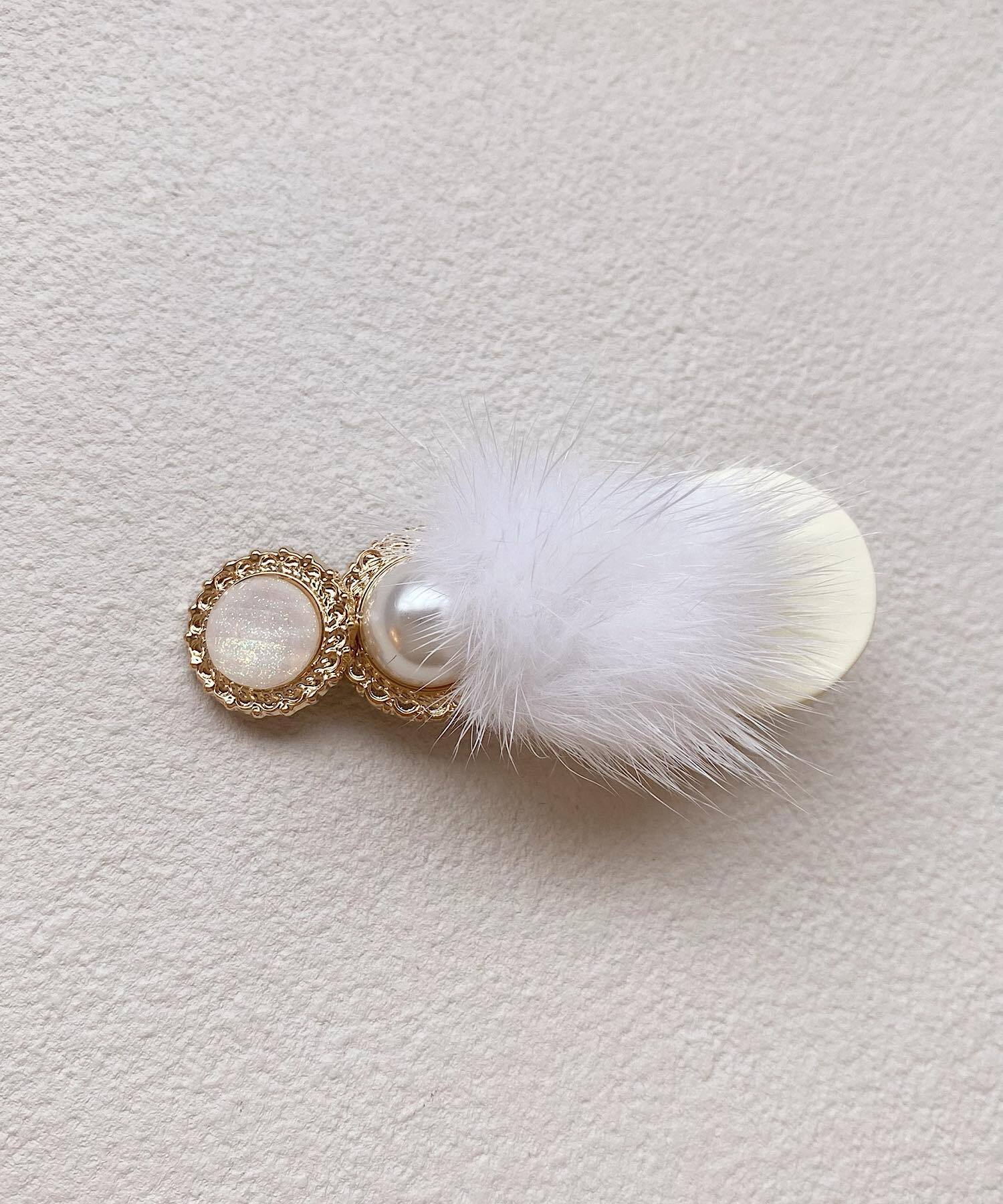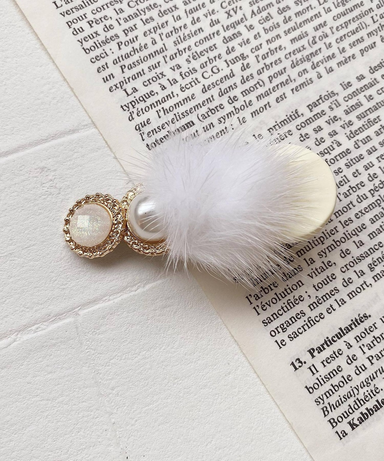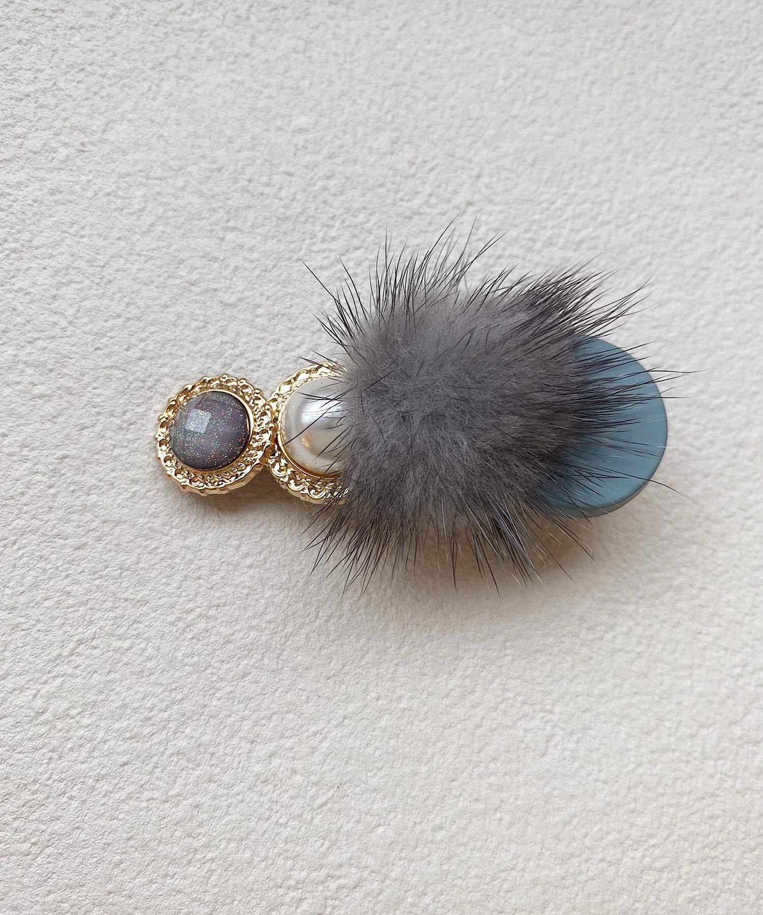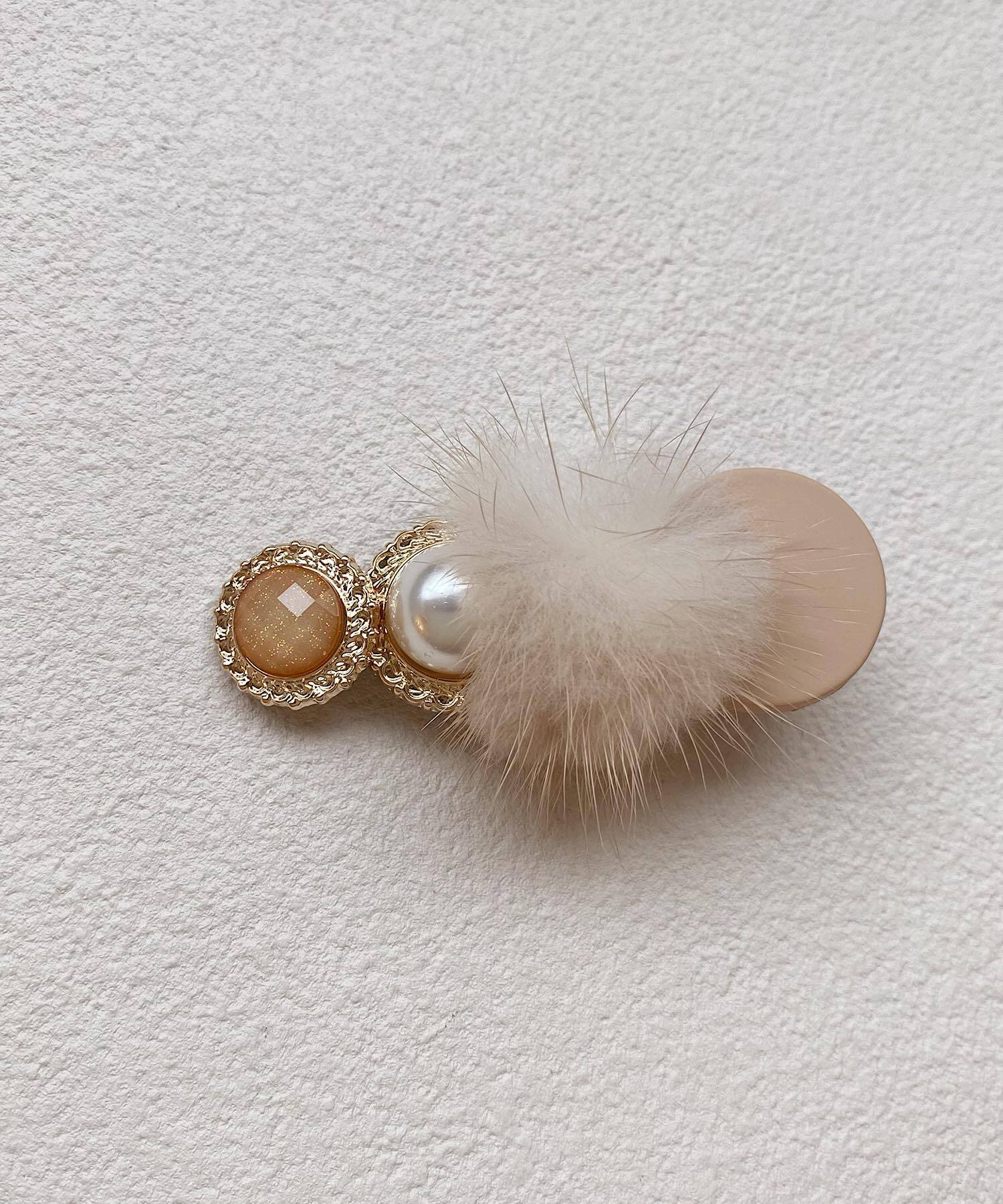 ファー素材にアンティーク調のパールやストーン、ウッドパーツを組み合わせたヘアクリップ。