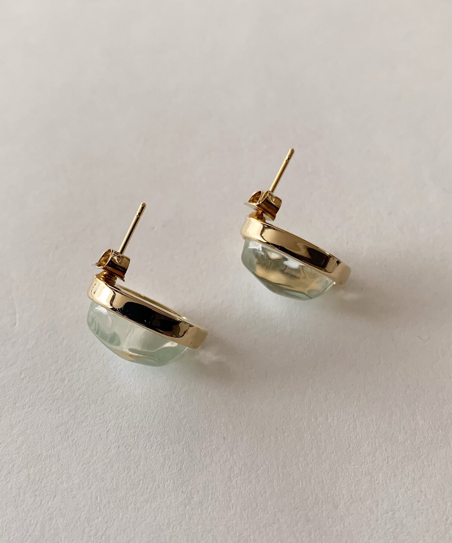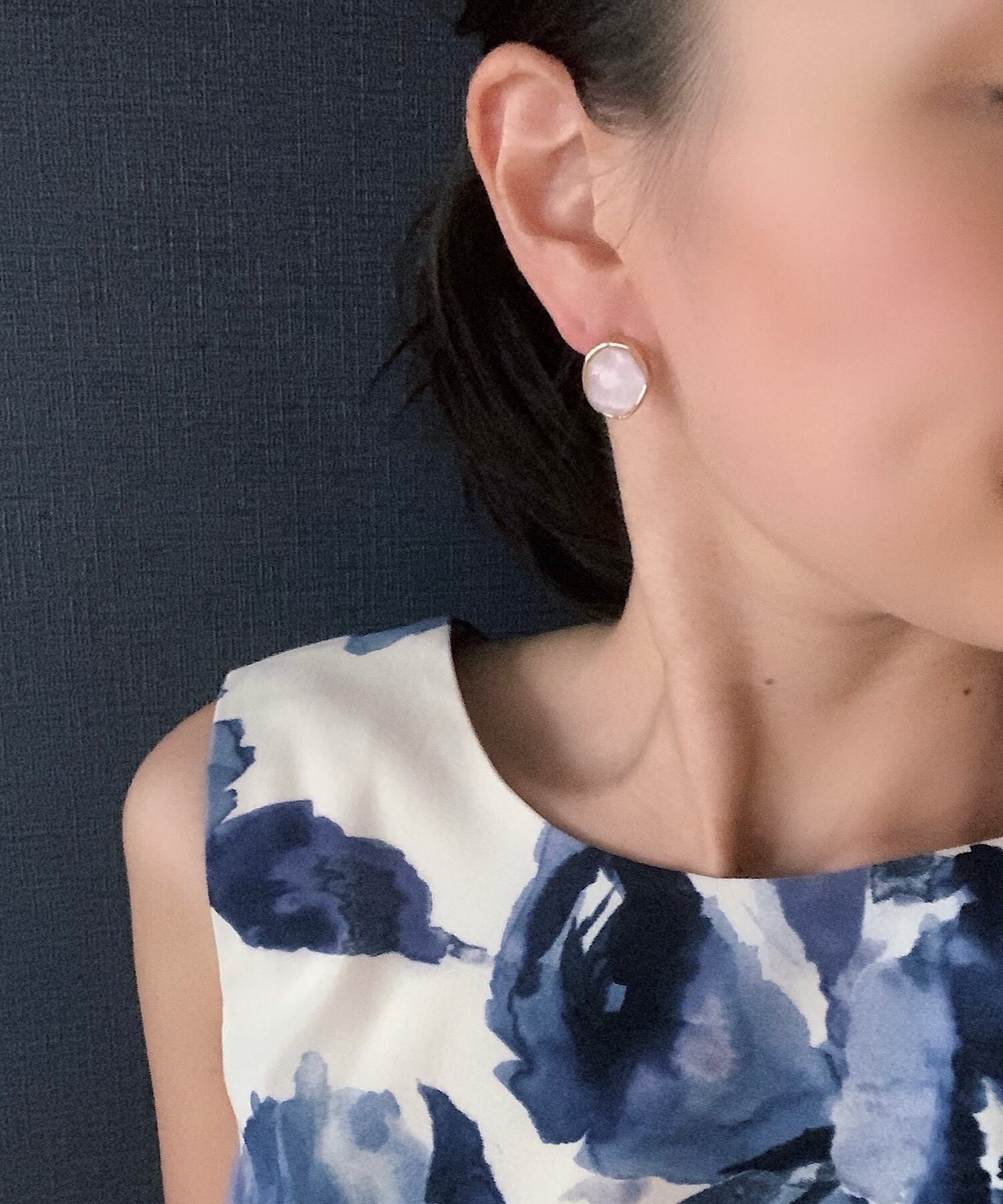 宝石のように綺麗な透明感のストーンが印象的なピアス。