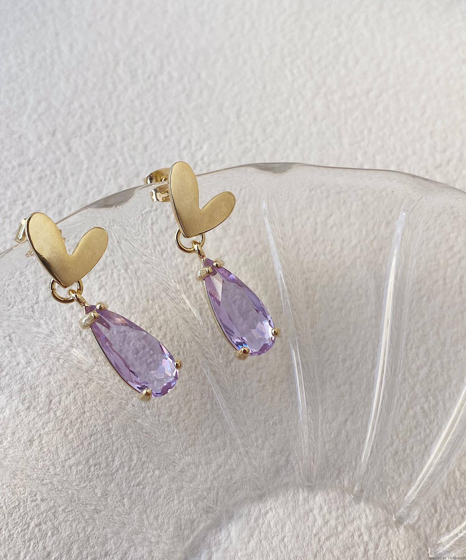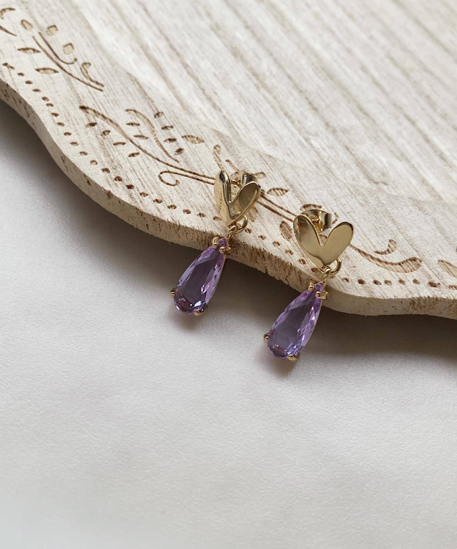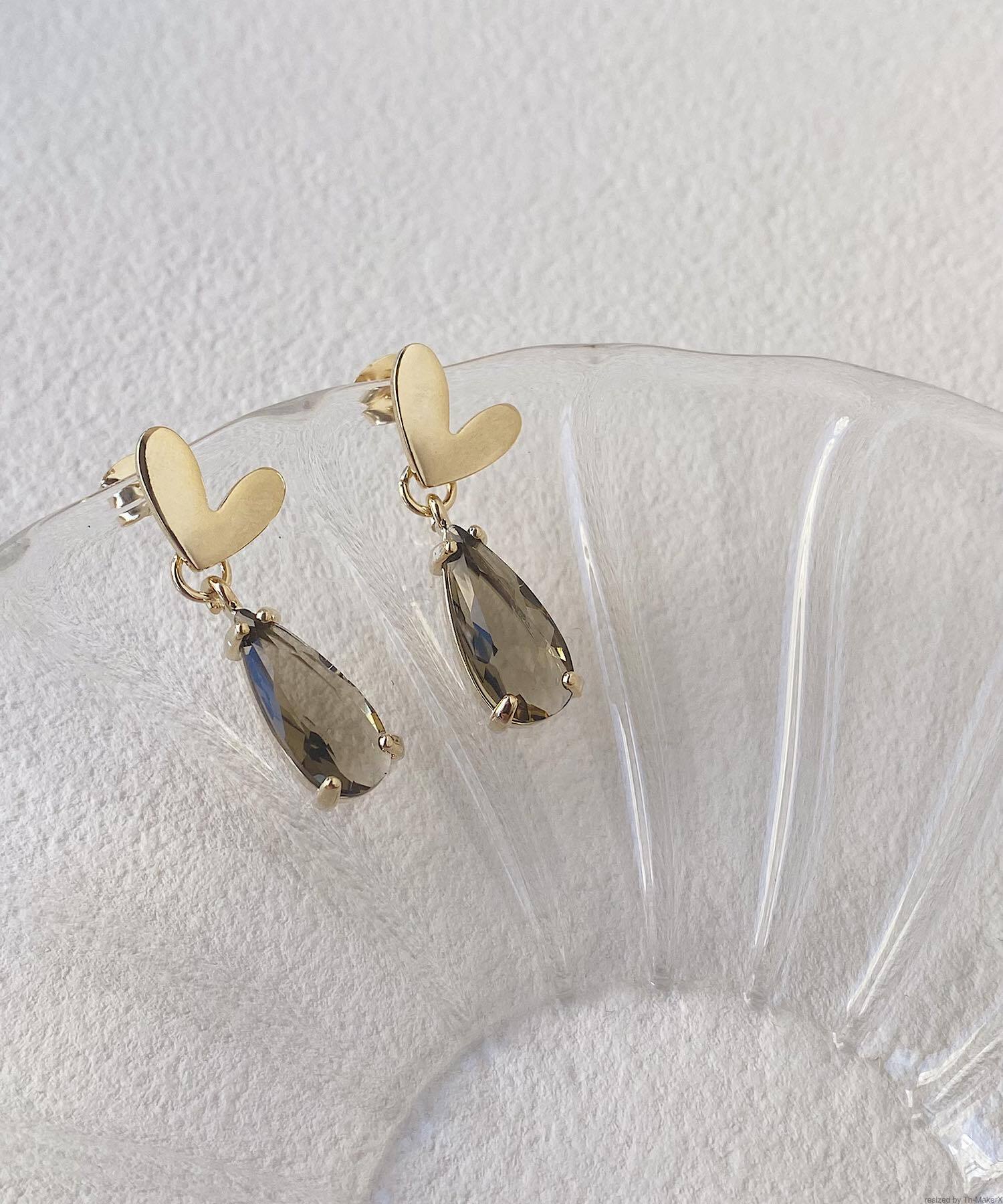 ハートのメタルパーツとしずく型のクリアストーンを組み合わせたピアス。