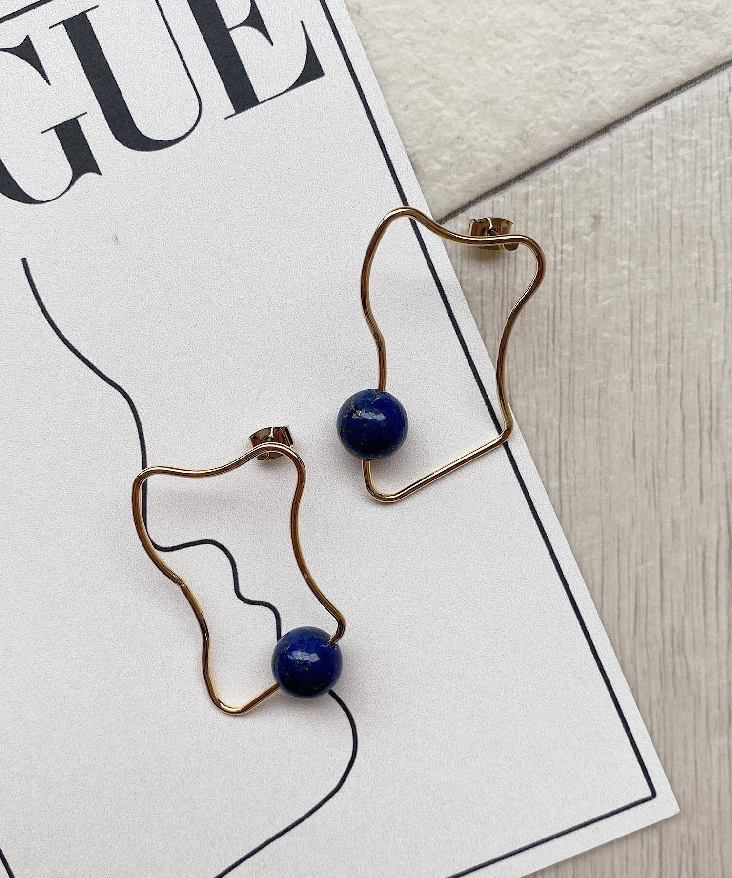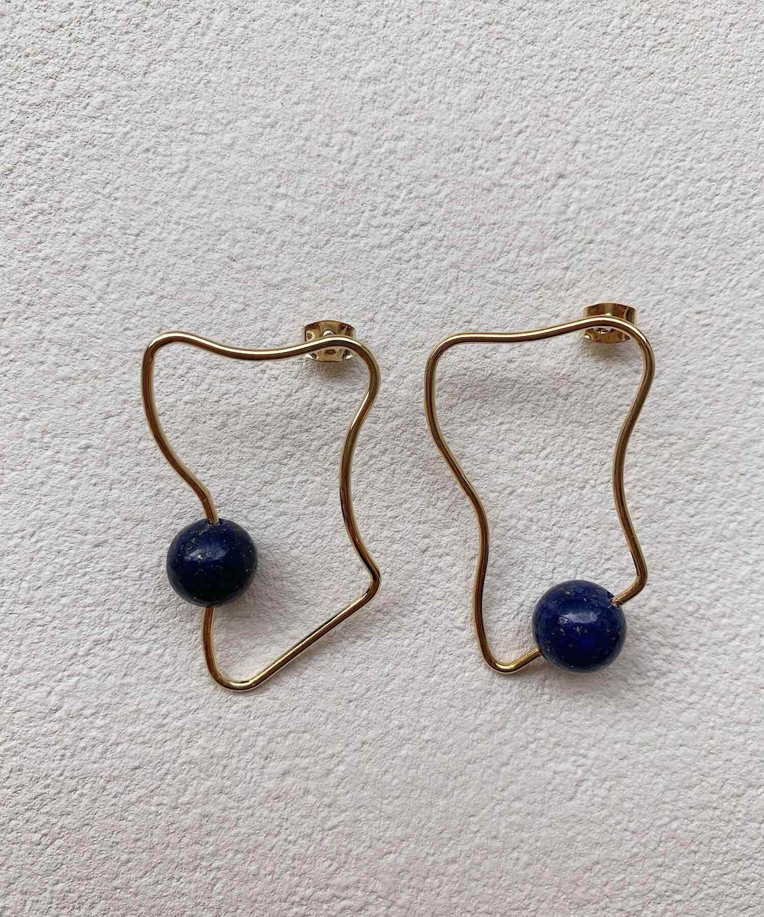 変形メタルパーツとクラックデザインのストーンを組み合わせたピアス。