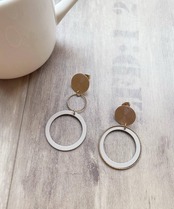 サークルモチーフを組み合わせたアシンメトリーピアス。