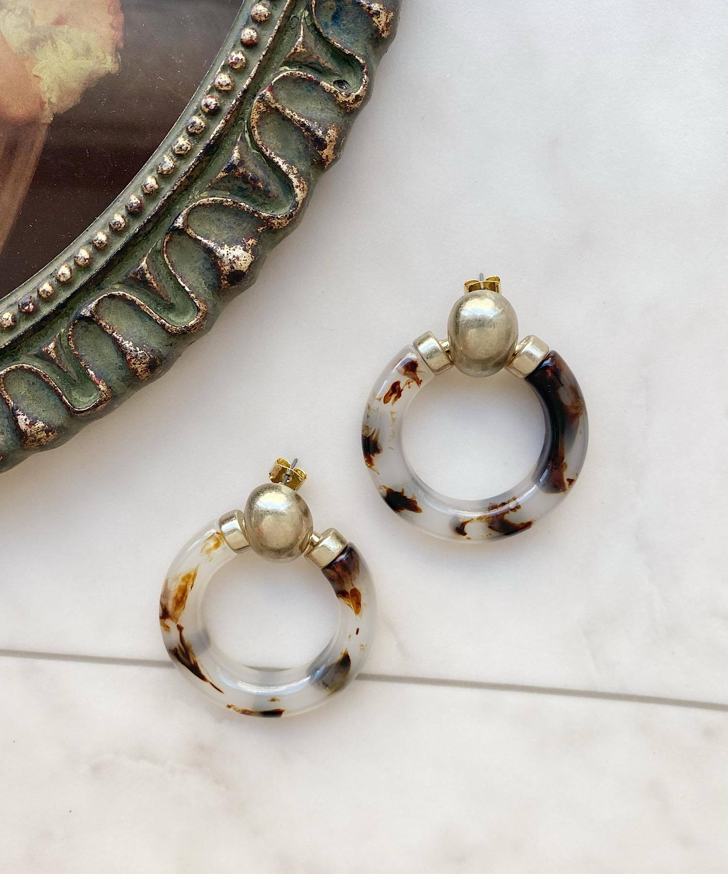 マーブルデザインとメタルパーツがアクセントのピアス。